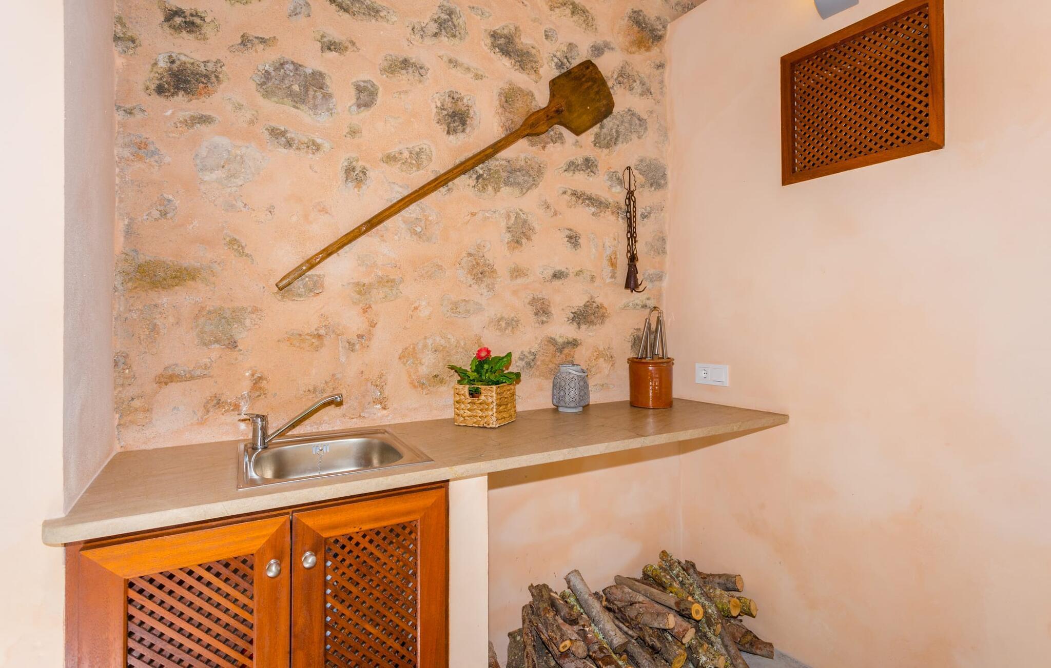 Mini fincas som "Na Mikeleta" er ikke nemme at finde på Mallorca, især ikke når den er så sød som denne. Derfor er vi rigtig glade for at kunne tilbyde endnu en attraktiv villa for op til to personer. Især en, der er et utroligt sted i naturen og slet ikke langt fra havet. Omgivet af et varieret landskab af skov og marker finder vi ejendommen på over 21.000 m² nær centrum af Capdepera, tæt på ruten til Son Servera. Rigelige originale arealer, en dekorativ og let hævet græsplæne med den ovale pool, en indbydende og delvist overdækket terrasse på huset samt træer, der giver masser af naturlig skygge, præger denne villas smukke udendørsområde. Liggestole og en BBQ-grill giver den sædvanlige komfort, du har brug for til en ubekymret dag i villaen. Når vejret er varmt, kan du spise alle dine måltider på terrassen, mens du nyder udsigten over det grønne. Benyt ellers lejligheden til at ligge under middelhavshimlen og måske bare ikke lave noget – du er trods alt på ferie. Dette er et Fincallorca feriehus. Selve den delikate villa er en af de sjældne egenskaber, der kun har et soveværelse med dobbeltseng. Erfaring har vist, at små, stemningsfulde ejendomme som denne er ideelle til et par, der har planlagt deres egen individuelle ferie med god tid til hinanden. Når du kommer ind i husets indre fra terrassen, kommer du ind i et åbent køkken/alrum/alrum. Lyse væg- og møbelfarver, matchende loftsbjælker og gulvfliser samt den imponerende naturstensvæg udstråler en hyggelig og meget stilfuld flair. Opholdsstuen byder på et hyggeligt opholdsområde med brændeovn og satellit-tv. Det fremragende udstyret køkken med de sædvanlige hårde hvidevarer er ideelt for folk, der bevidst har besluttet sig for en ferie med egen forplejning. Du når soveværelset med dobbeltseng via en åben passage. Et lyst badeværelse med bruser og den originale stenvask fuldender det kompakte interiør i denne charmerende villa. Mallorcas østkyst byder på en række forskellige landskaber. Og selvom villaen ligger i landlige omgivelser, ligger Mallorcas smukkeste naturstrande som Cala Torta eller Cala Mesquida kun en kort køretur væk på grund af villaens nærhed til forskellige veje. Hvis du leder efter variation, så tag en tur til de omkringliggende middelalderlandsbyer Artà og Capdepera, hvor der er et dejligt landmandsmarked på henholdsvis tirsdage og onsdage. I mellemtiden kan du finde underholdning og feststemning i Cala Ratjada, den populære havneby med sine barer, klubber og restauranter langs den maleriske havnepromenade. Lille, meget individuel villa "Na Mikeleta" ligger i et skovområde kun 4 km sydvest for Capdepera. Der er et ugentlig bondemarked i byen hver onsdag, hvor du kan købe friske lokale råvarer. Du finder smukke strande i nærheden, såsom den smukke Sa Font de sa Cala, som kan nås på kun 10 minutter i bil. Du kan også handle der og drage fordel af udvalget af barer og restauranter. For mere infrastruktur kan du blot køre til Cala Ratjada (7 km væk).