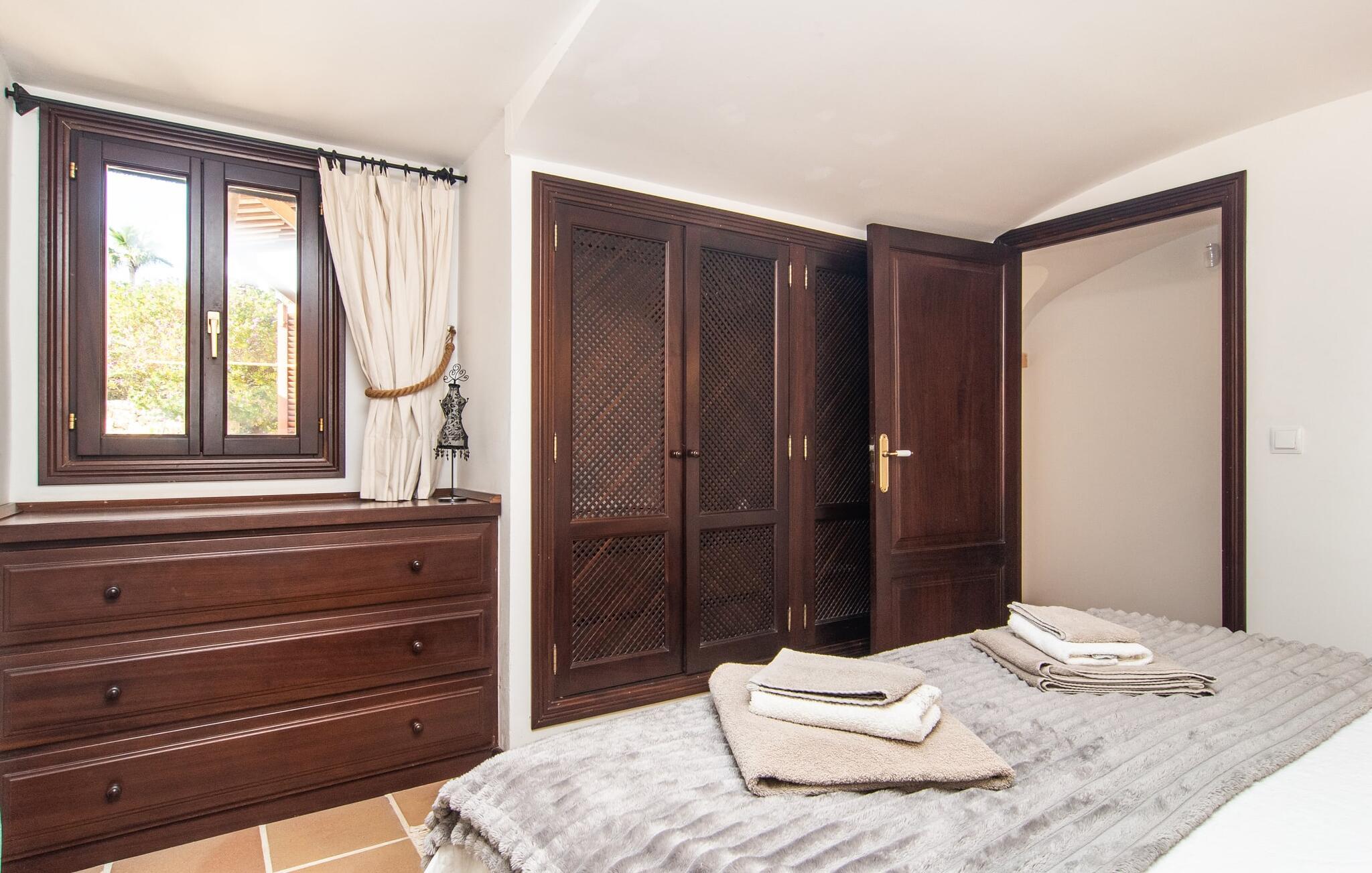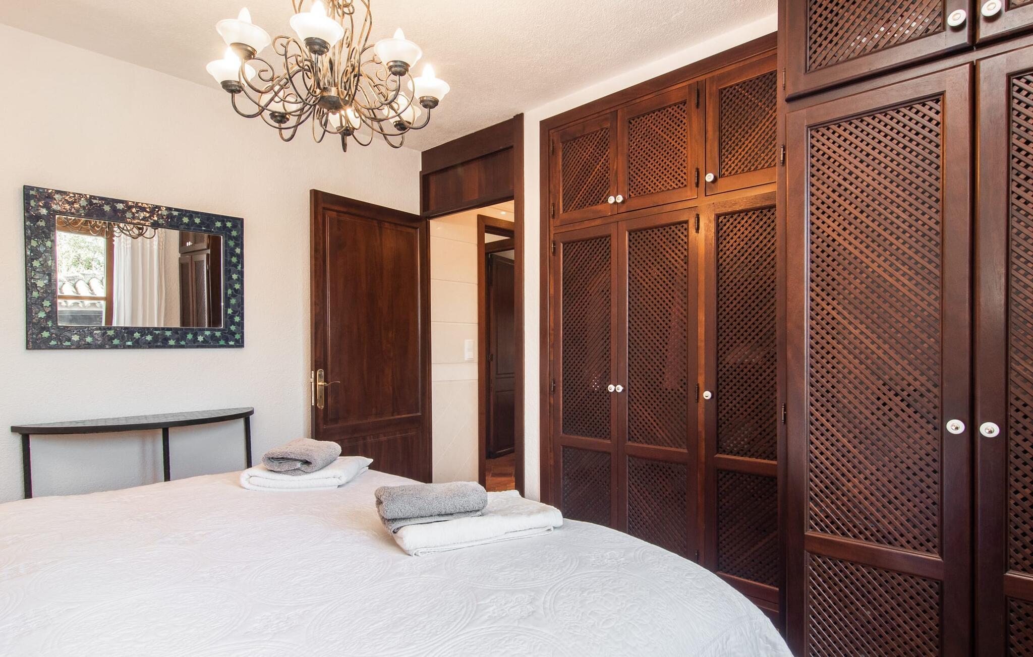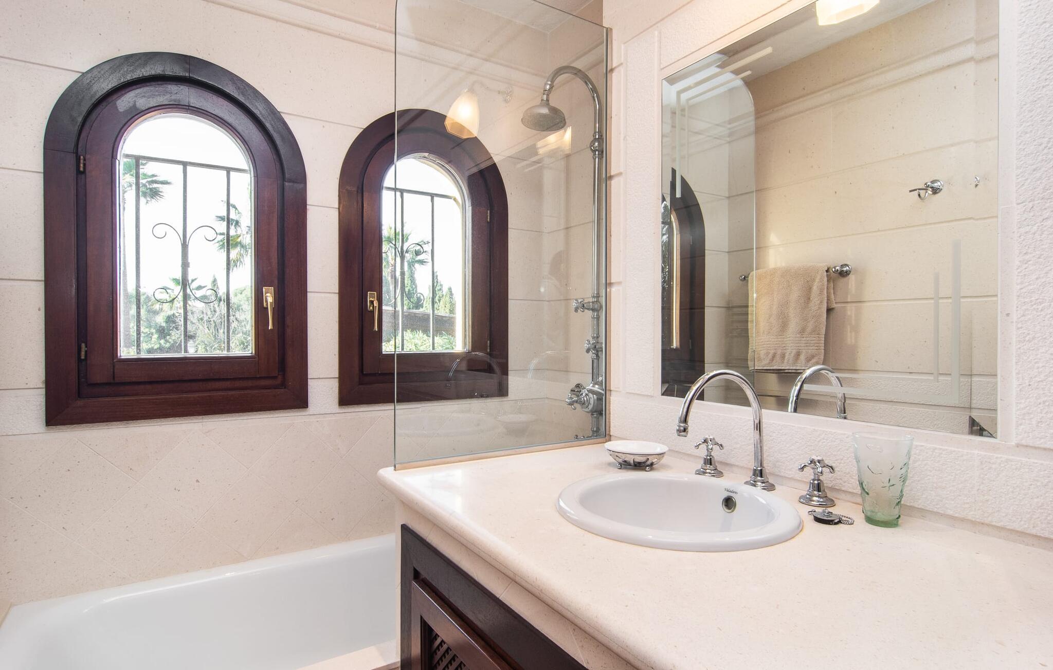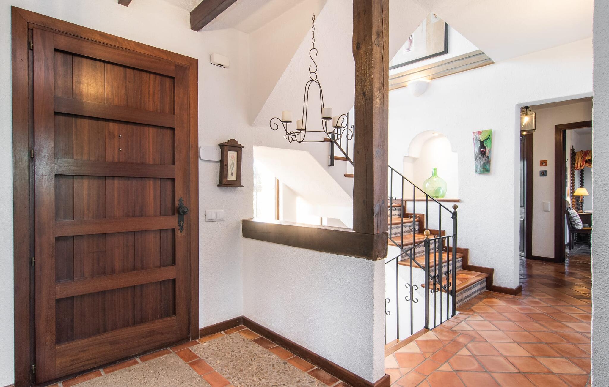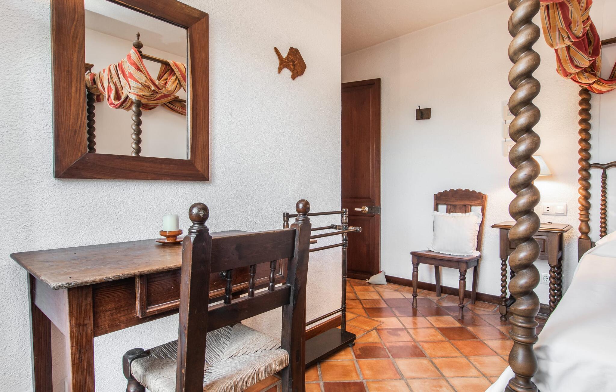 Det vidunderligt rolige feriehus "Na Nofre de Cala Ratjada" er omgivet af en rummelig have fuld af palmer, frugttræer og andre middelhavsplanter. I haveoasen vil I opdage den mosaikdækkede, klorfri pool. Den er opvarmet og kan derfor også bruges i lavsæsonen. Poolområdet har to udendørs brusere. Rundt om poolen er der liggestole i skyggen af markiser til en siesta eller den balinesiske dagseng til afslapning. Et andet højdepunkt er siddepladserne spredt ud over den spektakulære smukke have. På husets brolagte terrasser venter liggestole og et smart loungehjørne med markise. Efter en hyggelig grillaften på den overdækkede terrasse med spiseplads kan I slutte dagen af på tagterrassen med havudsigt. Der kan I nyde en uhindret panoramaudsigt over de bølgende bakker i Llevant-bjergene. Verandaen direkte ved huset byder på en anden spiseplads med en udendørs pejs. Hvis I værdsætter autentisk livsstil til jeres ferie på Mallorca, er dette charmerende og sofistikerede bondehus lige noget for jer. Det rustikke feriehus med moderne detaljer byder på masser af plads til op til 8 personer. Med sin opdeling i et hovedhus og en separat lejlighed kan dette store bondehus anbefales til at rejse med familien og især i flere generationer. I hovedhuset kan I nyde komforten i stuen med pejs og det separate køkken med spiseplads og smagfuld indretning. Der er fire soveværelser i alt (hvoraf det ene er et sammenhængende rum). Derudover er der to smarte badeværelser. Den separate lejlighed byder på kombineret opholds-, spise- og køkkenområde samt endnu et soveværelse og badeværelse. Der er adgang til en privat terrasse. “Na Nofre de Cala Ratjada” giver lyst til at tage på ferie til Mallorca. Vi kan ikke vente! Det idylliske bondehus "Na Nofre de Cala Ratjada" imponerer med sin opvarmede pool og tagterrasse med havudsigt med udsigt over den smukt anlagte have. Det roligt beliggende feriehus ligger på en skråning mellem Cala Ratjada og Capdepera, hvor I kan kombinere jeres shopping med at spise ude. Havet og de fantastiske strande er kun 8 minutter væk i bil.