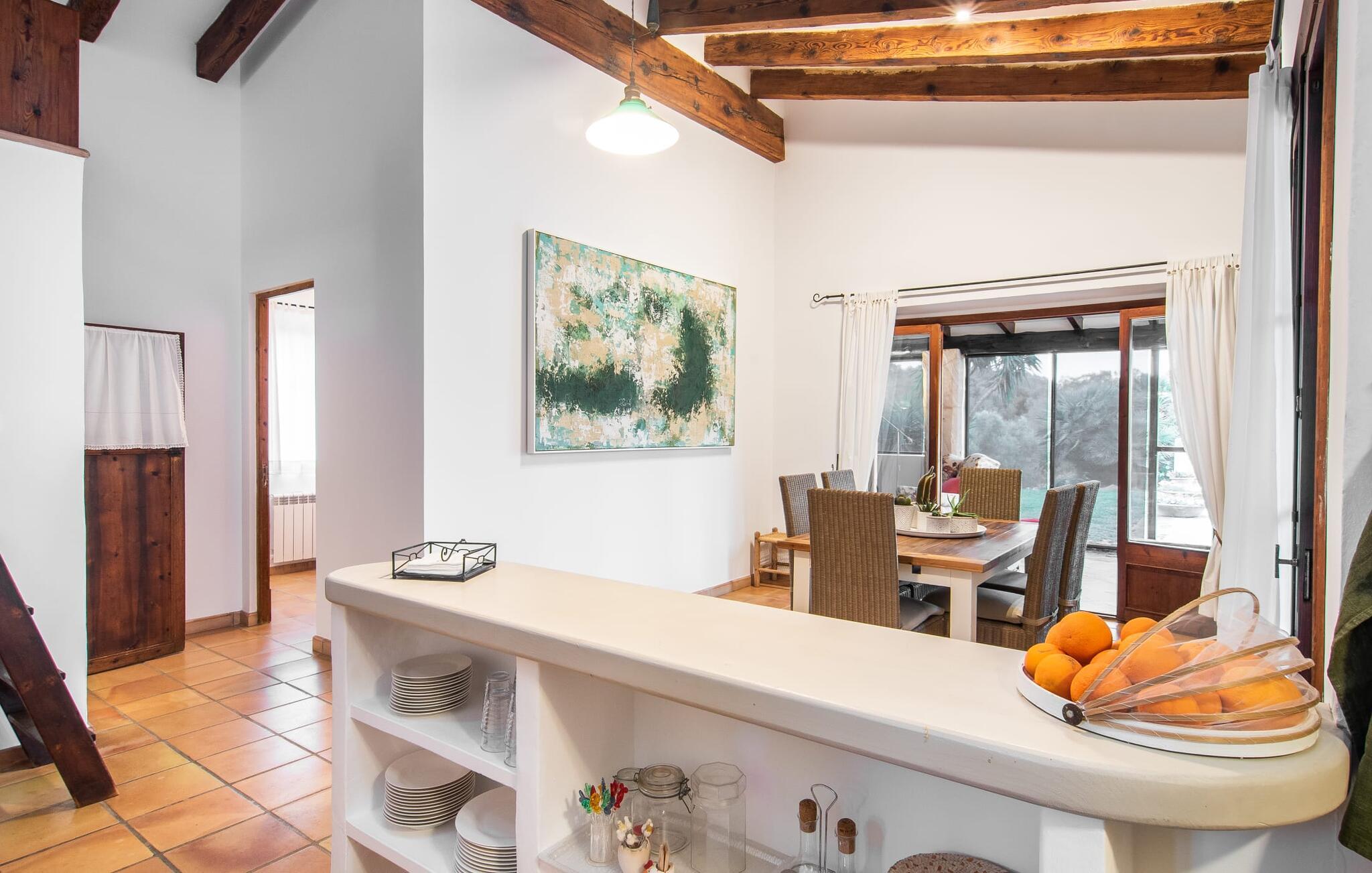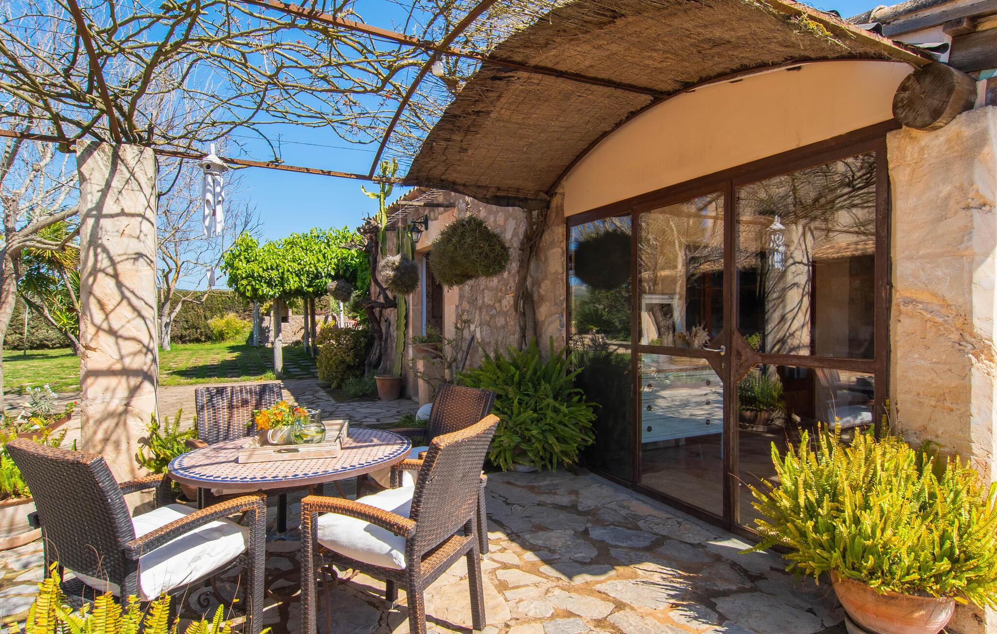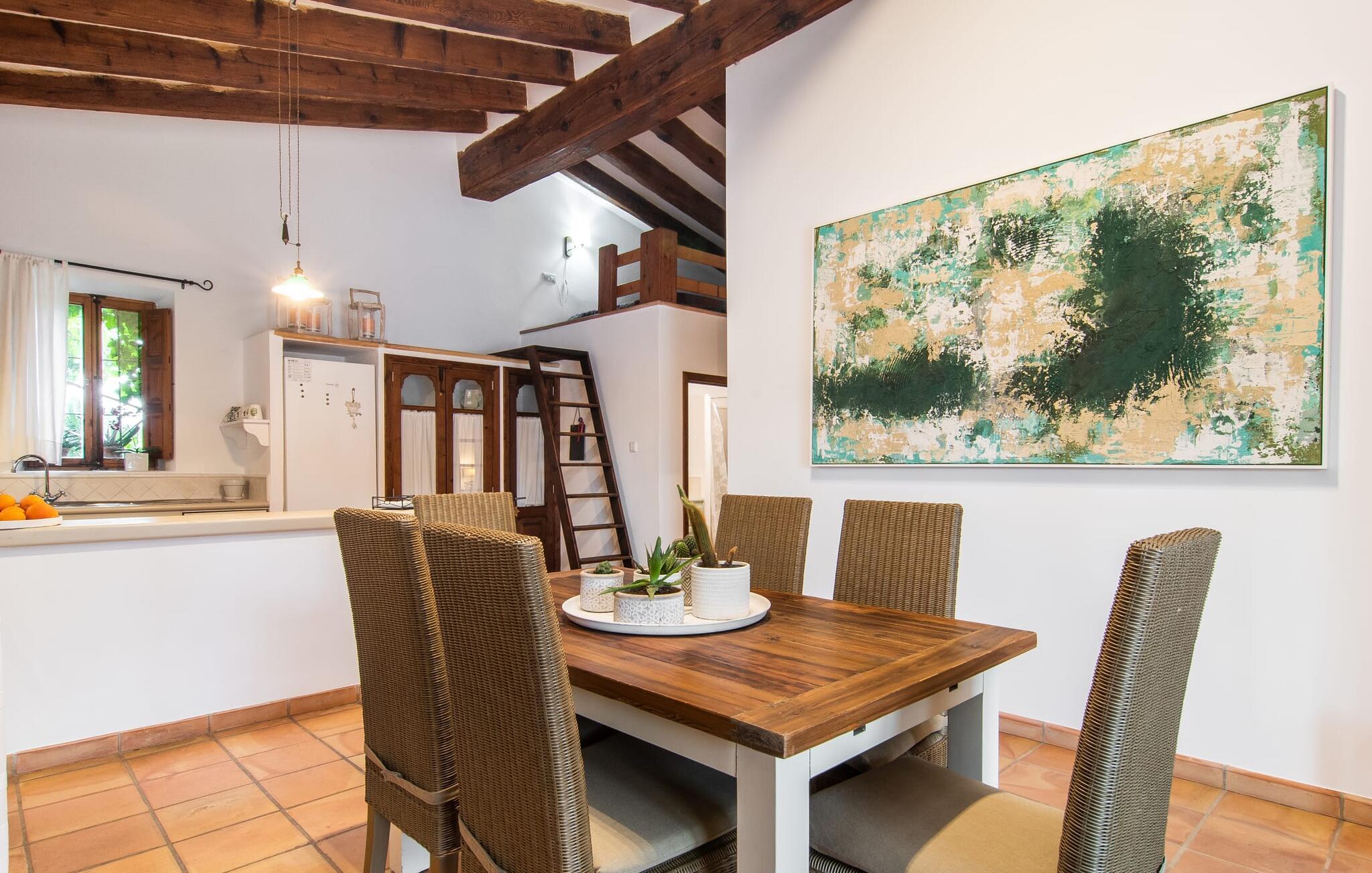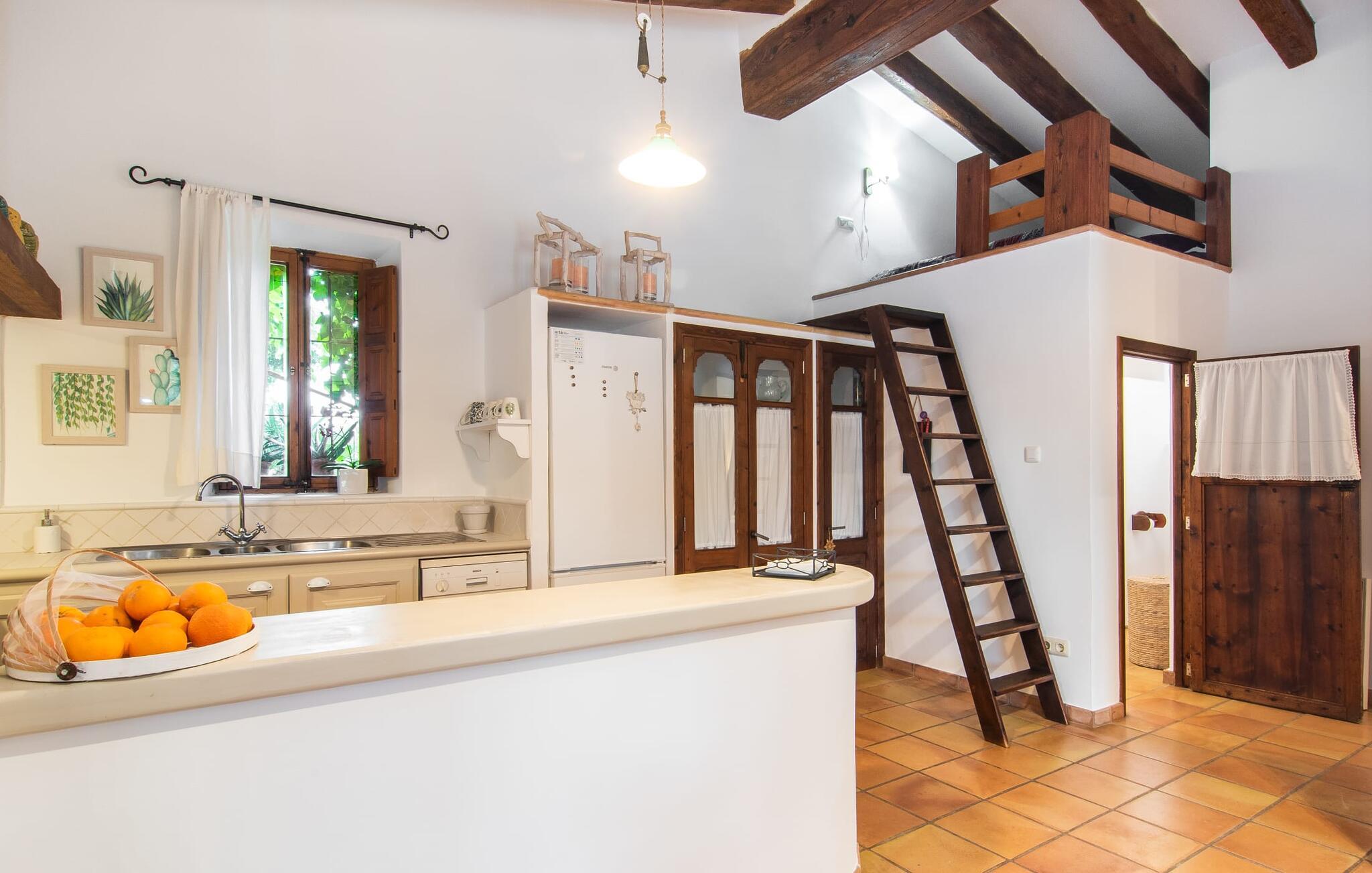Villaen og casita er forbundet med en dyrebar pergola: værter og gæster deler jord og vand, skønheden i landskabet, udsigten over Golgata, mens de på samme tid værdsætter deres uafhængighed og respekterer hinandens privatliv. Ejerne af "Na Palada" viser, at de har et hjerte lige fra hoveddøren. De har besluttet at dele deres over 100 år gamle, autentisk renoverede villa og den 12.000 m² store ejendom med søde mennesker; og har sikret, at private terrasser og havearealer med store buske og træer samt skjulte siddepladser giver tilstrækkelige muligheder for at trække sig tilbage. Måske bliver der mulighed for hyggeligt at indvie grillkøkkenet sammen eller svømme et par længder i den fælles pool mellem hovedhuset og udhuset – nogle gange sker det, men ikke altid. Og nogle mennesker værdsætter trygheden ved at være på egen hånd, men ved samtidig, at råd og hjælp er i nærheden i en nødsituation. “Na Palada” kunne også være noget for “farverige fugle”, og ikke kun når det kommer til at finde en velpolstret rede for natten. Antydninger af flower power og de runde, lidt psykedeliske halvfjerdsere er ubestridelige og har givet huset et par farverige farvestænk, der virkelig pifter udseendet af det mørke træ og de gamle stenvægge op. Trods det rustikke islæt fremstår interiøret let og svævende, ikke mindst på grund af de enorme vinduesfronter ud mod haven, poolen og terrassen, som lukker masser af lys ind. Selvom der kun er et dobbeltværelse, kunne en eller to letvægtere - børn vil med garanti elske dem - svæve fra det åbne køkken til sengen under taget og gøre sig godt tilpas under det lave bjælkeloft. Og for dem, der er "early risers", vil I måske gå ind til byen om morgenen og komme tilbage med morgenmad... Artà ante portas! Huse, butikker, caféer og restauranter i smalle gader (romantisk oplyst om aftenen) myldrer rundt om et bjerg med en befæstet fæstning. I kan endda gå dertil, slentre gennem gallerierne og kunsthåndværksbutikkerne og nyde en is i skyggefulde gårdhaver. Udsigten fra Golgata viser jer 25 km uberørt kystlinje og utallige strande. Nutidige vidner som de mægtige grotter i Artà, Torre de Canyamel, Far de Capdepera eller det imponerende Castell de Capdepera er også spændende for børn. Og hvis I vil endnu længere, bør I vandre gennem regionen omkring Betlem og Colònia de Sant Pere eller fordybe jer i de forskellige blå nuancer fra Badia d'Alcúdia til Port de Pollença. Med en vidunderlig udsigt over Golgata i Artà og kun 2 km fra byen bor I her i landlig fred og smuk natur: Det lille gæstehus "Na Palada" er den farverige forlængelse af en villa, der er over 100 år gammel og er beboet af udlejerne selv. Artà tilbyder alt, hvad en feriegæst kan ønske sig (inklusive et meget populært ugentligt marked); Via MA-15 kan I hurtigt nå Cala Ratjada og den naturlige strand Cala Agulla eller den brede sandstrand Cala Torta. I kan bestemt køre nordpå mod Can Picafort og Alcúdia.