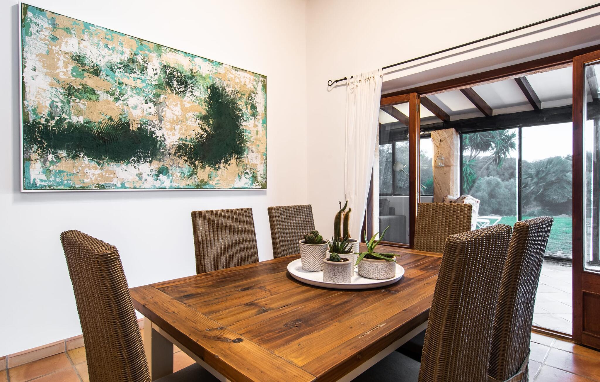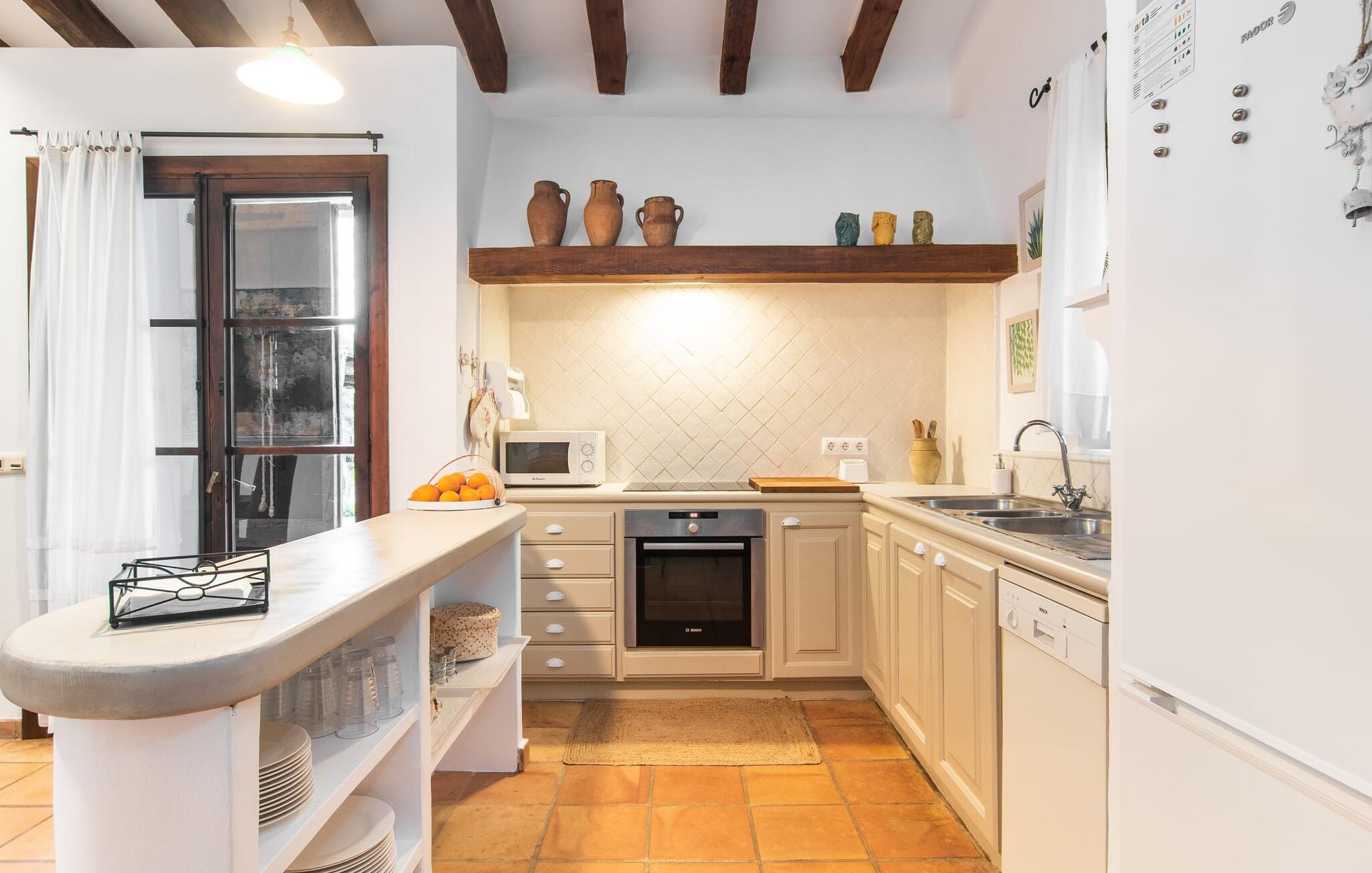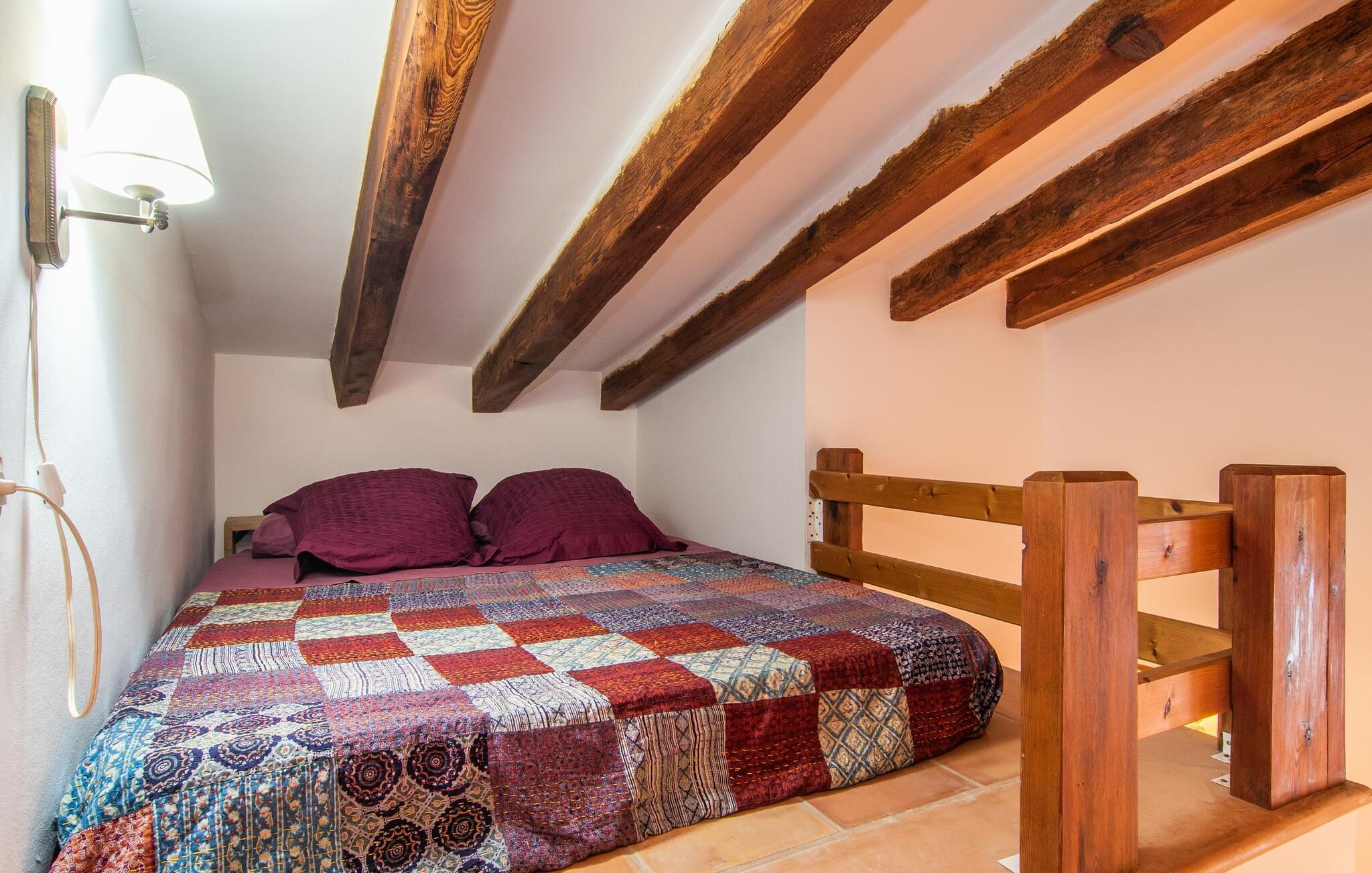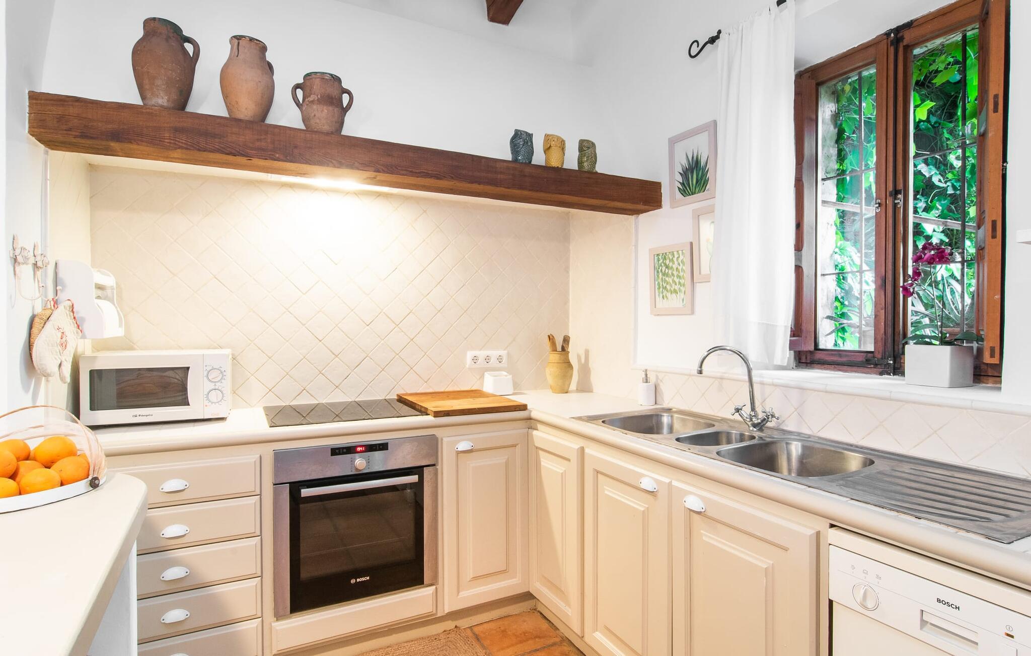 Villaen og casita er forbundet med en dyrebar pergola: værter og gæster deler jord og vand, skønheden i landskabet, udsigten over Golgata, mens de på samme tid værdsætter deres uafhængighed og respekterer hinandens privatliv. Ejerne af "Na Palada" viser, at de har et hjerte lige fra hoveddøren. De har besluttet at dele deres over 100 år gamle, autentisk renoverede villa og den 12.000 m² store ejendom med søde mennesker; og har sikret, at private terrasser og havearealer med store buske og træer samt skjulte siddepladser giver tilstrækkelige muligheder for at trække sig tilbage. Måske bliver der mulighed for hyggeligt at indvie grillkøkkenet sammen eller svømme et par længder i den fælles pool mellem hovedhuset og udhuset – nogle gange sker det, men ikke altid. Og nogle mennesker værdsætter trygheden ved at være på egen hånd, men ved samtidig, at råd og hjælp er i nærheden i en nødsituation. “Na Palada” kunne også være noget for “farverige fugle”, og ikke kun når det kommer til at finde en velpolstret rede for natten. Antydninger af flower power og de runde, lidt psykedeliske halvfjerdsere er ubestridelige og har givet huset et par farverige farvestænk, der virkelig pifter udseendet af det mørke træ og de gamle stenvægge op. Trods det rustikke islæt fremstår interiøret let og svævende, ikke mindst på grund af de enorme vinduesfronter ud mod haven, poolen og terrassen, som lukker masser af lys ind. Selvom der kun er et dobbeltværelse, kunne en eller to letvægtere - børn vil med garanti elske dem - svæve fra det åbne køkken til sengen under taget og gøre sig godt tilpas under det lave bjælkeloft. Og for dem, der er "early risers", vil I måske gå ind til byen om morgenen og komme tilbage med morgenmad... Artà ante portas! Huse, butikker, caféer og restauranter i smalle gader (romantisk oplyst om aftenen) myldrer rundt om et bjerg med en befæstet fæstning. I kan endda gå dertil, slentre gennem gallerierne og kunsthåndværksbutikkerne og nyde en is i skyggefulde gårdhaver. Udsigten fra Golgata viser jer 25 km uberørt kystlinje og utallige strande. Nutidige vidner som de mægtige grotter i Artà, Torre de Canyamel, Far de Capdepera eller det imponerende Castell de Capdepera er også spændende for børn. Og hvis I vil endnu længere, bør I vandre gennem regionen omkring Betlem og Colònia de Sant Pere eller fordybe jer i de forskellige blå nuancer fra Badia d'Alcúdia til Port de Pollença. Med en vidunderlig udsigt over Golgata i Artà og kun 2 km fra byen bor I her i landlig fred og smuk natur: Det lille gæstehus "Na Palada" er den farverige forlængelse af en villa, der er over 100 år gammel og er beboet af udlejerne selv. Artà tilbyder alt, hvad en feriegæst kan ønske sig (inklusive et meget populært ugentligt marked); Via MA-15 kan I hurtigt nå Cala Ratjada og den naturlige strand Cala Agulla eller den brede sandstrand Cala Torta. I kan bestemt køre nordpå mod Can Picafort og Alcúdia.