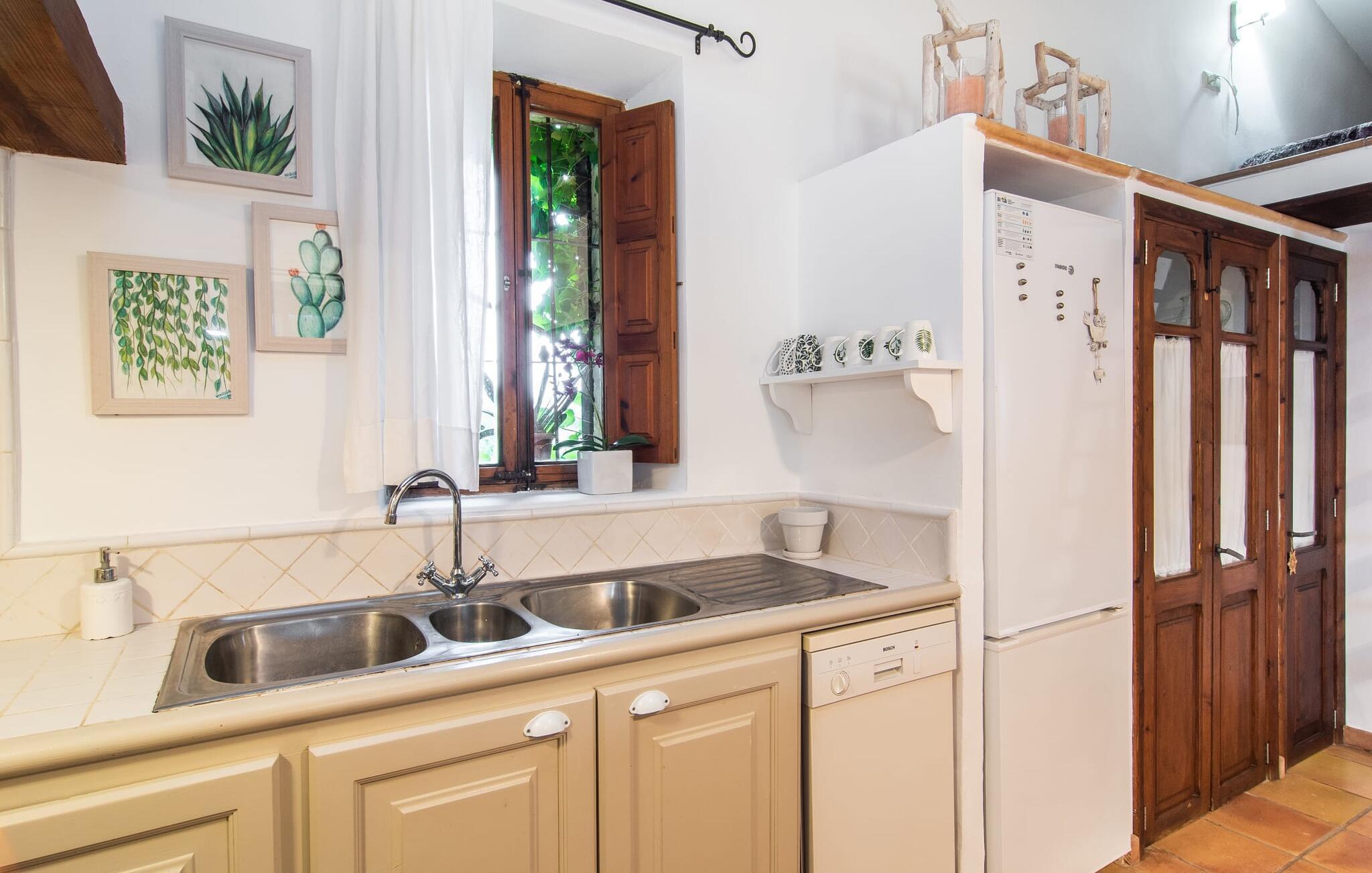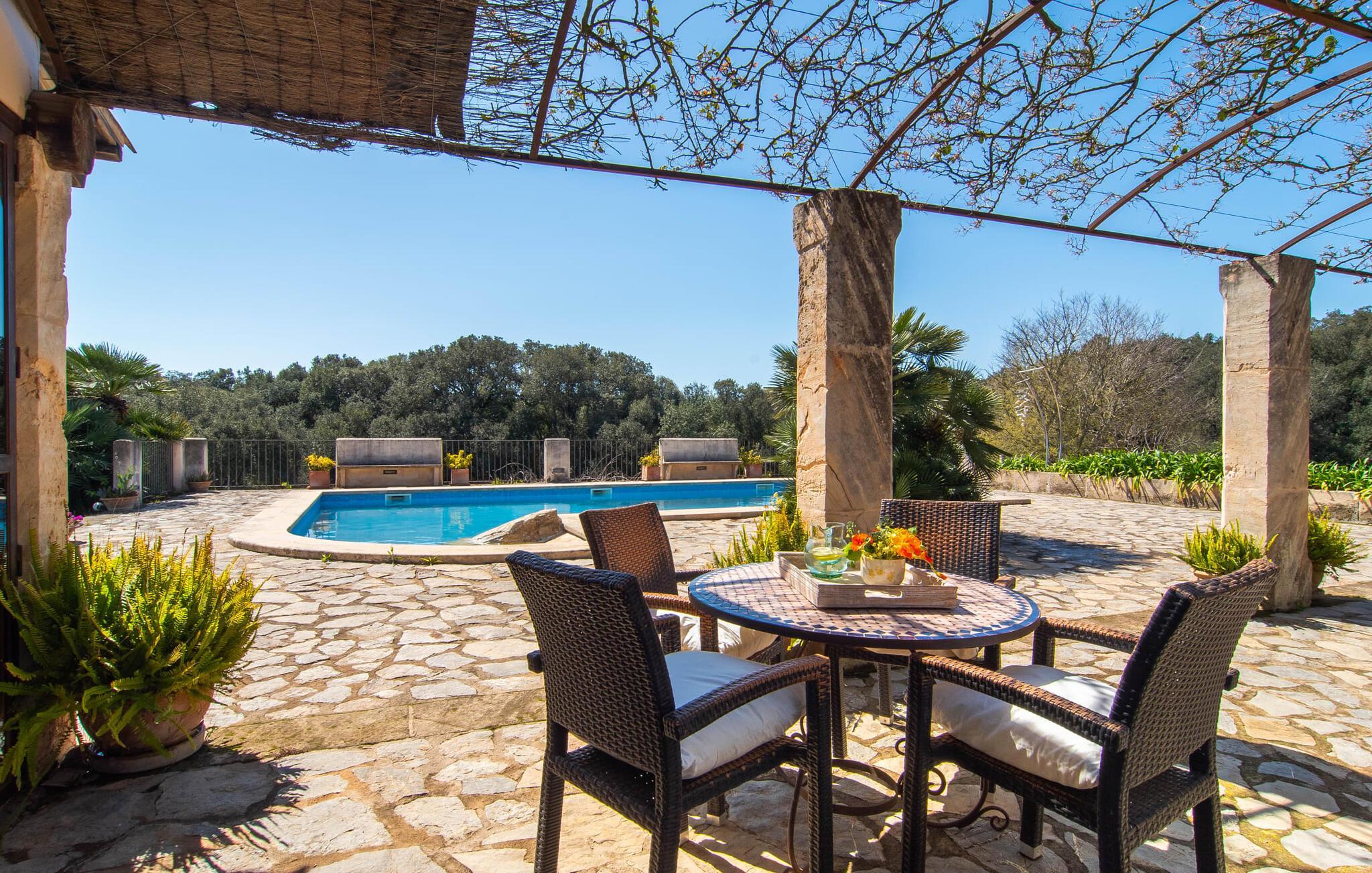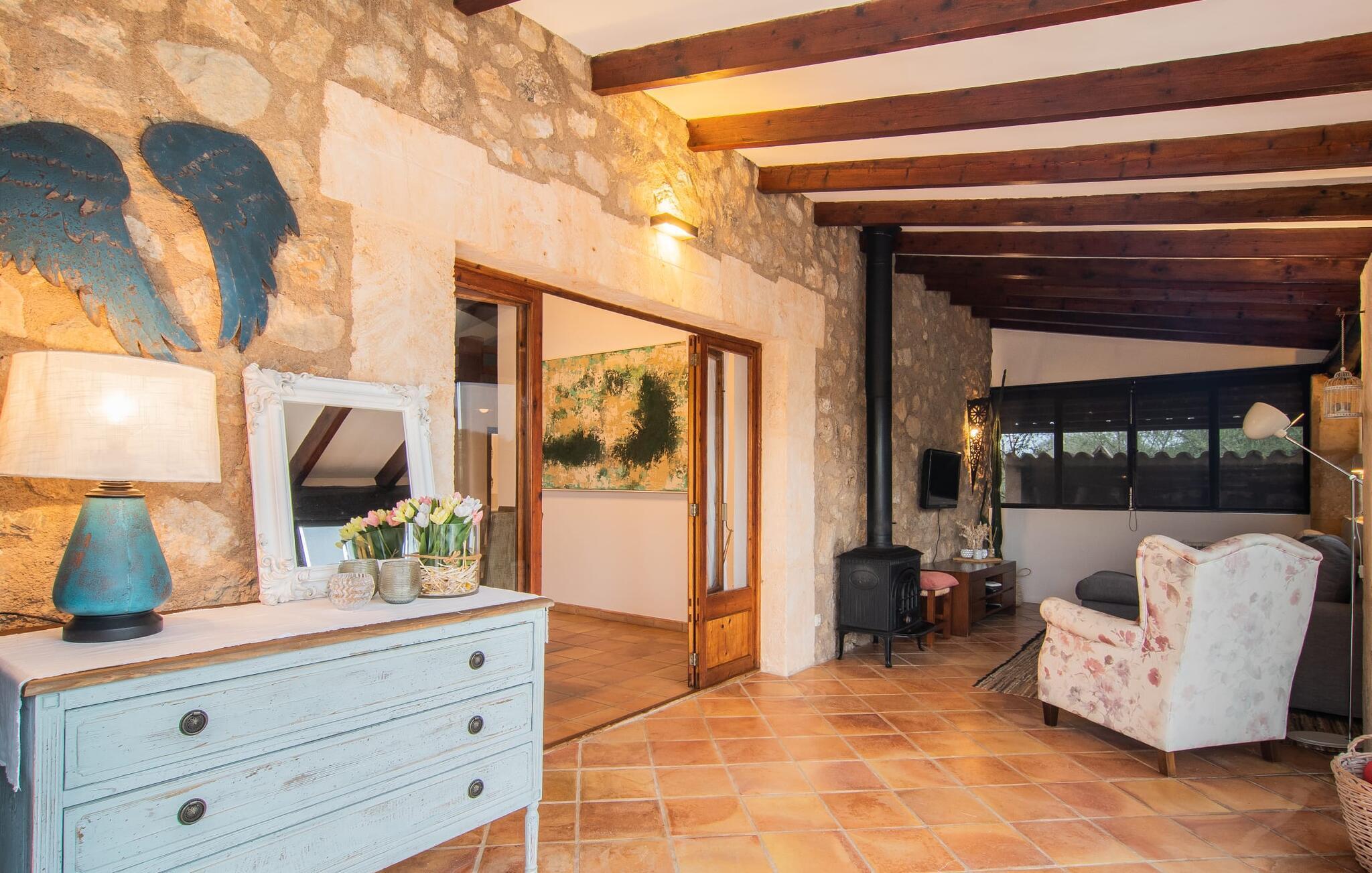 Villaen og casita er forbundet med en dyrebar pergola: værter og gæster deler jord og vand, skønheden i landskabet, udsigten over Golgata, mens de på samme tid værdsætter deres uafhængighed og respekterer hinandens privatliv. Ejerne af "Na Palada" viser, at de har et hjerte lige fra hoveddøren. De har besluttet at dele deres over 100 år gamle, autentisk renoverede villa og den 12.000 m² store ejendom med søde mennesker; og har sikret, at private terrasser og havearealer med store buske og træer samt skjulte siddepladser giver tilstrækkelige muligheder for at trække sig tilbage. Måske bliver der mulighed for hyggeligt at indvie grillkøkkenet sammen eller svømme et par længder i den fælles pool mellem hovedhuset og udhuset – nogle gange sker det, men ikke altid. Og nogle mennesker værdsætter trygheden ved at være på egen hånd, men ved samtidig, at råd og hjælp er i nærheden i en nødsituation. Dette er et Fincallorca feriehus. “Na Palada” kunne også være noget for “farverige fugle”, og ikke kun når det kommer til at finde en velpolstret rede for natten. Antydninger af flower power og de runde, lidt psykedeliske halvfjerdsere er ubestridelige og har givet huset et par farverige farvestænk, der virkelig pifter udseendet af det mørke træ og de gamle stenvægge op. Trods det rustikke islæt fremstår interiøret let og svævende, ikke mindst på grund af de enorme vinduesfronter ud mod haven, poolen og terrassen, som lukker masser af lys ind. Selvom der kun er et dobbeltværelse, kunne en eller to letvægtere - børn vil med garanti elske dem - svæve fra det åbne køkken til sengen under taget og gøre sig godt tilpas under det lave bjælkeloft. Og for dem, der er "early risers", vil du måske gå ind til byen om morgenen og komme tilbage med morgenmad... Artà ante portas! Huse, butikker, caféer og restauranter i smalle gader (romantisk oplyst om aftenen) myldrer rundt om et bjerg med en befæstet fæstning. Du kan endda gå dertil, slentre gennem gallerierne og kunsthåndværksbutikkerne og nyde en is i skyggefulde gårdhaver. Udsigten fra Golgata viser dig 25 km uberørt kystlinje og utallige strande. Nutidige vidner som de mægtige grotter i Artà, Torre de Canyamel, Far de Capdepera eller det imponerende Castell de Capdepera er også spændende for børn. Og hvis du vil endnu længere, bør du vandre gennem regionen omkring Betlem og Colònia de Sant Pere eller fordybe dig i de forskellige blå nuancer fra Badia d'Alcúdia til Port de Pollença. Med en vidunderlig udsigt over Golgata i Artà og kun 2 km fra byen bor du her i landlig fred og smuk natur: Det lille gæstehus "Na Palada" er den farverige forlængelse af en villa, der er over 100 år gammel og er beboet af udlejerne selv. Artà tilbyder alt, hvad en feriegæst kan ønske sig (inklusive et meget populært ugentligt marked); Via MA-15 kan du hurtigt nå Cala Ratjada og den naturlige strand Cala Agulla eller den brede sandstrand Cala Torta. Du kan bestemt køre nordpå mod Can Picafort og Alcúdia.