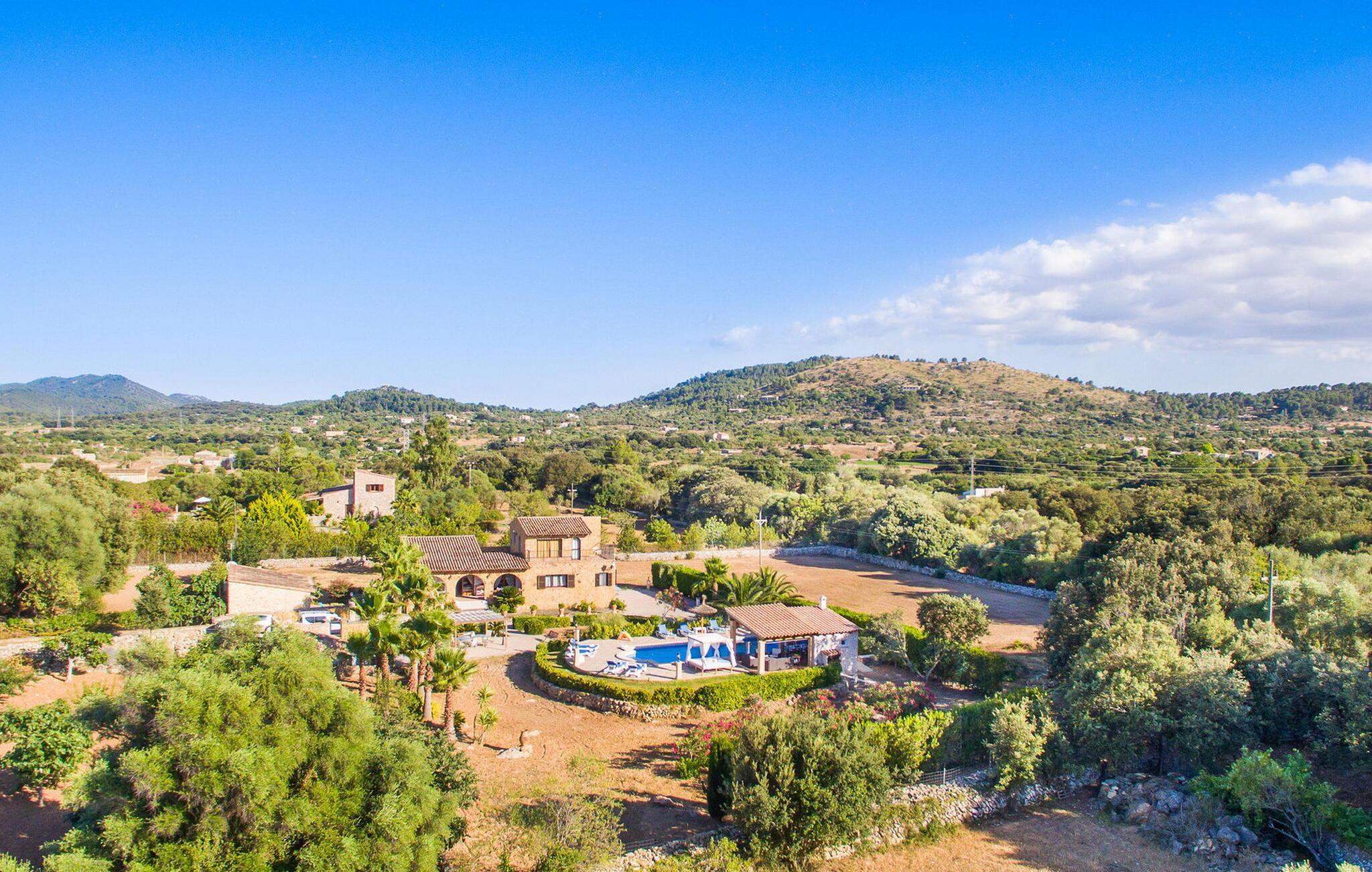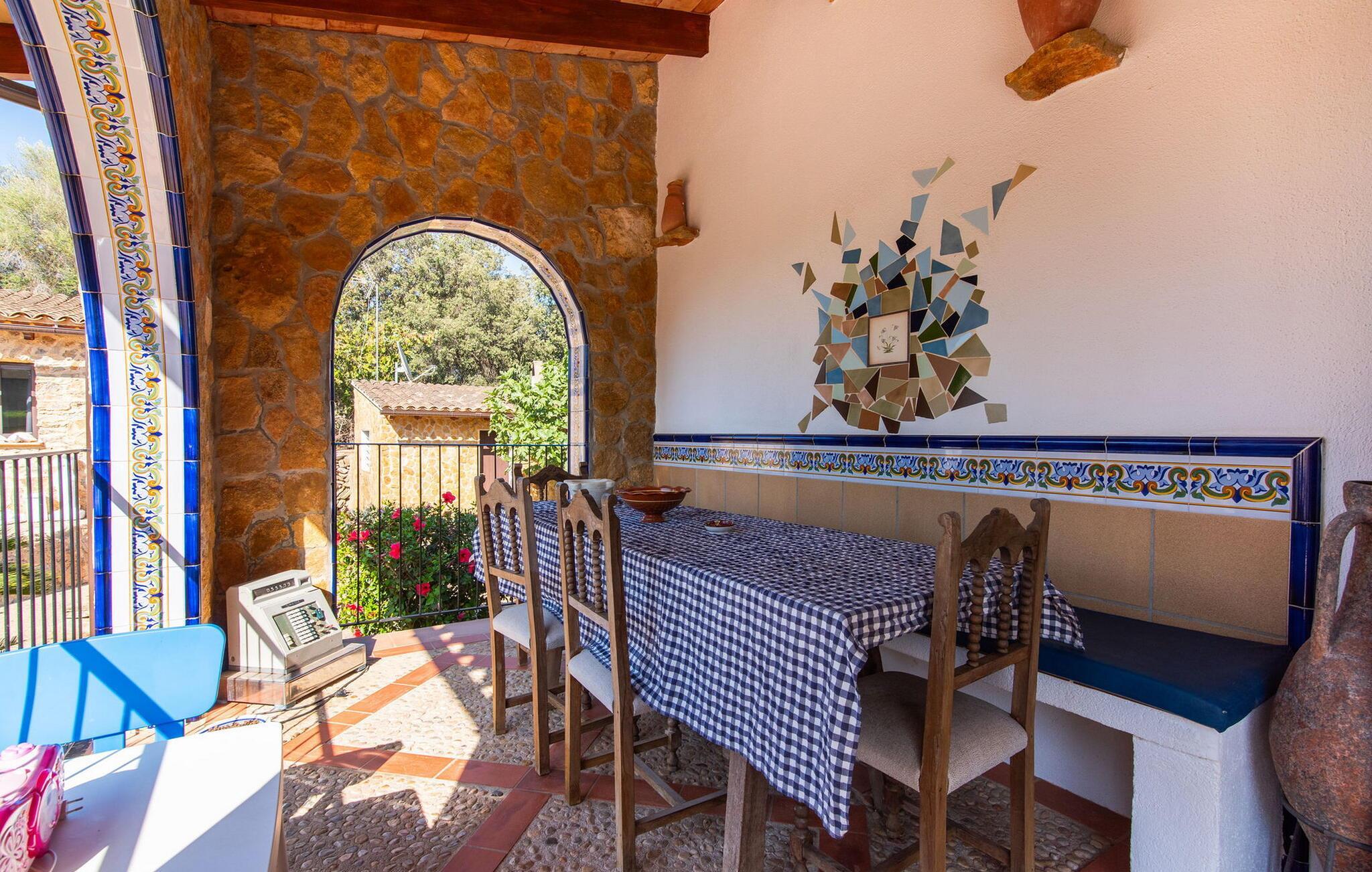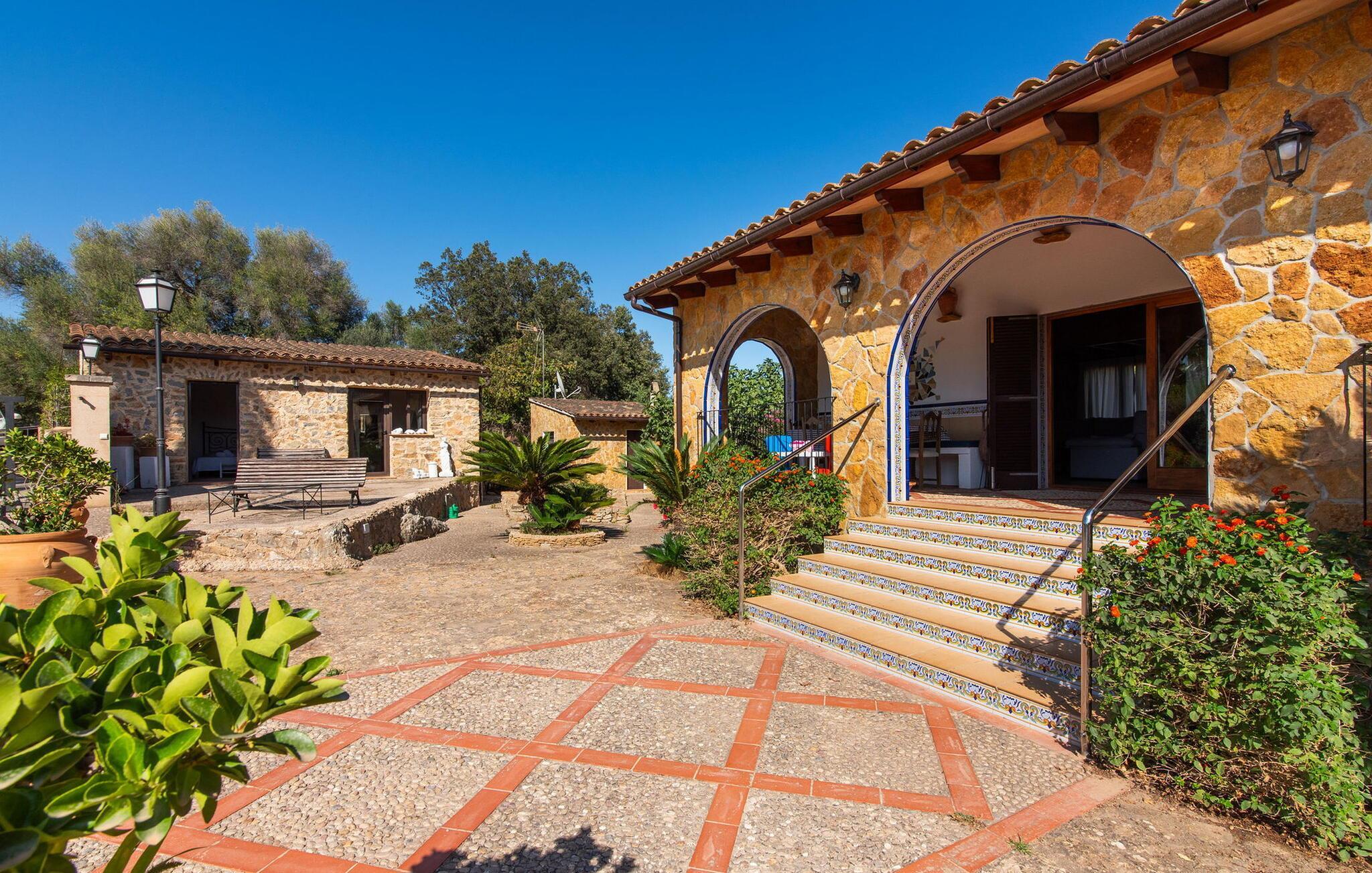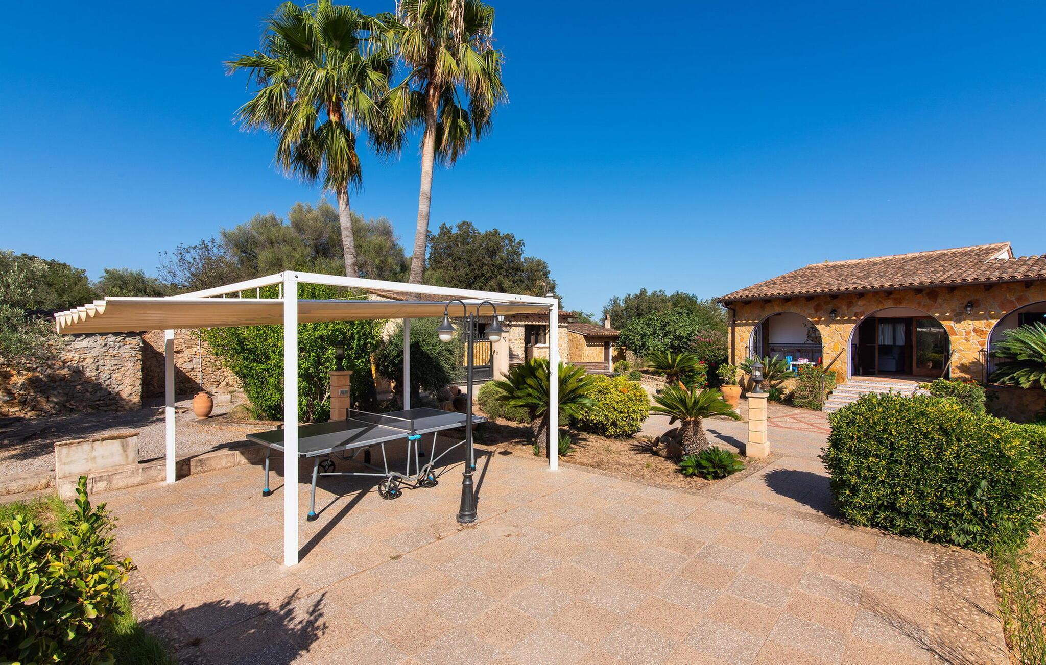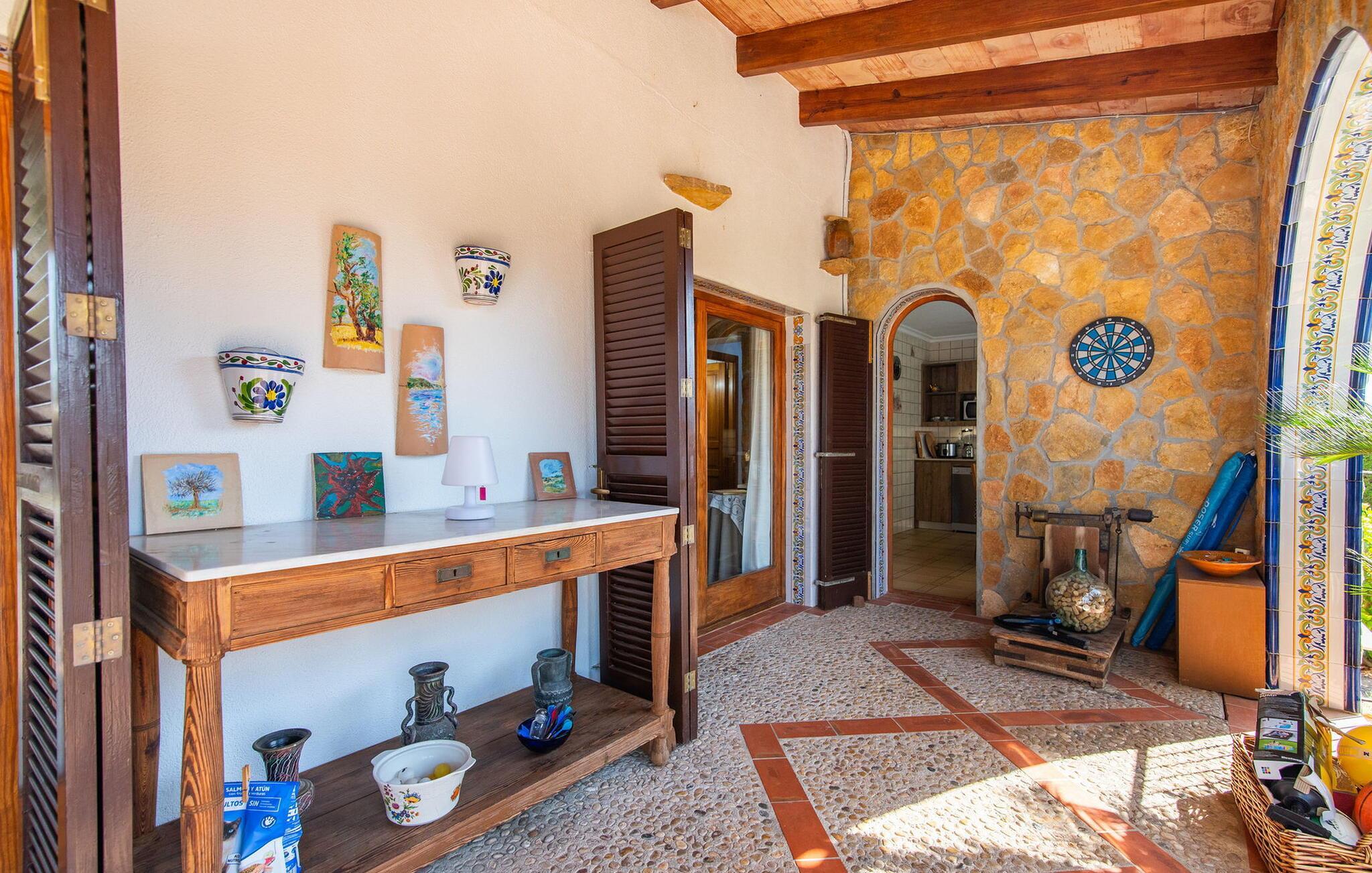 Det maleriske landsted "Na Peixet" blev bygget på en idyllisk og rolig ejendom med smuk middelhavsvegetation. Villaen viser typisk mallorcansk arkitektur og byggematerialer som natursten, lersten og eg. Terrasser og havegange rundt om huset er dekorativt udformet med flodsten og giver ejendommen et meget individuelt præg, herunder mange andre specielle detaljer. Udsigten fra dette feriehus er helt sensationel: du kan se både slottet Artà og Castillo de Capdepera. På første sal er der to tagterrasser, hvorfra man kan nyde en fantastisk udsigt. Udeområdets midtpunkt er den let forhøjede pool omgivet af grønt græs og en loungeterrasse. En udendørs bruser er også bekvemt placeret i nærheden, ligesom den geniale veranda, den stilfulde overdækkede del, hvorunder du kan sidde i en let brise og beskyttet mod solen. Mellem poolen og huset ligger den hyggelige grillplads med en muret grill, som er ideel til lækre grillsessioner, især på lune aftener. Du kan sidde komfortabelt her selv på kølige aftener og om vinteren - det sikrer de moderne strålevarmere og vindtætte glas. Lige ved siden af finder du endnu et højdepunkt på udendørsområdet: den lille legeplads. De små kan lege og slippe dampen af vildt. Et bordtennisbord er tilgængeligt, ligesom en basketballkurv fastgjort til ydervæggen. Den overdækkede terrasse ved huset er beskyttet mod vinden, så du kan sidde her til langt ud på natten med et godt glas vin og en vidunderlig udsigt. I weekenden er Artà Slot endda oplyst. Villaen er indhegnet (ca. 1 m høj). Du kan parkere direkte ved ferieboligen og ejendommen kan aflåses ved hjælp af en låge. Dette er et Fincallorca feriehus. Hele boligarealet er optimalt opdelt i et hovedhus og et smukt separat studie. Du kommer ind i hovedbygningen via den overdækkede terrasse og når stuen. Typiske mallorcanske dekorationer i form af billeder, kunstgenstande og antikviteter giver huset et indbydende, personligt præg. De anvendte materialer bidrager til den elegante atmosfære. Stuen er rummelig og super hyggelig, med flere sofaer og rustikke natursten på væggene, som også kan findes i resten af huset. Over sofahjørnet fører en stige op til en mellemetage, hvor et eller to børn sikkert vil nyde at sove. En seng, der måler 1,4 x 2, fås her. Stue og spisestue er forbundet med en smuk buet passage. I kan nyde et velholdt indendørs måltid sammen ved spisebordet. Spisestuen forgrener sig til en gang, som igen fører til de to soveværelser og badeværelser. Køkkenet er rummeligt og fuldt udstyret med opvaskemaskine, køle/fryseskab kombination, mikroovn, keramisk kogeplade, ovn, brødrister, filterkaffemaskine, Nespresso og elkedel. Der er så meget plads, at du endda kan få plads til endnu et spisebord. Soveværelserne i stueetagen er meget komfortable og giver et fremragende grundlag for en afslappende nat. Begge har et stort klædeskab og delvist træbeklædte vægge. Der er to senge på 1 x 2 m, der kan kombineres med hinanden, det andet soveværelse har en seng på 1,8 x 2 m. Alle soveværelser har aircondition, ligesom stuen. Badeværelset i stueetagen er udstyret med badekar, toilet, bidet og håndvask. Derudover er der også et vaskerum på denne etage med vaskemaskine, strygejern, strygebræt og tørrestativ. På første sal er der et stort, lyst dobbeltværelse med smuk udsigt, samt et brusebad. Huset opvarmes med centralvarme. Vand kommer fra den interne brønd. Hver tirsdag er der et ugentligt marked i centrum af Artà, som du bestemt bør opleve mindst én gang. Det kan nemt nås til fods på cirka 20 minutter. Her finder du regionale kulinariske specialiteter samt mallorcansk kunsthåndværk. Et par smukke hvide sandstrande kan hurtigt nås, hvoraf nogle stadig betragtes som rigtige insider-tips. Canyamel-stranden ligger kun 10 minutter væk i bil. Inden for 15 minutter kan du nå strandene mellem Cala Millor og Cala Rajada. Nærheden til Capdepera Golf er attraktiv for golfspillere. Brugen af WhatsApp (mindst én rejsende) er obligatorisk for at kommunikere med ejeren. Vær forsigtig, når du lejer en bil. Adgangsvejen har en skarp kurve med vægge, hvilket kan vise sig problematisk for 7 eller 8 personer. Naturstensvillaen "Na Peixet" er beliggende i en absolut rolig og afsondret beliggenhed nær Artà på den nordøstlige del af øen. Udsigten over Artà Slot er enestående, især om aftenen. Shoppingmuligheder er mindre end 5 minutter væk. Artà har også flere rigtig gode restauranter. Der er også nogle delvist uberørte strande i nærheden. Køreturen fra feriehuset til lufthavnen tager cirka en time.