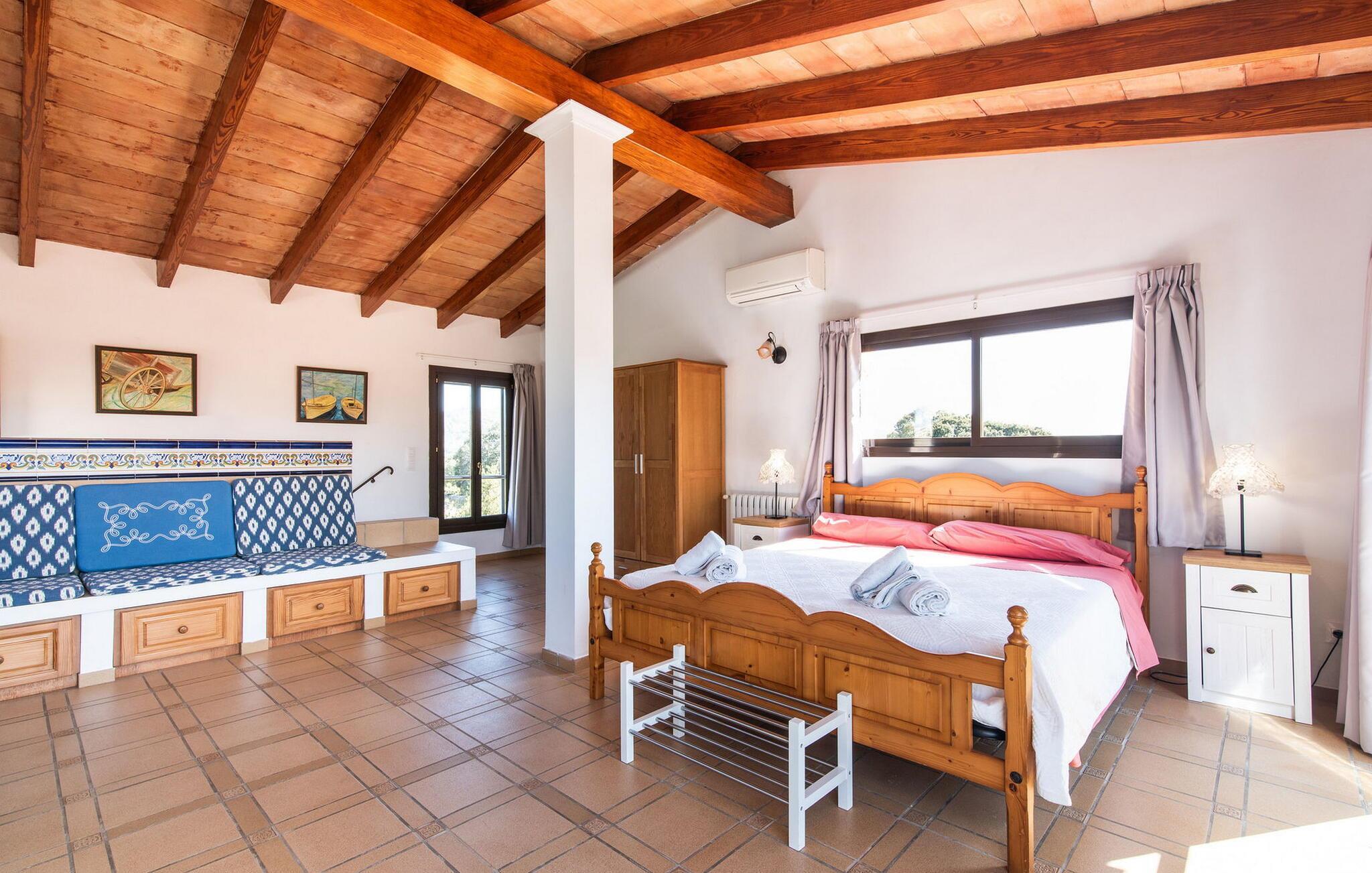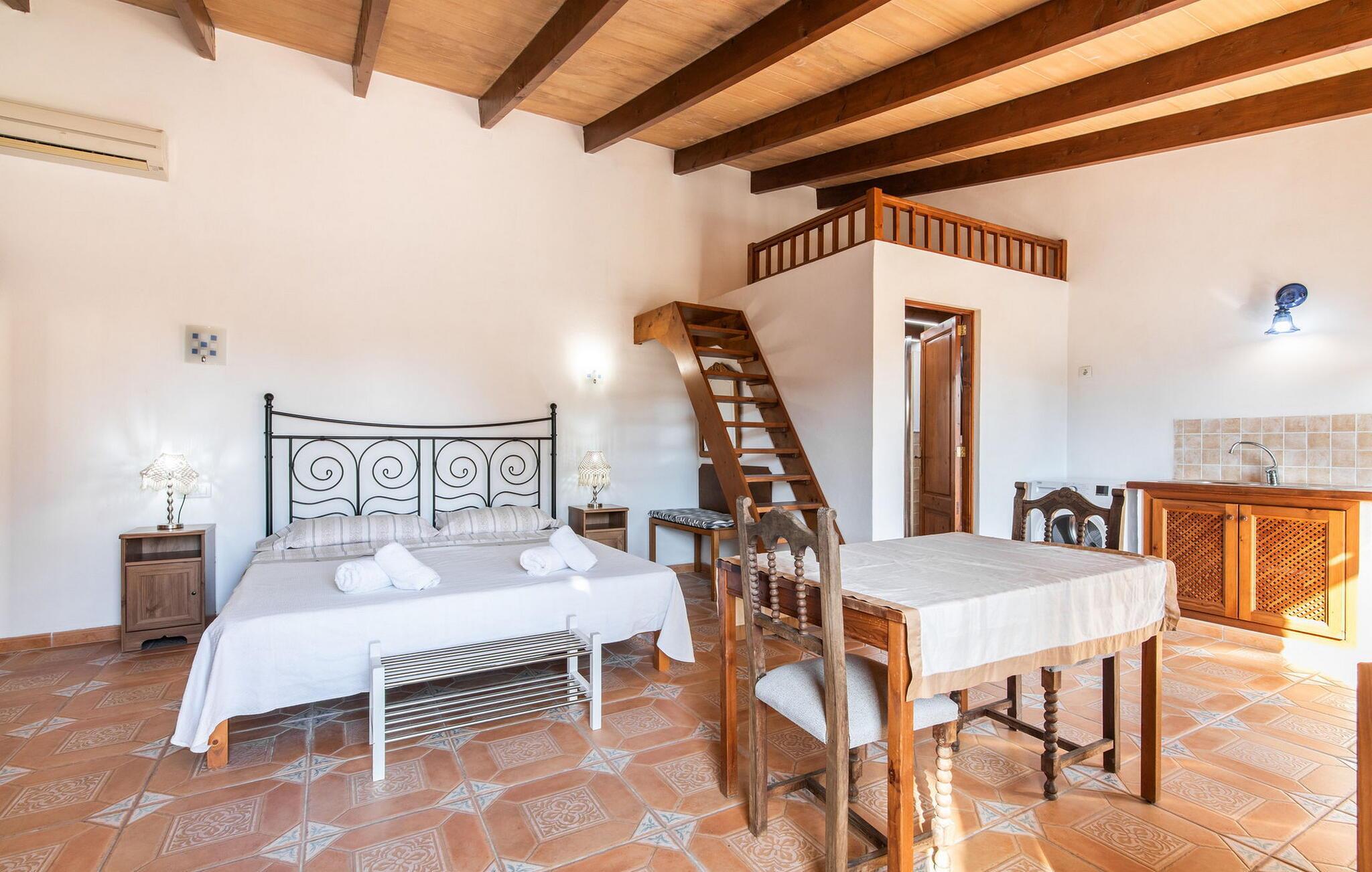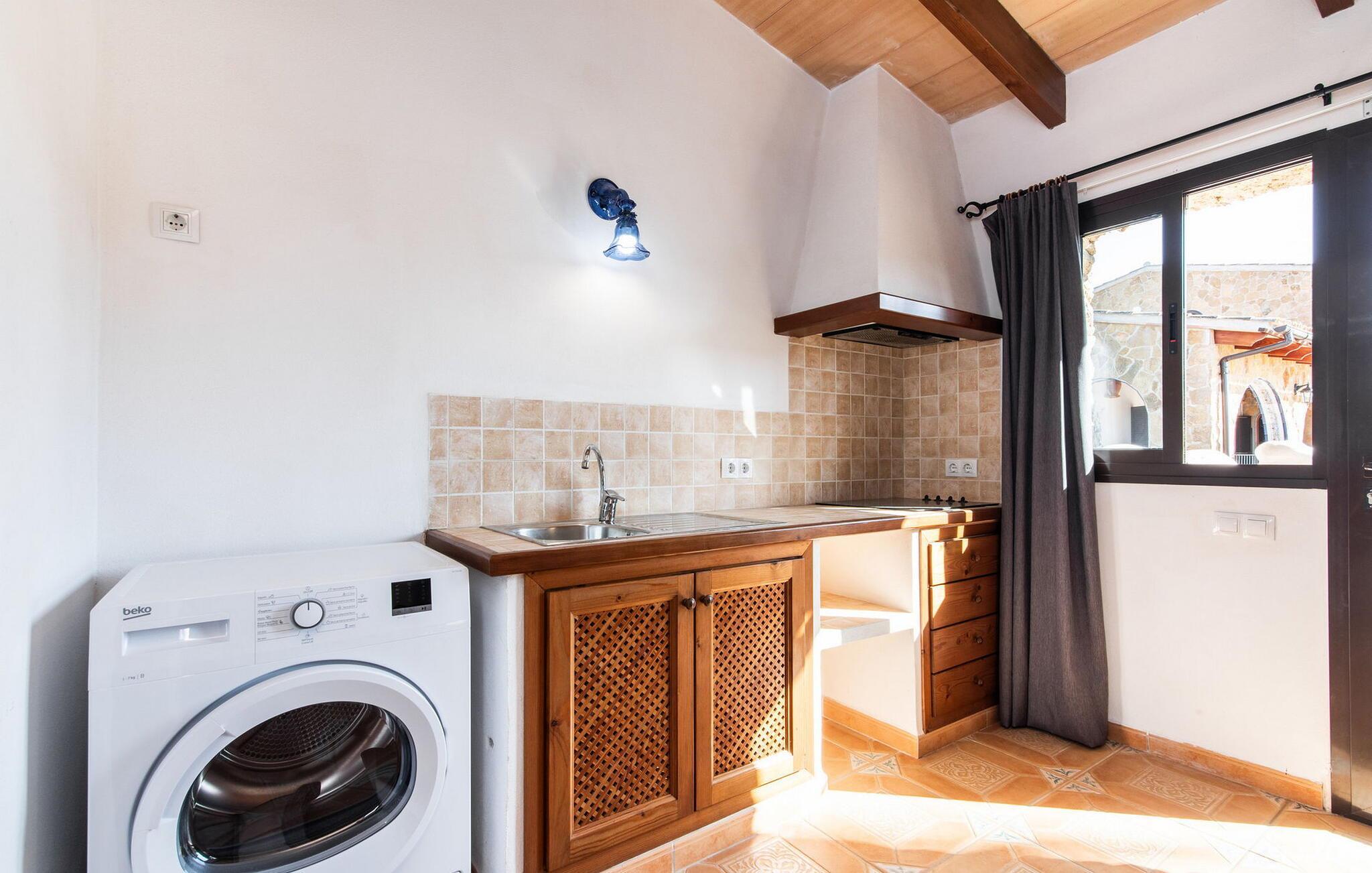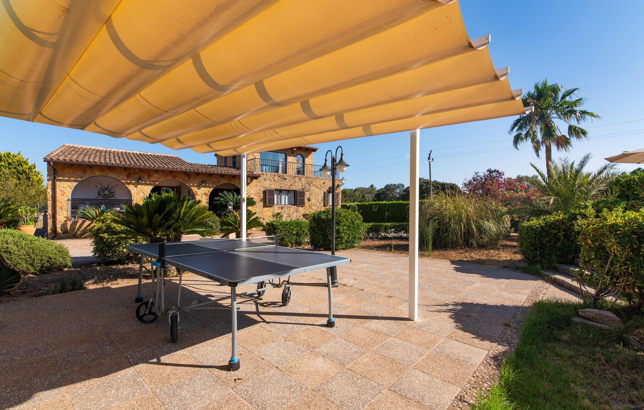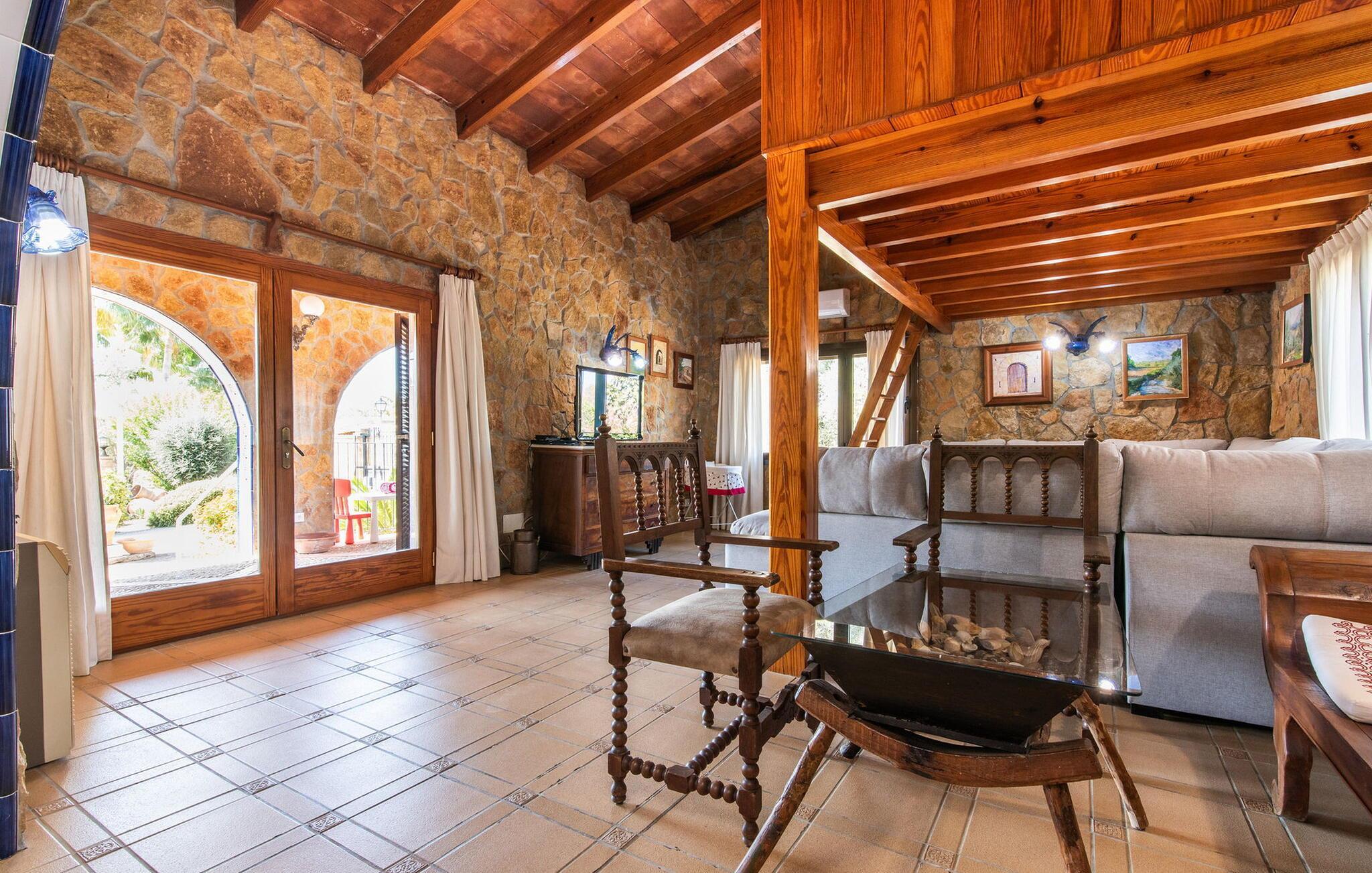 Det maleriske landsted "Na Peixet" blev bygget på en idyllisk og rolig ejendom med smuk middelhavsvegetation. Villaen viser typisk mallorcansk arkitektur og byggematerialer som natursten, lersten og eg. Terrasser og havegange rundt om huset er dekorativt udformet med flodsten og giver ejendommen et meget individuelt præg, herunder mange andre specielle detaljer. Udsigten fra dette feriehus er helt sensationel: du kan se både slottet Artà og Castillo de Capdepera. På første sal er der to tagterrasser, hvorfra man kan nyde en fantastisk udsigt. Udeområdets midtpunkt er den let forhøjede pool omgivet af grønt græs og en loungeterrasse. En udendørs bruser er også bekvemt placeret i nærheden, ligesom den geniale veranda, den stilfulde overdækkede del, hvorunder du kan sidde i en let brise og beskyttet mod solen. Mellem poolen og huset ligger den hyggelige grillplads med en muret grill, som er ideel til lækre grillsessioner, især på lune aftener. Du kan sidde komfortabelt her selv på kølige aftener og om vinteren - det sikrer de moderne strålevarmere og vindtætte glas. Lige ved siden af finder du endnu et højdepunkt på udendørsområdet: den lille legeplads. De små kan lege og slippe dampen af vildt. Et bordtennisbord er tilgængeligt, ligesom en basketballkurv fastgjort til ydervæggen. Den overdækkede terrasse ved huset er beskyttet mod vinden, så du kan sidde her til langt ud på natten med et godt glas vin og en vidunderlig udsigt. I weekenden er Artà Slot endda oplyst. Villaen er indhegnet (ca. 1 m høj). Du kan parkere direkte ved ferieboligen og ejendommen kan aflåses ved hjælp af en låge. Dette er et Fincallorca feriehus. Hele boligarealet er optimalt opdelt i et hovedhus og et smukt separat studie. Du kommer ind i hovedbygningen via den overdækkede terrasse og når stuen. Typiske mallorcanske dekorationer i form af billeder, kunstgenstande og antikviteter giver huset et indbydende, personligt præg. De anvendte materialer bidrager til den elegante atmosfære. Stuen er rummelig og super hyggelig, med flere sofaer og rustikke natursten på væggene, som også kan findes i resten af huset. Over sofahjørnet fører en stige op til en mellemetage, hvor et eller to børn sikkert vil nyde at sove. En seng, der måler 1,4 x 2, fås her. Stue og spisestue er forbundet med en smuk buet passage. I kan nyde et velholdt indendørs måltid sammen ved spisebordet. Spisestuen forgrener sig til en gang, som igen fører til de to soveværelser og badeværelser. Køkkenet er rummeligt og fuldt udstyret med opvaskemaskine, køle/fryseskab kombination, mikroovn, keramisk kogeplade, ovn, brødrister, filterkaffemaskine, Nespresso og elkedel. Der er så meget plads, at du endda kan få plads til endnu et spisebord. Soveværelserne i stueetagen er meget komfortable og giver et fremragende grundlag for en afslappende nat. Begge har et stort klædeskab og delvist træbeklædte vægge. Der er to senge på 1 x 2 m, der kan kombineres med hinanden, det andet soveværelse har en seng på 1,8 x 2 m. Alle soveværelser har aircondition, ligesom stuen. Badeværelset i stueetagen er udstyret med badekar, toilet, bidet og håndvask. Derudover er der også et vaskerum på denne etage med vaskemaskine, strygejern, strygebræt og tørrestativ. På første sal er der et stort, lyst dobbeltværelse med smuk udsigt, samt et brusebad. Huset opvarmes med centralvarme. Vand kommer fra den interne brønd. Hver tirsdag er der et ugentligt marked i centrum af Artà, som du bestemt bør opleve mindst én gang. Det kan nemt nås til fods på cirka 20 minutter. Her finder du regionale kulinariske specialiteter samt mallorcansk kunsthåndværk. Et par smukke hvide sandstrande kan hurtigt nås, hvoraf nogle stadig betragtes som rigtige insider-tips. Canyamel-stranden ligger kun 10 minutter væk i bil. Inden for 15 minutter kan du nå strandene mellem Cala Millor og Cala Rajada. Nærheden til Capdepera Golf er attraktiv for golfspillere. Brugen af WhatsApp (mindst én rejsende) er obligatorisk for at kommunikere med ejeren. Vær forsigtig, når du lejer en bil. Adgangsvejen har en skarp kurve med vægge, hvilket kan vise sig problematisk for 7 eller 8 personer. Naturstensvillaen "Na Peixet" er beliggende i en absolut rolig og afsondret beliggenhed nær Artà på den nordøstlige del af øen. Udsigten over Artà Slot er enestående, især om aftenen. Shoppingmuligheder er mindre end 5 minutter væk. Artà har også flere rigtig gode restauranter. Der er også nogle delvist uberørte strande i nærheden. Køreturen fra feriehuset til lufthavnen tager cirka en time.