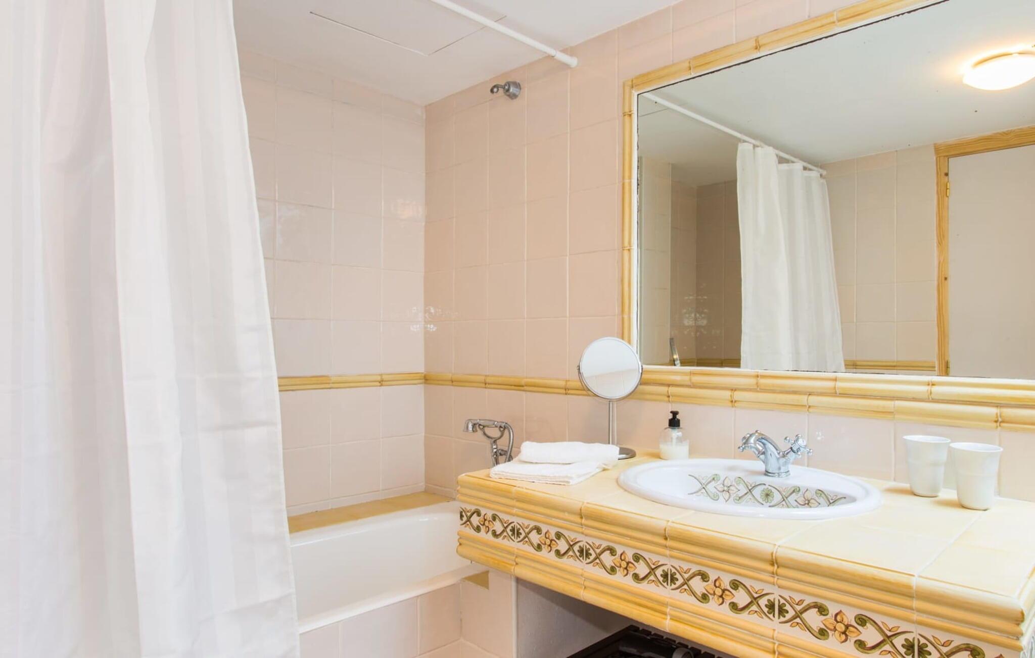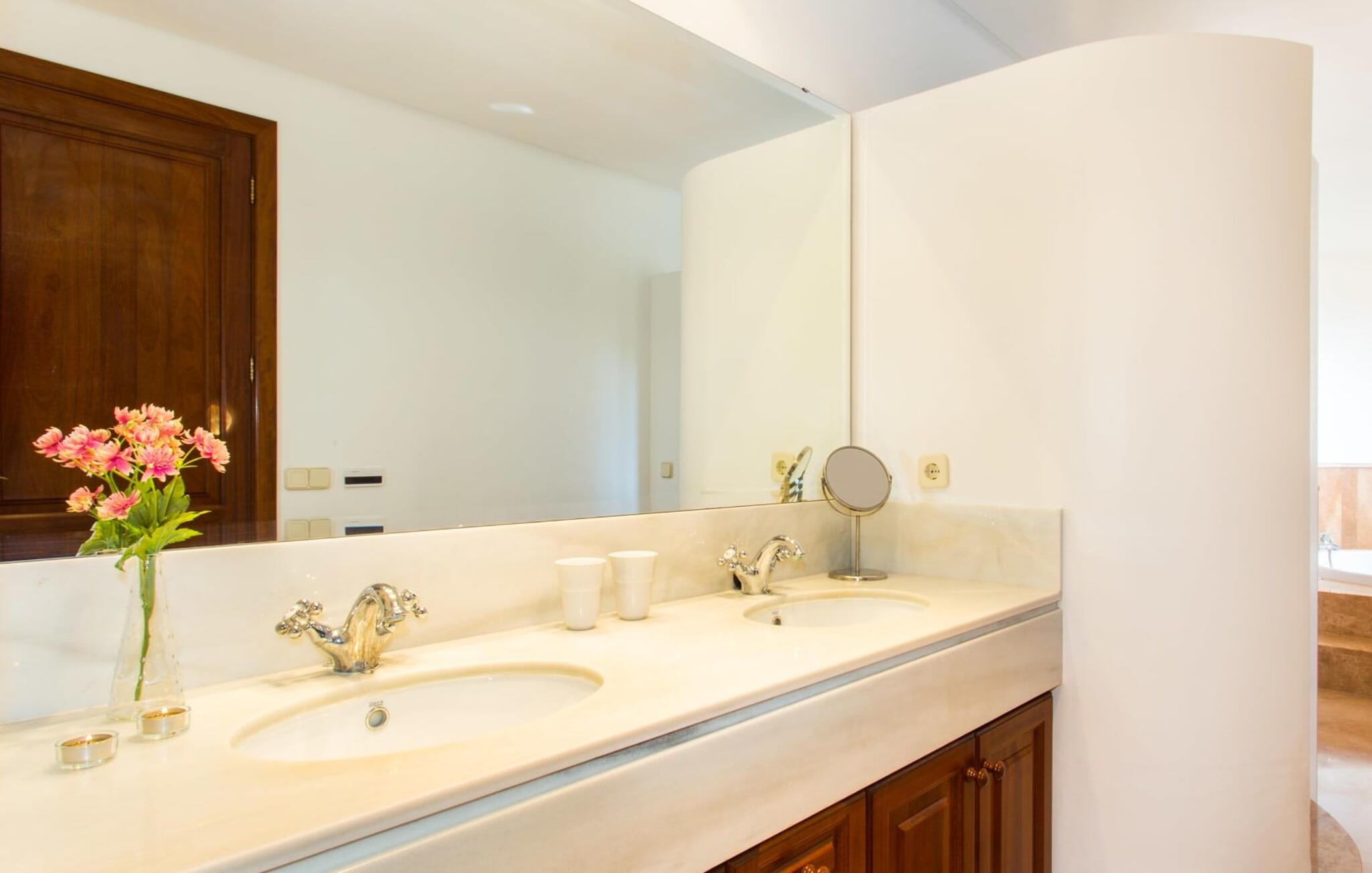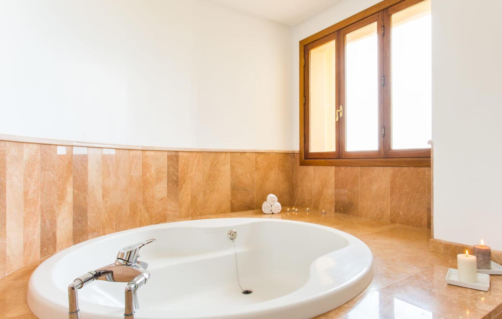modsætning til mange andre villaer af denne størrelse formår det statelige hus "Na Penyal" at forblive indbydende selv for familier med børn takket være dets møbler (indvendigt og udvendigt). Mange andre high-end villaer tilbyder en overflod af dateret luksus. "Na Penyal" imponerer med sit særligt familievenlige tilbud. Tænk bare på den børnesikre pool med hegn og aflåselig låge, som giver svømmere mulighed for at svømme rigtige runder på 10 m. De omkringliggende græsplæner indbyder til at slappe af og løbe rundt, mens de forskellige terrasseområder længere oppe byder på store borde til at lege eller spise sammen med en vidunderlig udsigt. Uanset om det er udendørs eller overdækket, finder alle med garanti deres yndlingssted her, for der er så mange afkroge, at du nemt kan finde dit eget personlige tilflugtssted her, også når det er fyldt. De tre får, der strejfer rundt på ejendommen, bidrager til den idylliske stemning, som villaen ligger på en bjergskråning har at tilbyde. Den virkelige attraktion for børnene? Det store, nyindrettede spillelokale med aktiviteter for store og små som bordtennis og dart. Eller træne på ergometeret, træne på boksesækken eller lav yoga på træningsmåtten. Men det er ikke kun de små gæster, der vil nyde deres ferie på denne finca i fulde drag; Voksne vil også sætte pris på de omfattende, moderne faciliteter. Villaen har satellit-tv, gratis WiFi (med godt signal ikke kun i huset, men også til at surfe på din iPad eller tablet ved poolen), et fuldt udstyret køkken (inklusive vaskemaskine og opvaskemaskine), ventilatorer til varmere dage, en udendørs bruser, en solid, indbygget grill og en pejs til hyggelig varme i vintermånederne. Villaen har i alt seks soveværelser med dobbeltsenge og syv badeværelser samt opholds- og spiseplads. Alle områder er rummelige, lyse og venlige. Værelserne er fordelt på to etager og garanterer optimalt privatliv, hvis I deler huset med hinanden. Vi kan derfor absolut anbefale denne feriebolig til to til tre familier. Hertil kommer husets enestående beliggenhed, kun omkring 1,5 km (i luftlinje) fra en af de mest børnevenlige strande på øen. Den brede bugt Cala Millor med sit fine sand har en lavvandet indgang til havet. Selve byen byder på en række barer, restauranter, butikker samt omfattende vandsport og fritidsaktiviteter. Hvis du hellere vil prøve uspolerede naturlige bugter, skal du ikke lede længere end de 18 Calas de Mallorca omkring Cala Millor (og Portocristo) langs de nordlige strande. Besøg for eksempel den smukke sandbugt "Cala Varquez" eller "Cala Domingo". Vi hos Fincallorca ønsker dig og din familie en afslappende ferie i "Na Penyal"! Den perfekte feriefølelse er garanteret senere på aftenen ved den interne grillstation eller ved den oplyste pool. "Na Penyal" er en storslået og familievenlig villa nær Son Servera på det østlige Mallorca. Den høje beliggenhed byder på en særlig spektakulær udsigt over havet. Det er kun en kort køretur fra flere strande i området. Cala Millor er også i nærheden og byder på supermarkeder, barer, restauranter og en omfattende promenade langs stranden og havnen. Dette er et Fincallorca feriehus.