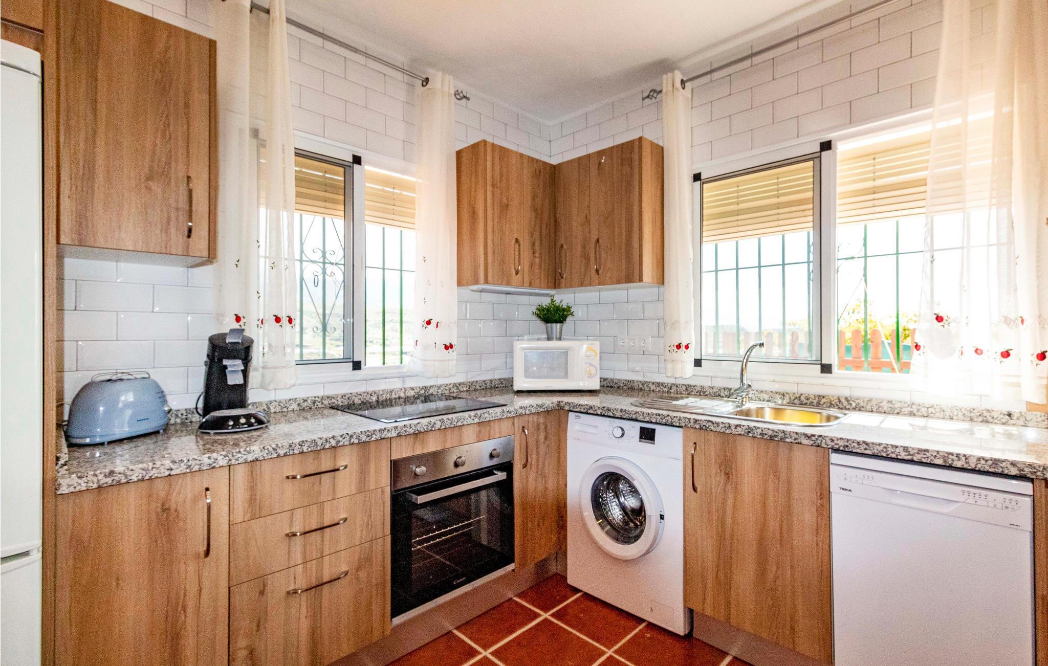 Dette feriehus ligger nær Nerja, indlejret i et fortryllende naturlandskab. Dette hyggelige feriehus tilbyder jer en dejlig kombination af fred og nærhed til attraktioner. Husets indretning er noget særligt med sin rustikke indretning, som giver jer mulighed for at få et autentisk og typisk ophold. Slap af i den hyggelige opholdsstue eller tilbered måltider sammen i køkkenet. Her finder I alt hvad I behøver for et vellykket ophold. Start jeres dag på den rummelige terrasse, hvor I kan nyde udsigten over de majestætiske bjerge og det fjerne hav, mens I spiser morgenmad. Lad jer inspirere af den friske luft og smukke omgivelser. Terrassen inviterer jer også til at tilbringe romantiske timer under stjernehimlen om aftenen. Tag en tur til de nærliggende stenstrande. Gå en tur langs vandet eller nyd en forfriskende svømmetur i Middelhavet. I kan også udforske den maleriske by Nerja og slentre gennem de charmerende gader med små butikker og caféer.