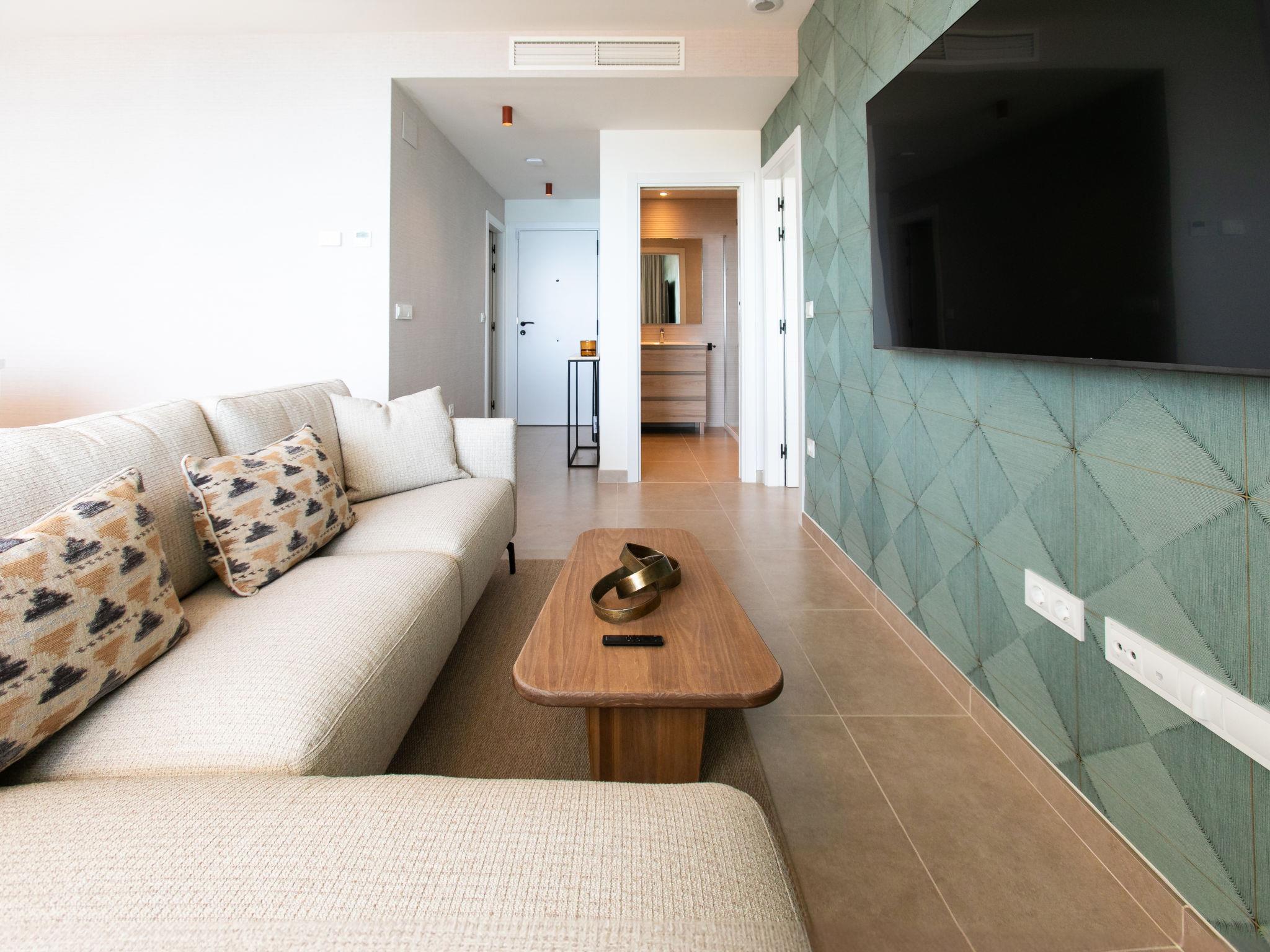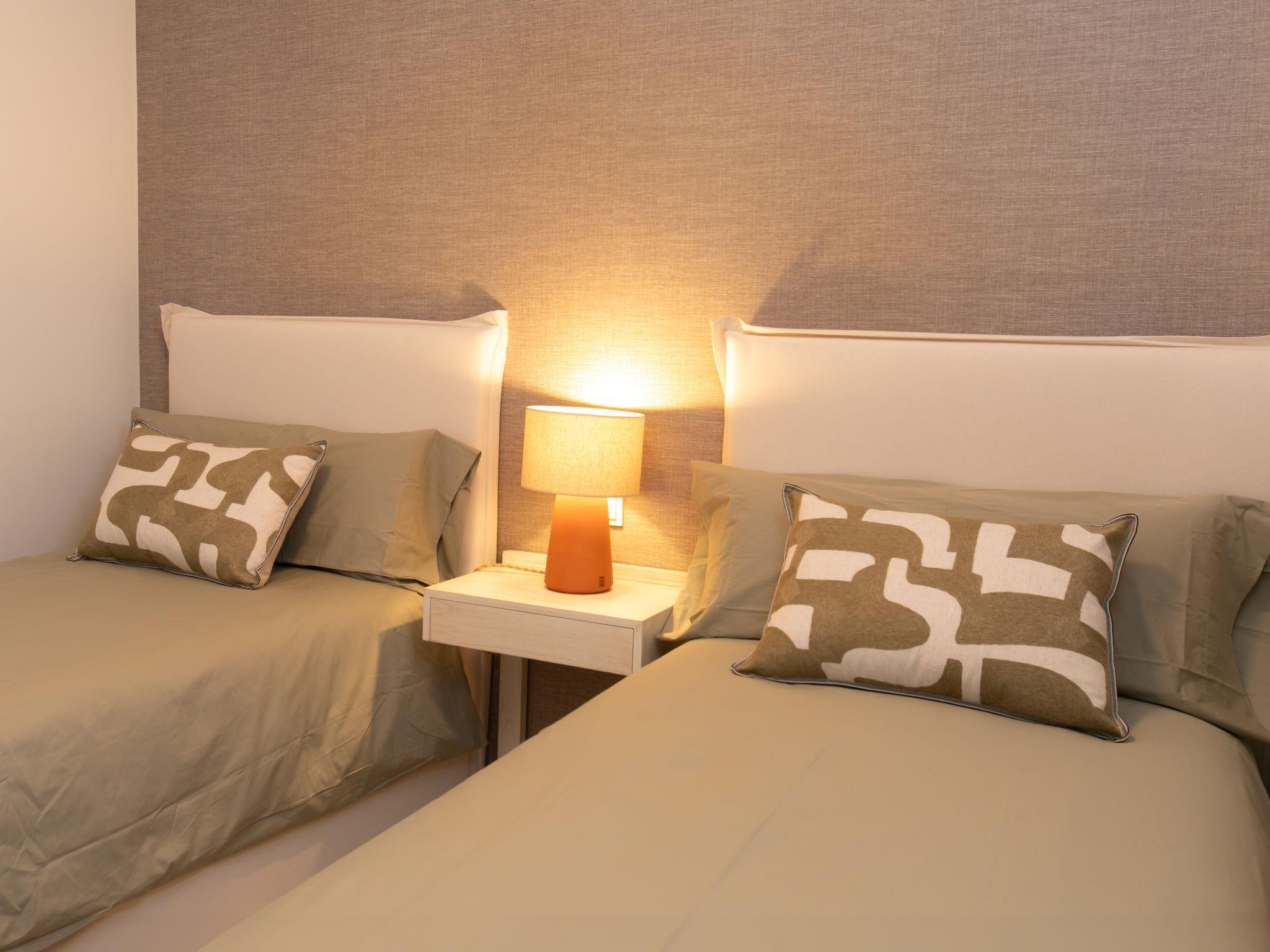 " Bayviewcollection Luxury Spa & Paddle", 3-room apartment 54 m2. Bright, beautiful and modern furnishings: living/dining room with digital TV, air conditioning and forced-air heating. Exit to the terrace. 1 room with 2 beds (90 cm, length 200 cm), air conditioning and forced-air heating. 1 room with 1 french bed (180 cm, length 200 cm), shower/WC, air conditioning and forced-air heating. Exit to the terrace. Open kitchen (oven, dishwasher, 4 ceramic glass hob hotplates, toaster, kettle, microwave, freezer, electric coffee machine). Shower/WC. Small terrace 31 m2. Terrace furniture. Marvellous view of the sea and the resort. Facilities: washing machine, dryer, safe, iron, children's high chair, baby cot, hair dryer. Internet (WiFi, free). VUT/MA/96894 // Reg. Nr.: ESFCTU00002901300112039900000000000000000VUT/MA/96942