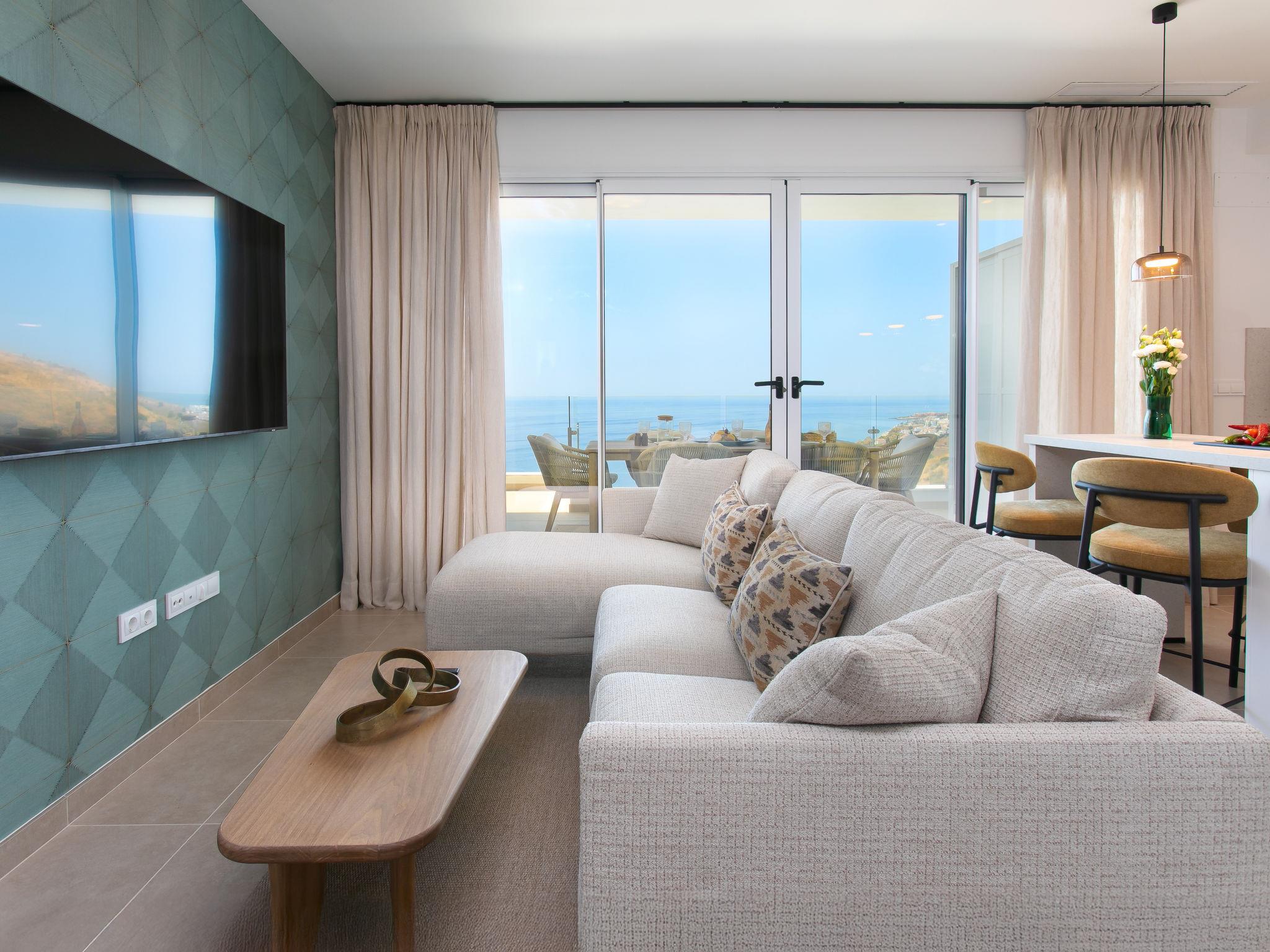 Within this moderm complex there are: two indoor heated swimingpools, football and basket pitch, golf trainig room, wine room, padel court, turkish bath, mini golf, cinema room, shared outdoor BBQ and terrace furniture. Modern, beautiful, comfortable apartment block "Bayviewhill Luxury free Spa & Padle". 1 km from the sea, 1 km from the beach. For shared use: 3 swimming pools (seasonal availability: 01.Jan. - 31.Dec.). WC in the pool area, children's pool, outdoor shower, hot tub, table tennis, arbour, pergola, garden furniture, barbecue, children's playground (slide, swing). In the house: lounge with TV, sauna, fitness room, steam room, hot tub (all included) (all included), billiard table, playroom, table football, lift, air conditioning. Parking space n 28. Shop 1 km, supermarket 100 m, shopping centre 23 km, restaurant 1 km, bus stop "Marinas de Nerja Hotel" 2 km, sandy beach "Calaceite" 1 km, diving center 3 km. Sports harbour 17 km, marina 17 km, golf course (18 hole) 23 km. Nearby attractions: Museo de Nerja, Cuevas de Nerja, Acantilados de Maro, Aquavelis, Malaga, La Alhambra. Well-known ski regions can easily be reached: Sierra Nevada. Hiking paths: Sierra Tejeda, Sierra Almijara. Please note: car recommended. The owner does not accept any youth groups. Loading and unloading of baggage is possible at the holiday house. Property ref. ES5405.57.1 is situated on the same property.