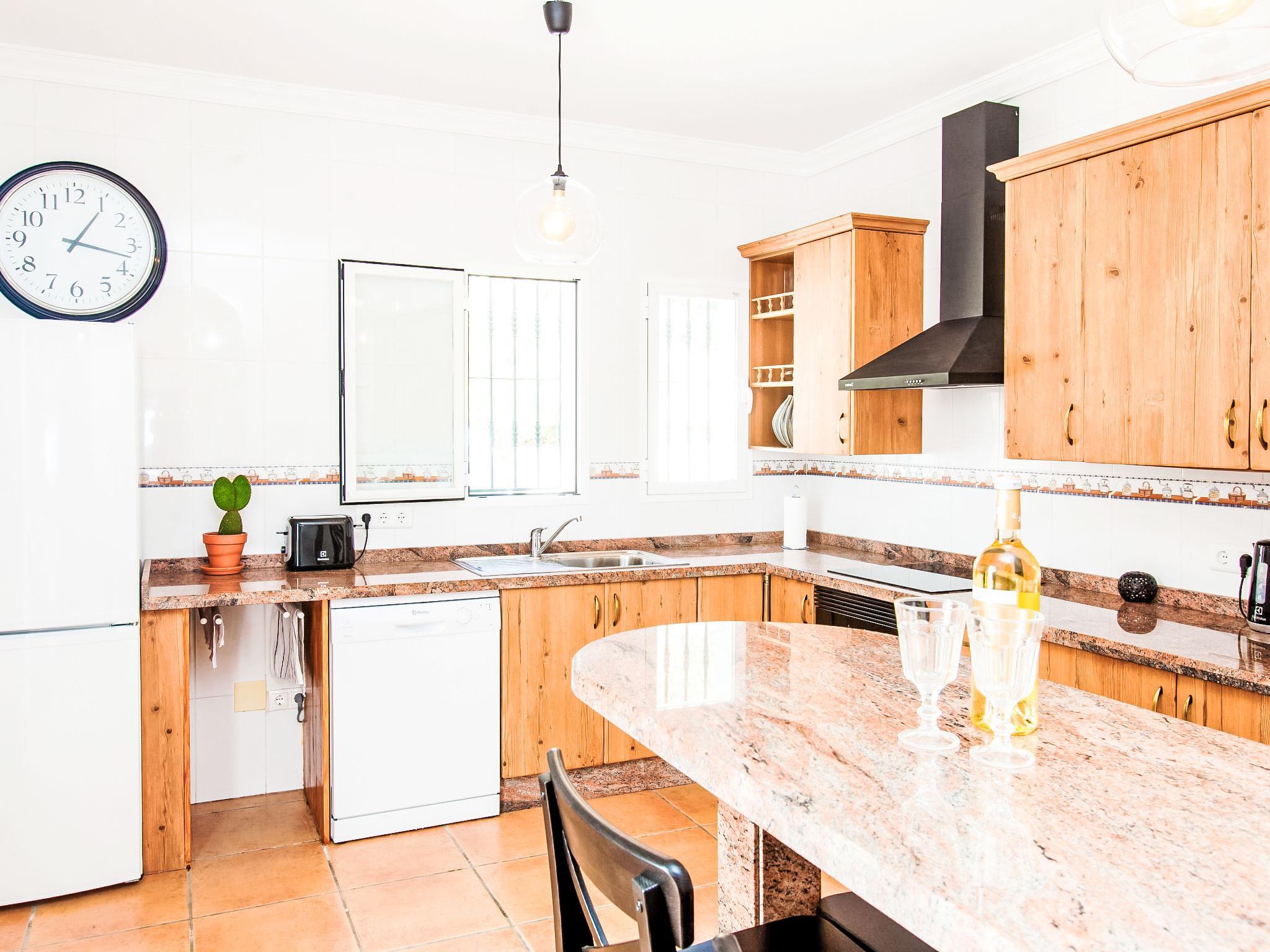 Torrox 10 km from Torrox Costa: Beautiful, comfortable house "Villa Rosa Blanca". Outside the resort, 7 km from the centre of pueblo de Torrox, in the district Torrox, in a quiet position, 10 km from the sea, in the countryside. Private: natural garden, swimming pool angular (6 x 4 m, seasonal availability: 01.Jan. - 31.Dec.). Outdoor shower, terrace, garden furniture, barbecue. In the house: internet access, WiFi, sun terrace, roof terrace, washing machine, tumble dryer. 2 km long steep, narrow motor access (2 km via unmade road). Parking space n 1 (for 2 cars) at the house on the premises. Shop 7 km, grocery 7 km, supermarket 7 km, shopping centre 25 km, restaurant 7 km, bar 7 km, bakery 7 km, café 7 km, pedestrian zone 7 km, bus stop "Torrox" 7 km, sandy beach "Torrox Costa" 10 km, diving center 10 km. Sports harbour 25 km, golf course (18 hole) 20 km. Nearby attractions: Torrox pueblo 7 km, Nerja 20 km, Frigiliana 23 km, Malaga 70 km, Competa 10 km. Well-known ski regions can easily be reached: Sierra Nevada. Well-known lakes can easily be reached: La Viñuela 35 km. Hiking paths: Almijara 20 km. Please note: car recommended. Baby equipment (included). Groups of teenagers on request only. Loading and unloading of baggage is possible at the holiday house.