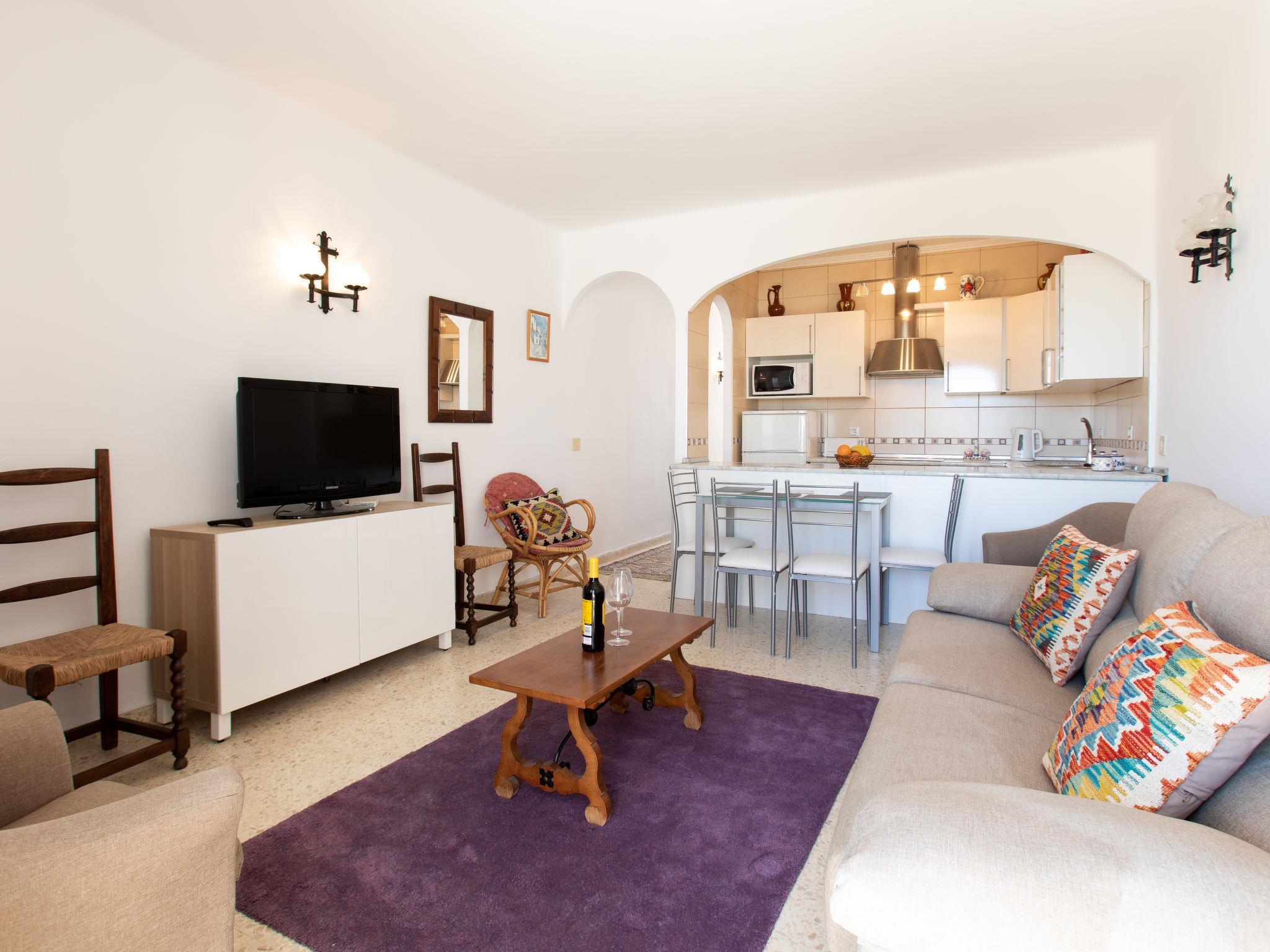 "Capistrano Village 125B", 2-room apartment 45 m2, south facing position. Object suitable for 2 adults + 1 child. Bright, practical and comfortable furnishings: living/dining room with 1 sofabed (135 cm, length 190 cm), open-hearth fireplace (only for decoration), bar, TV, international TV channels, flat screen, air conditioning, fan and forced-air heating. Exit to the terrace. 1 room with 2 beds (90 cm, length 190 cm), air conditioning, fan and forced-air heating. Open kitchen (oven, 4 ceramic glass hob hotplates, toaster, kettle, microwave, electric coffee machine, Capsules for coffee machine (Nespresso)) with bar. Shower/WC. Large terrace 20 m2. Terrace furniture, deck chairs (2). Very beautiful view of the sea, the mountains and the resort. Facilities: washing machine, iron, children's high chair, baby cot for up to 2 year olds, hair dryer. Internet (WiFi, free). Please note: suitable for families. 1 small pet/ dog allowed. Smoke alarm, fire extinguisher. VUT/MA/17745 // Reg. Nr.: ESFCTU0000290130001350590000000000000000VUT/MA/177459