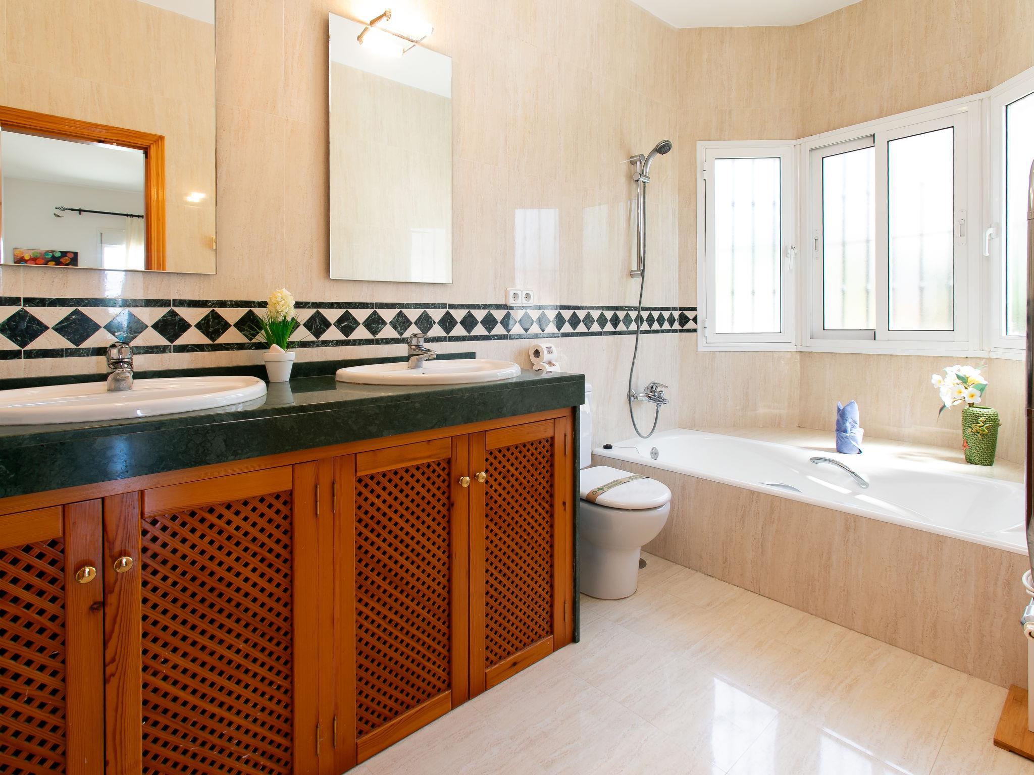 "Morea", 5-room villa 200 m2. Living/dining room with separate WC, digital TV, air conditioning and forced-air heating. Exit to the terrace. 1 room with 2 beds (90 cm, length 190 cm), air conditioning and forced-air heating. Exit to the terrace, to the swimming pool. 1 room with 1 french bed (190 cm, length 200 cm), bath/WC, air conditioning and forced-air heating. Exit to the terrace, to the swimming pool. Open kitchen (oven, dishwasher, 4 ceramic glass hob hotplates, toaster, kettle, microwave, freezer, electric coffee machine). Exit to the terrace. Shower/WC, sep. WC. On the lower ground floor: 1 open large room with 2 french beds (160 cm, length 200 cm), shower/WC and air conditioning. Playroom. 2 showers/WC. Terrace furniture, barbecue, deck chairs. Panoramic view of the sea, the mountains and the resort. Facilities: washing machine, dryer, iron, children's high chair, baby cot, hair dryer. Internet (WiFi, free). VUT/MA/93453 // Reg. Nr.: ESFCTU0000290130007893750000000000000000VUT/MA/934539