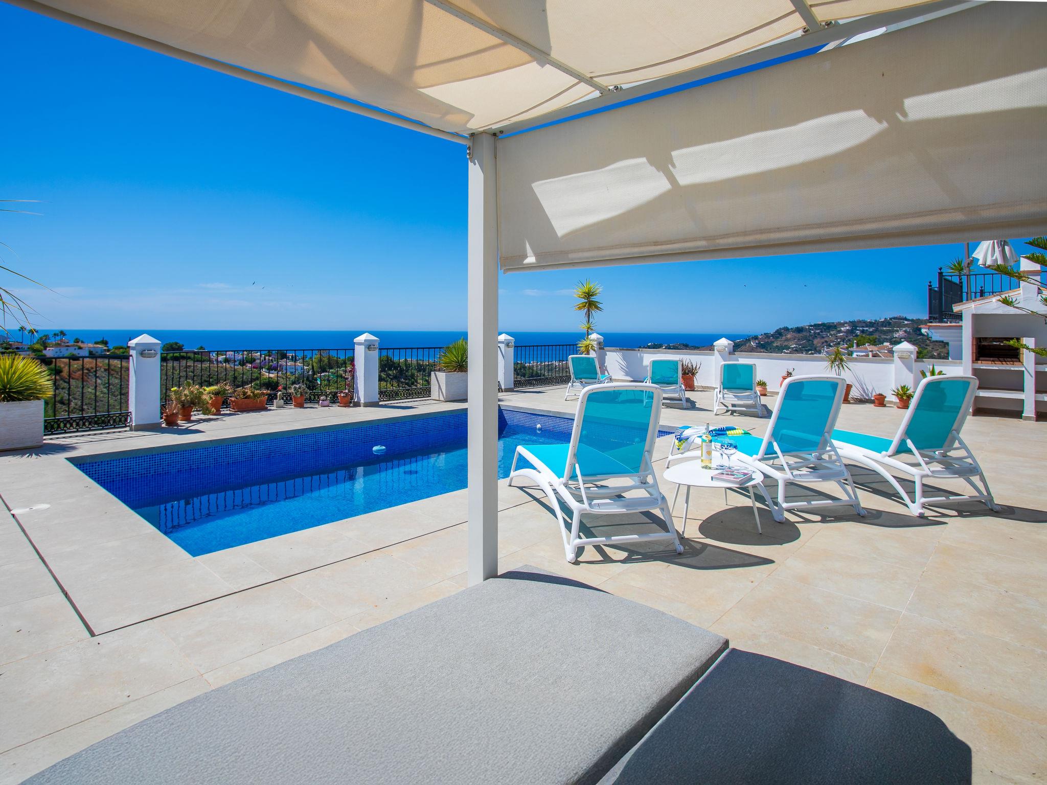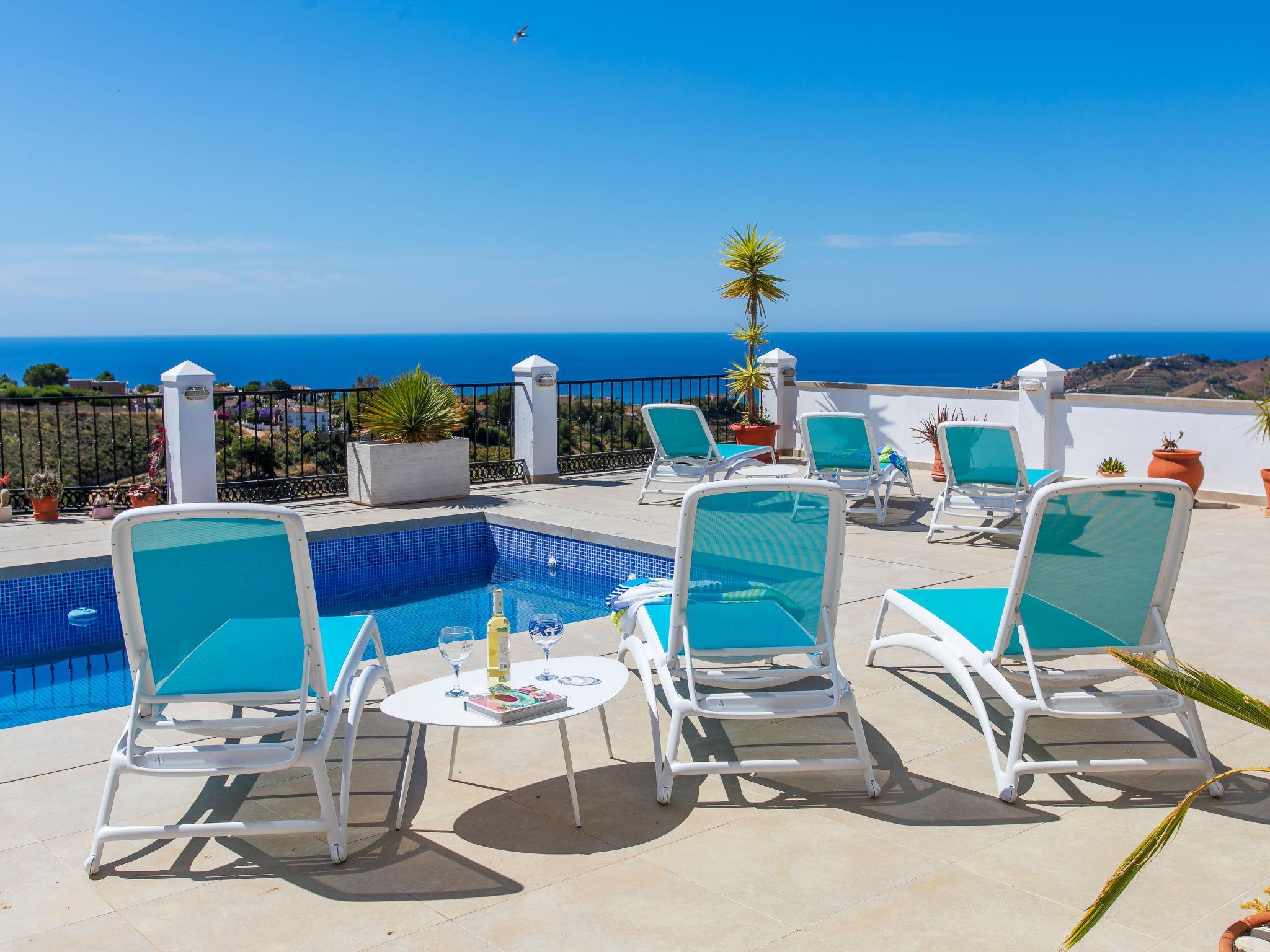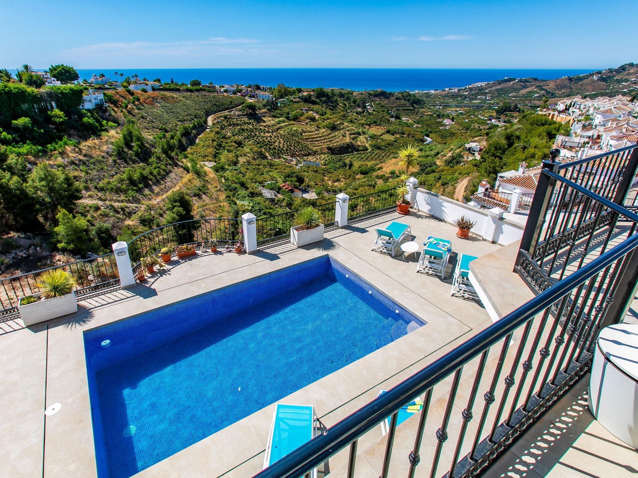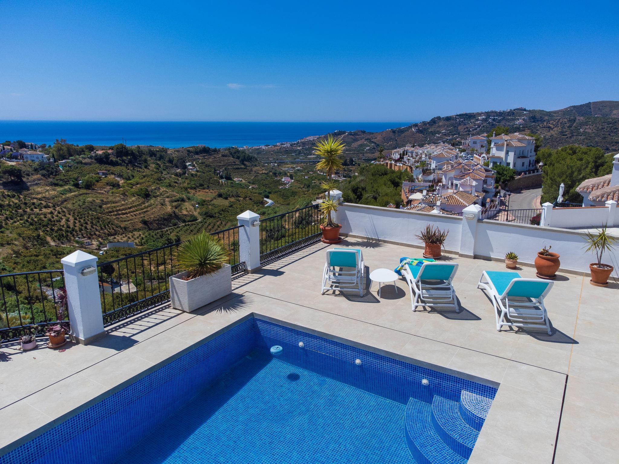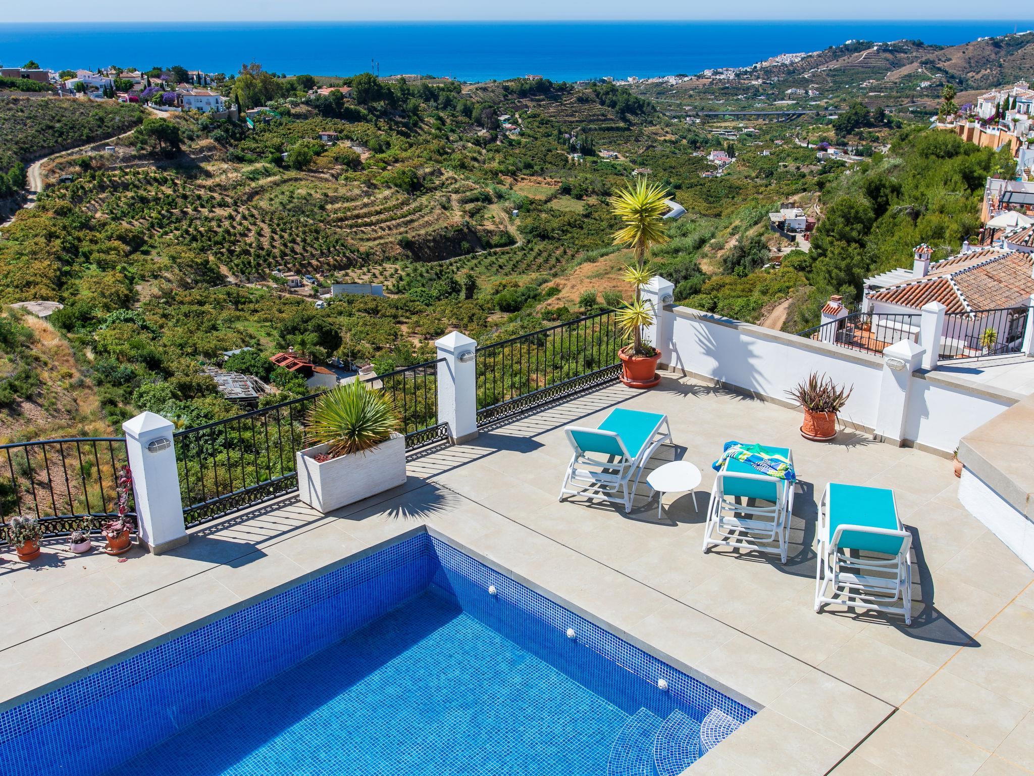 Beautiful, comfortable villa "Almijara". 4 km from the centre of Nerja, 4 km from the sea, 4 km from the beach. Private: swimming pool angular (10 x 4 m, depth 100 - 175 cm, seasonal availability: 01.Jan. - 31.Dec.). Bus stop 500 m. Please note: car recommended. The owner does not accept any youth groups. Loading and unloading of baggage is possible at the holiday house.