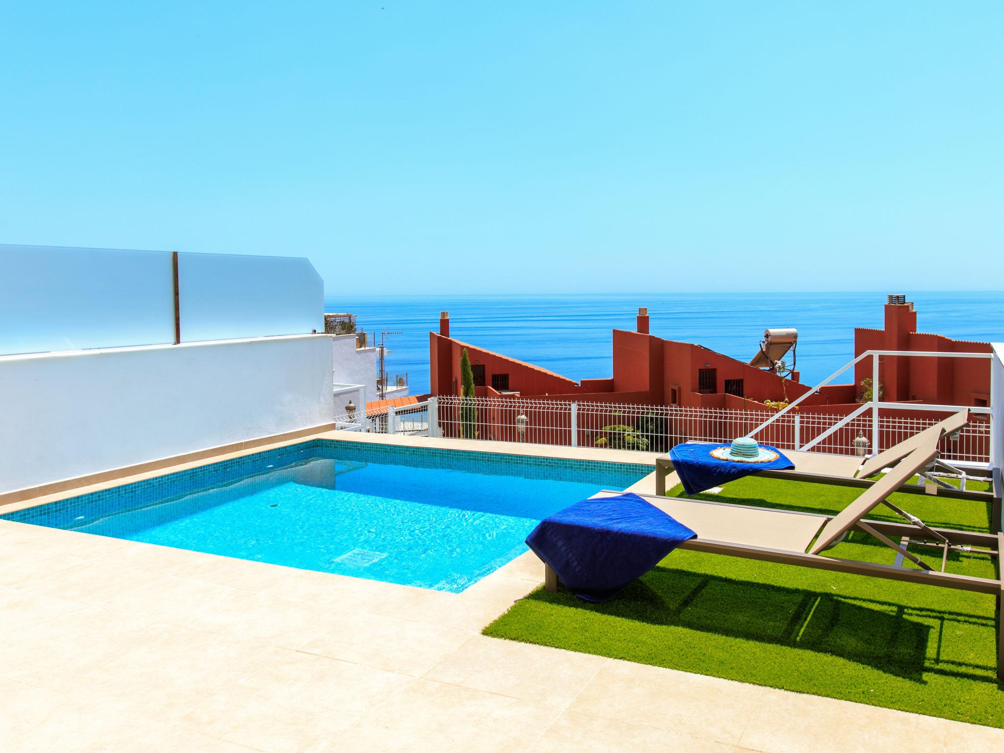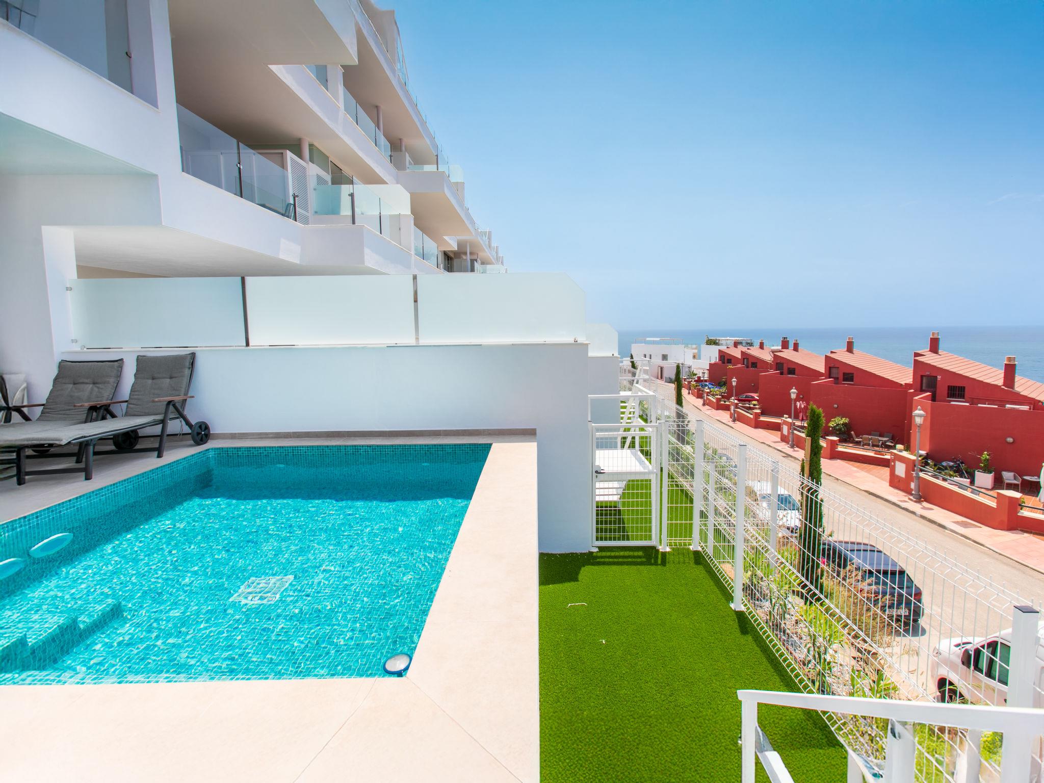 Modern, beautiful, comfortable apartment block "Heaven Free Spa & Padel". In a quiet position in the residential district, residential area (villas), 1 km from the sea, 1 km from the beach. For shared use: 3 swimming pools, indoor pool angular (seasonal availability: 01.Jan. - 31.Dec.). WC in the pool area, children's pool, outdoor shower, hot tub, table tennis, basketball, arbour, pergola, terrace, garden furniture, barbecue, children's playground (slide, swing), pool maintenance by the owner/gardener. Private: swimming pool (3 x 4 m, depth 120 - 120 cm, seasonal availability: 01.Jan. - 31.Dec.). Basketball. In the complex: lounge with TV, WiFi, sauna, fitness room, steam room, hot tub (all included), table tennis (all included), billiard table, playroom, table football, lift, air conditioning. Roofed, parking space n 2. Shop 1.5 km, grocery 1 km, shopping centre 1.7 km, restaurant 1 km, bus stop 1 km, diving center 17 km. Sports harbour 17 km, marina 17 km, golf course (18 hole) 23 km. Nearby attractions: Museo de Nerja, Cuevas de Nerja, Acantilados de Maro, Aquavelis, Museo de Miel de Caña, La Alhambra. Well-known ski regions can easily be reached: Sierra Nevada. Hiking paths: Sierra Tejeda, Sierra Almijara. Please note: car recommended. The owner does not accept any youth groups. Loading and unloading of baggage is possible at the holiday house. Property ref. ES5405.54.1 is situated on the same property. Two indoor heated comunal pools, indoor gym, wine room, golf simulator room.,Amazing complex with: indoor/outtwodoor gym, cinema room, wine room, golf training room, two indoor pools, sauna, hot bath, games room, padel court. Situated within less than 5 minutes drive from Nerja´s town centre and beach.