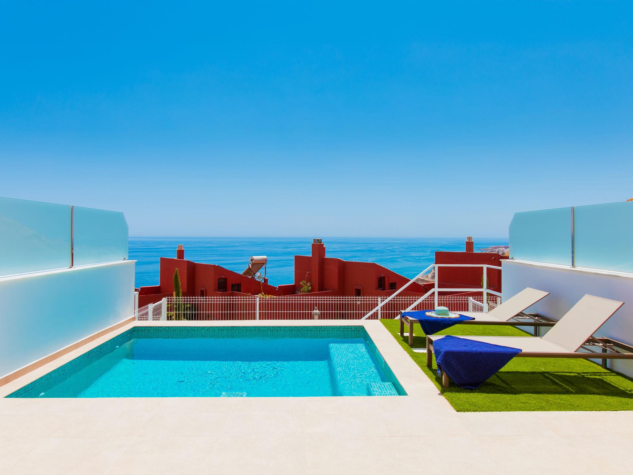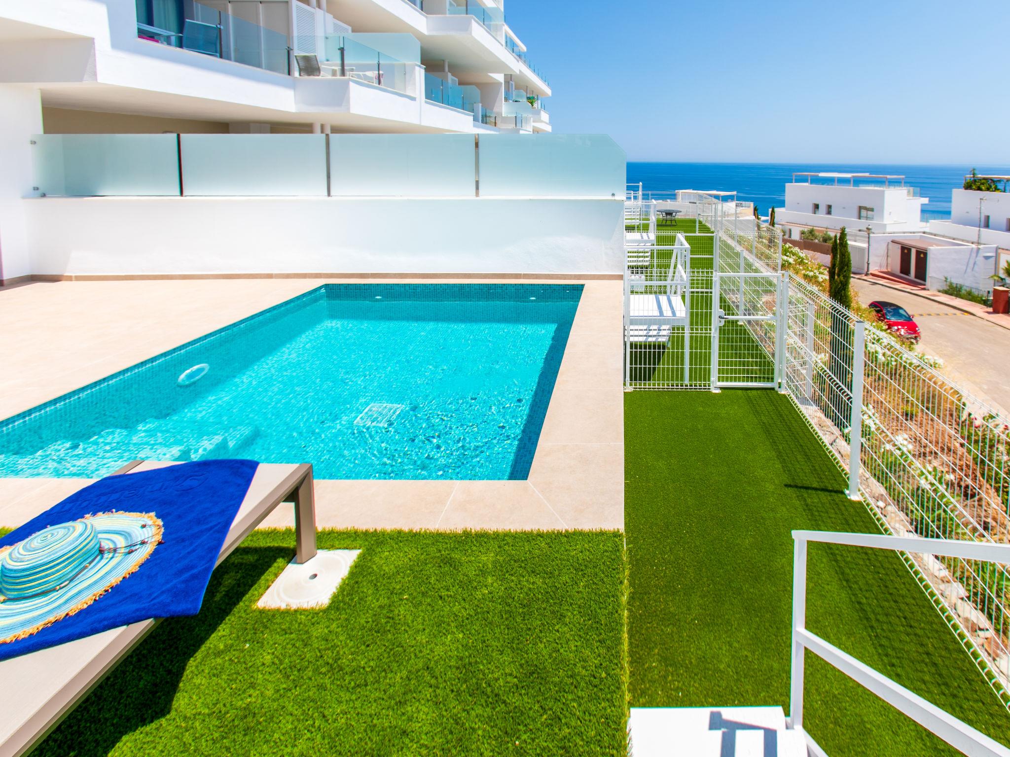Facilities within the community available: indoor lap pool, indoor gym, outdoor gym, mini golf, padel court, basket and futbol pitch, movie theatre, golf simulator, pool for swiming. Modern, beautiful, comfortable apartment block "Bayviewhills Amazing Spa & Padel". 1 km from the sea, 1 km from the beach. For shared use: 3 swimming pools, indoor pool (seasonal availability: 01.Jan. - 31.Dec.). WC in the pool area, children's pool, outdoor shower, hot tub, table tennis, terrace, garden furniture, barbecue, children's playground (slide, swing), pool maintenance by the owner/gardener. Private: swimming pool (3 x 4 m, depth 100 - 100 cm, seasonal availability: 01.Jan. - 31.Dec.). Pool maintenance by the owner/gardener. In the house: lounge, sauna, fitness room, steam room, hot tub (all included), table tennis (all included), billiard table, playroom, table football, lift, air conditioning. Parking space n 50. Shop 1 km, grocery 1 km, supermarket 1 km, shopping centre 23 km, restaurant 1 km, bus stop "Nerja" 3 km, sandy beach "Calaiceite" 1 km, diving center 3 km. Sports harbour 17 km, marina 17 km, golf course (18 hole) 23 km. Nearby attractions: Museo de Nerja, Cuevas de Nerja, Acantilados de Maro, Aquavelis, Museo de Miel de Caña, La Alhambra. Well-known ski regions can easily be reached: Sierra Nevada. Hiking paths: Sierra Tejeda, Sierra Almijara. Please note: car recommended. The owner does not accept any youth groups. Loading and unloading of baggage is possible at the holiday house. Property ref. ES5405.776.1 is situated on the same property.