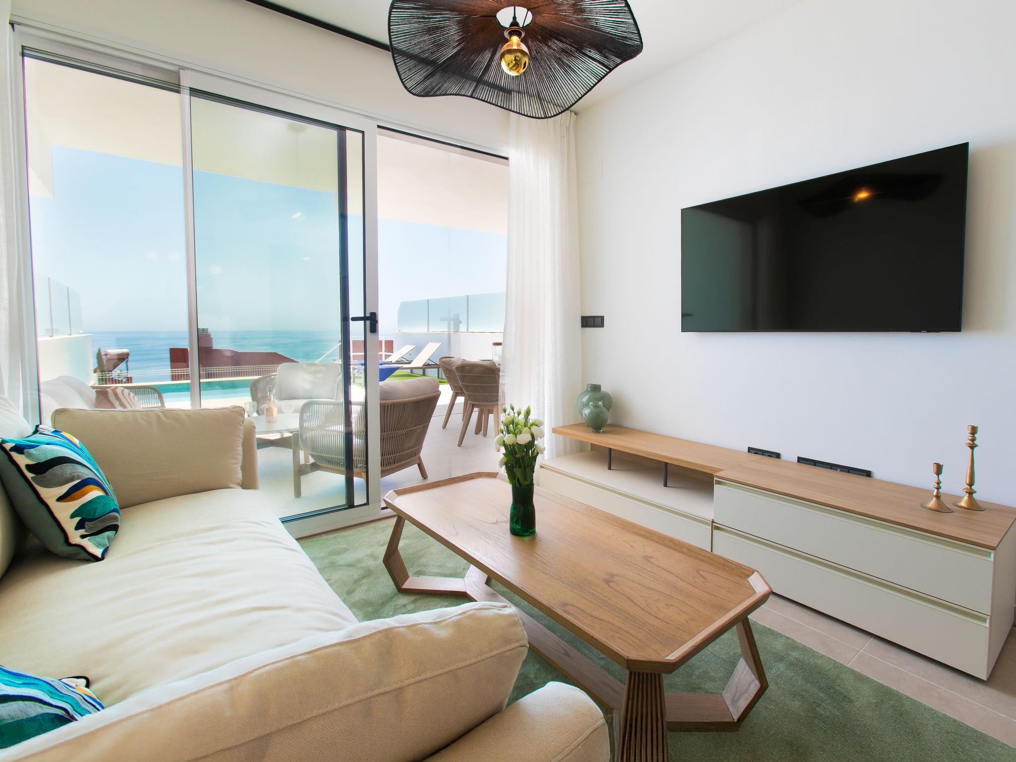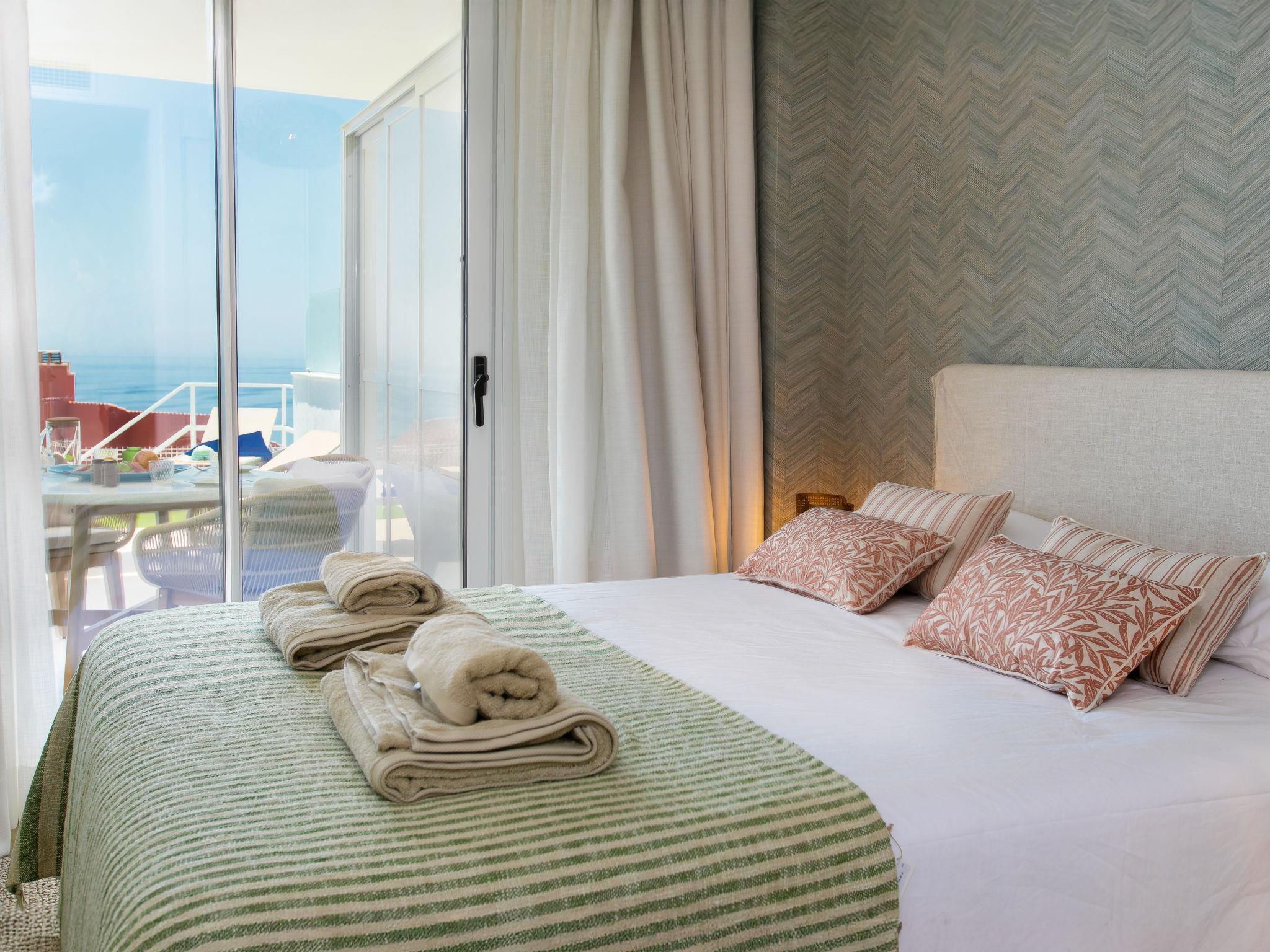 "Bayviewhills Amazing Free Spa & Padel", 3-room apartment 53 m2. Comfortable and modern furnishings: living/dining room with digital TV, air conditioning and forced-air heating. Exit to the terrace, to the swimming pool. 1 room with 1 french bed (150 cm, length 190 cm), air conditioning and forced-air heating. Exit to the terrace. 1 room with 1 french bed (150 cm, length 190 cm), shower/WC, air conditioning and forced-air heating. Exit to the terrace, to the swimming pool. Open kitchen (oven, dishwasher, 4 ceramic glass hob hotplates, toaster, kettle, microwave, freezer, electric coffee machine). Shower/WC. Terrace 11 m2, 2 terraces 51 m2. Terrace furniture, barbecue, deck chairs. Marvellous view of the sea. Facilities: washing machine, safe, iron, children's high chair, baby cot for up to 3 year olds, hair dryer. Internet (WiFi, free). VUT/MA/93678 // Reg. Nr.: ESFCTU0000290130011202690000000000000000VUT/MA/936788