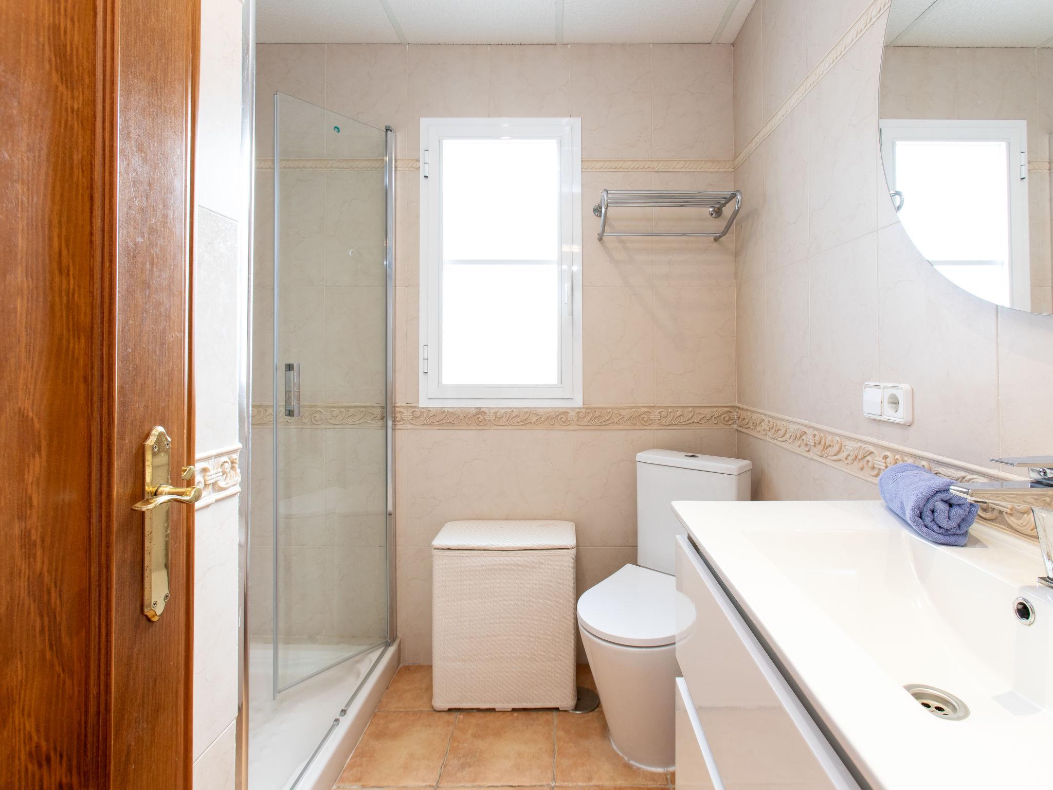 "Vallbo", 5-room villa 200 m2, south facing position. Spacious, practical and comfortable furnishings: living/dining room with digital TV and air conditioning. Exit to the terrace. Kitchen (oven, dishwasher, 4 ceramic glass hob hotplates, toaster, kettle, microwave, freezer, electric coffee machine). Sep. WC. On the lower ground floor: 1 room with 2 beds (90 cm, length 200 cm), air conditioning. Exit to the terrace, to the swimming pool. 1 room with 1 french bed (160 cm, length 200 cm), air conditioning. Exit to the terrace, to the swimming pool. 1 room with 1 french bed (160 cm, length 200 cm), air conditioning. Exit to the terrace, to the swimming pool. 1 room with 1 french bed (160 cm, length 200 cm), shower/WC and air conditioning. Exit to the terrace, to the swimming pool. 3 showers/WC. 3 large terraces. Terrace furniture, barbecue, deck chairs. Panoramic view of the sea and the resort. Facilities: iron, baby cot, hair dryer. Internet (WiFi, free). CR/MA/01180 // Reg. Nr.: ESFCTU00002901300067484800000000000000000CR/MA/011809