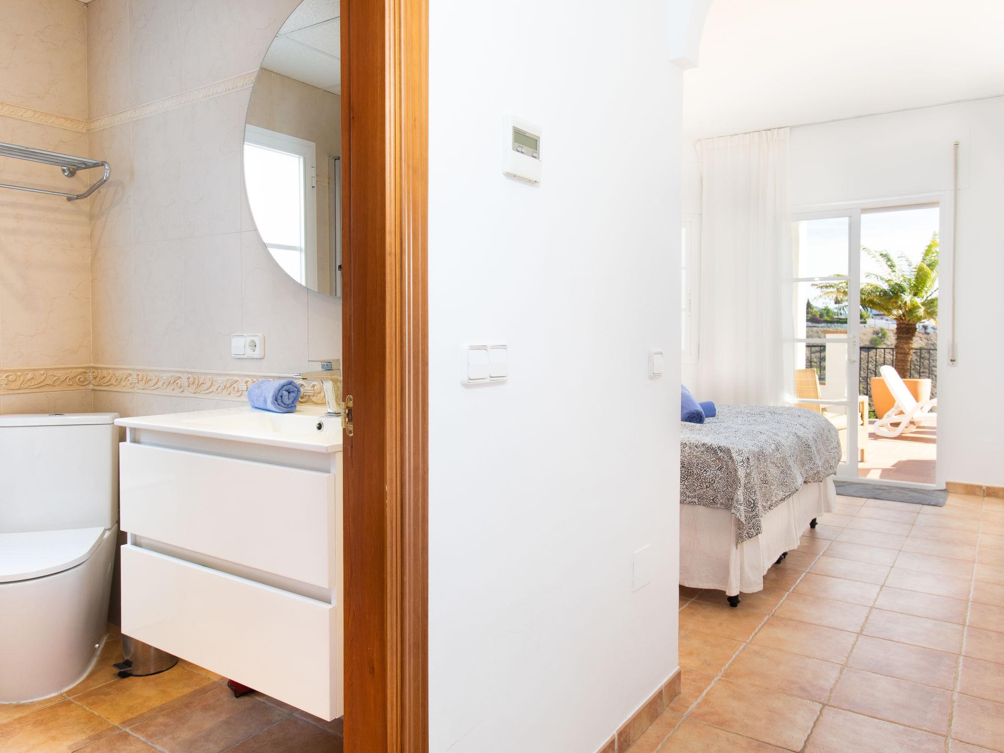 Beautiful, comfortable house "Vallbo", 2 storeys. In the resort 2 km from the centre of Frigiliana, outside the resort, 4 km from the centre of Nerja, 4 km from the sea, 4 km from the beach, south facing position. Private: swimming pool (8 x 4 m, depth 100 - 180 cm, seasonal availability: 01.Jan. - 31.Dec.). Shop 3 km, grocery 2 km, supermarket 4 km, shopping centre 23 km, restaurant 2 km, bakery 3 km, pedestrian zone 2 km, bicycle rental 4 km, pub garden 2 km, bus stop 300 m, railway station 50 km, ferry 50 km, sandy beach "Burriana" 4 km, diving center 4 km. Sports harbour 17 km, marina 17 km, golf course (18 hole) 23 km, surf school 45 km, sailing school 17 km. Nearby attractions: Frigiliana, Granada, Malaga, Competa, Maro, Almuñecar. Well-known ski regions can easily be reached: Sierra Nevada. Hiking paths: Sierra Almijara, Sierra Tejeda, Las Alpujarras. Please note: car recommended. The owner does not accept any youth groups. Loading and unloading of baggage is possible at the holiday house.