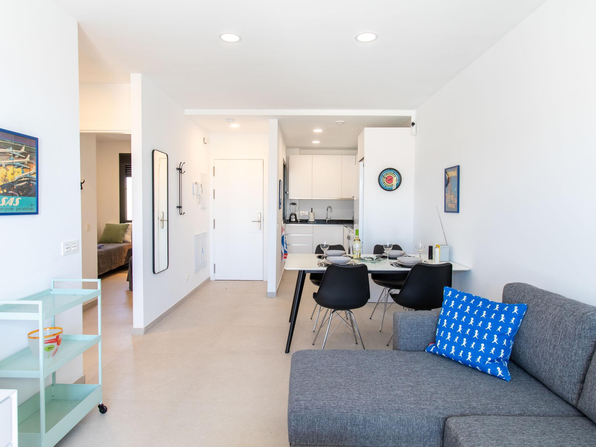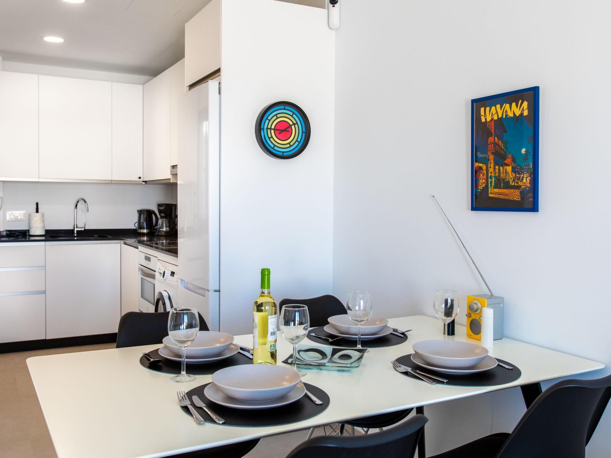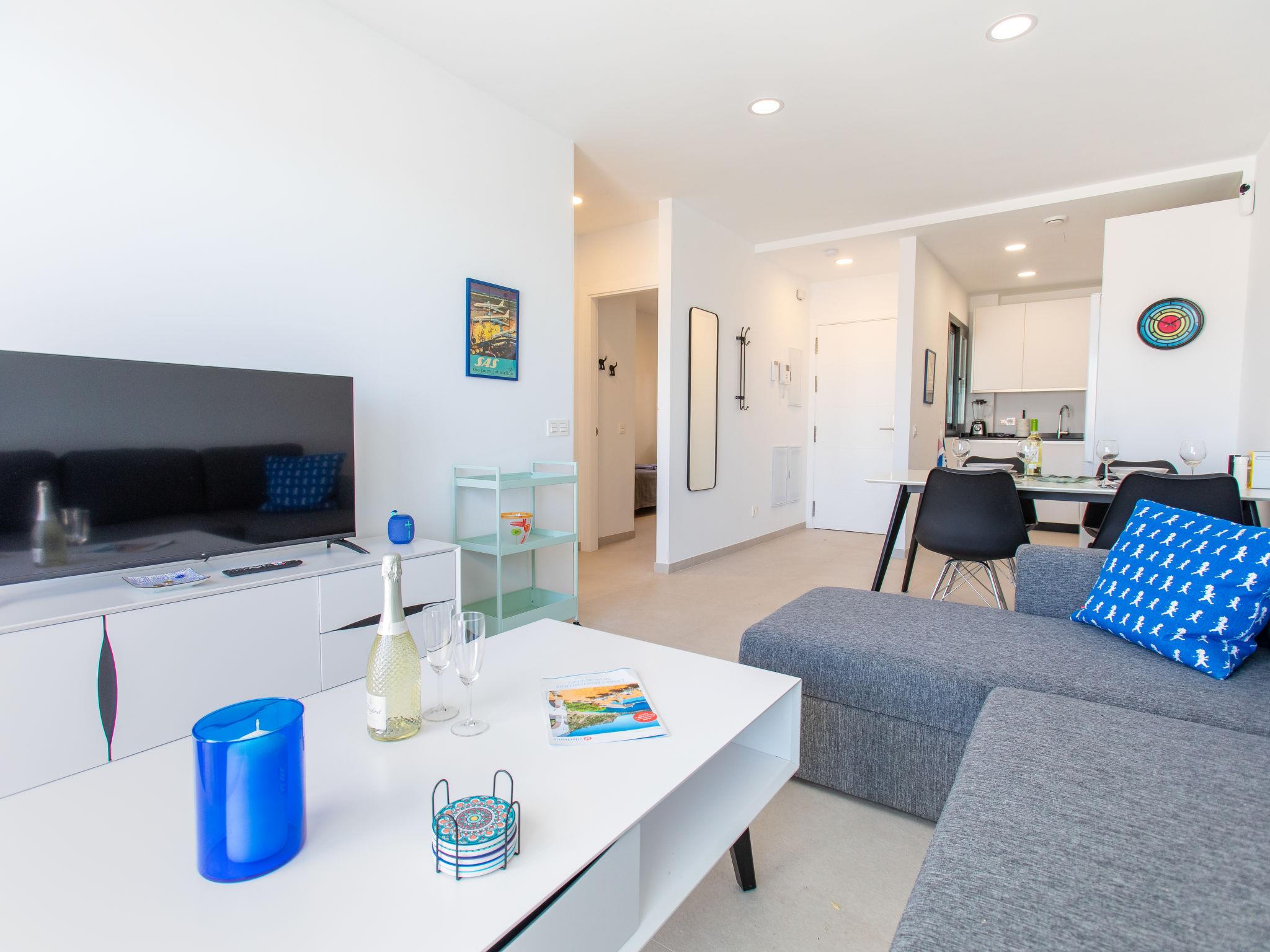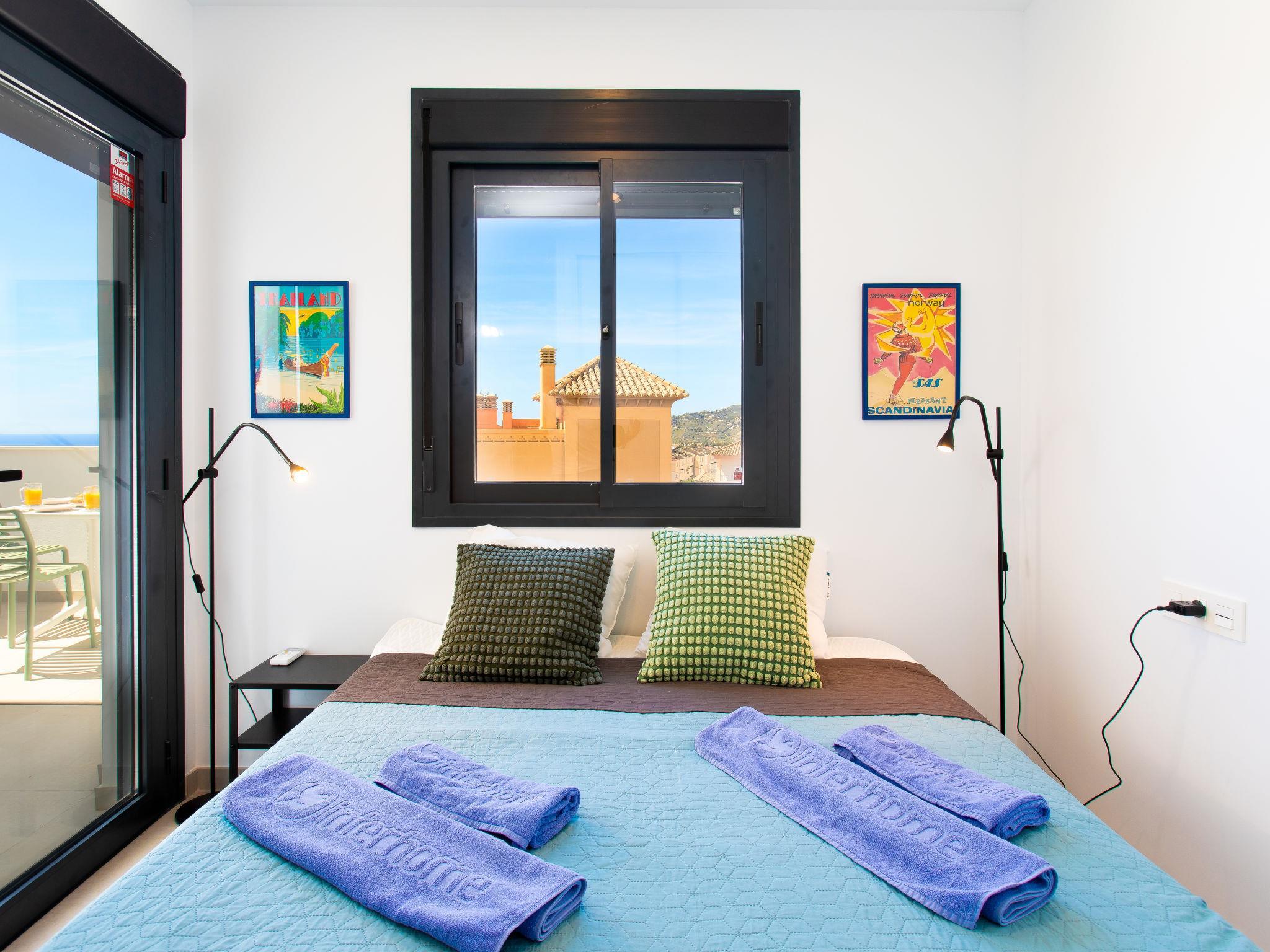 "Colina Alta", 3-room apartment 56 m2, south facing position. Bright, very practical and comfortable furnishings: living/dining room with dining table, digital TV, international TV channels, flat screen, air conditioning and forced-air heating. Exit to the terrace. 1 room with 1 french bed (160 cm, length 190 cm), air conditioning and forced-air heating. Exit to the terrace. 1 room with 2 beds (75 cm, length 190 cm), air conditioning and forced-air heating. Open kitchen (dishwasher, 3 ceramic glass hob hotplates, toaster, kettle, microwave, freezer, electric coffee machine). Shower/WC. Large terrace 12 m2. Terrace furniture, deck chairs. Marvellous view of the sea, the mountains and the swimming pool. Facilities: washing machine, iron, children's high chair, baby cot for up to 2 year olds, hair dryer. Internet (WiFi, free). Please note: smoke alarm, fire extinguisher. Smart TV, Bluetooth speaker. VUT/MA/76304 // Reg. Nr.: ESFCTU0000290130011126530000000000000000VUT/MA/763047