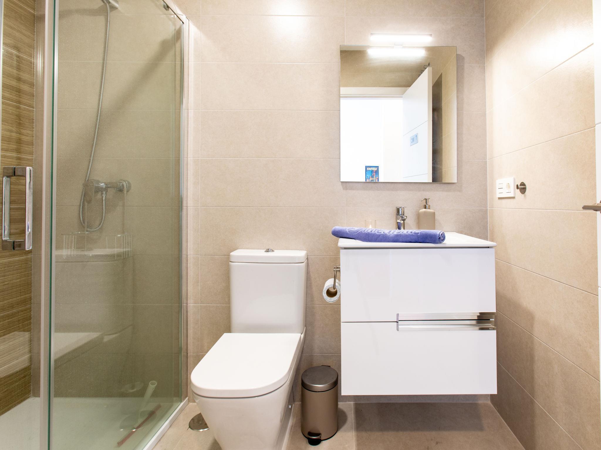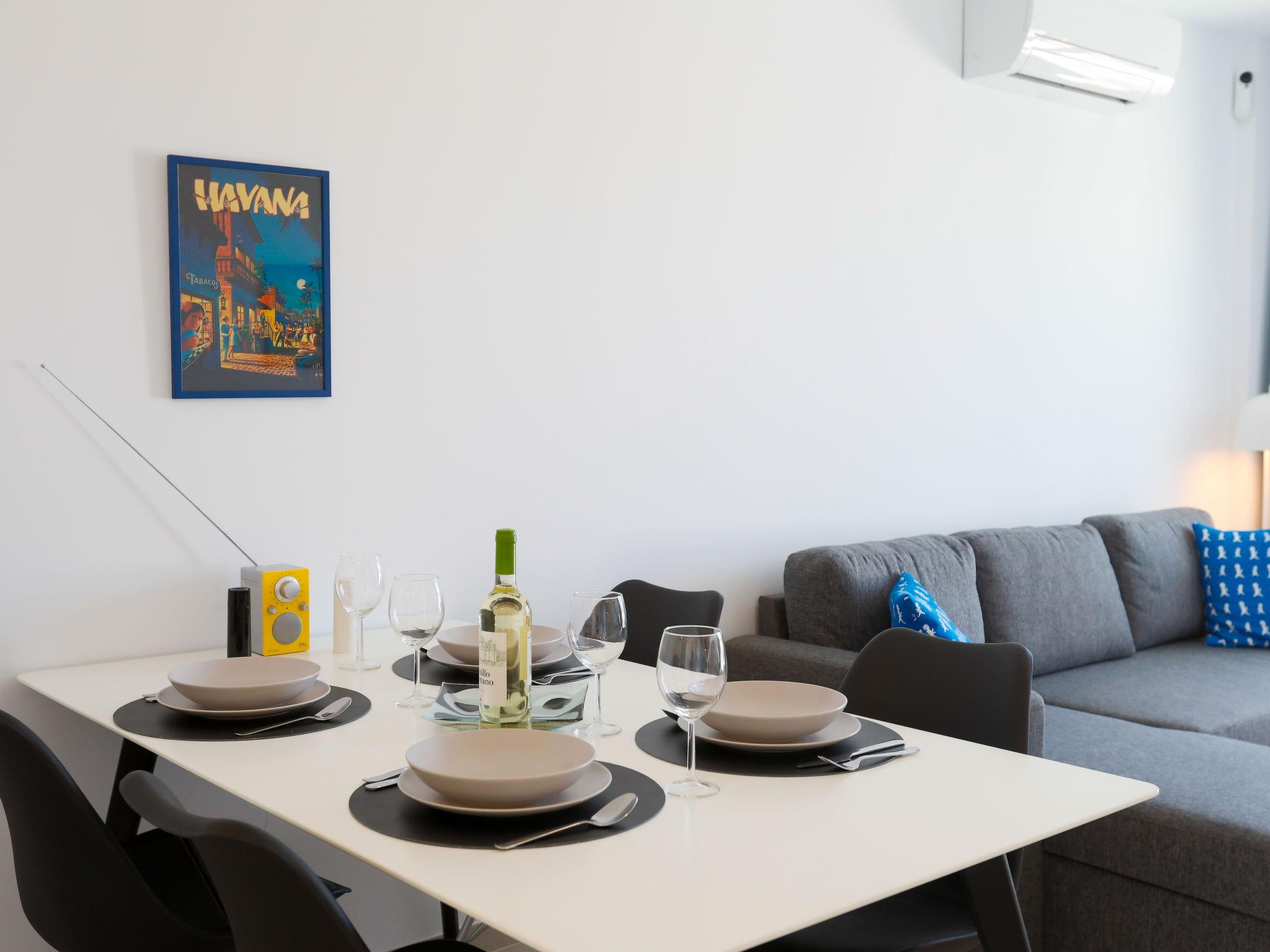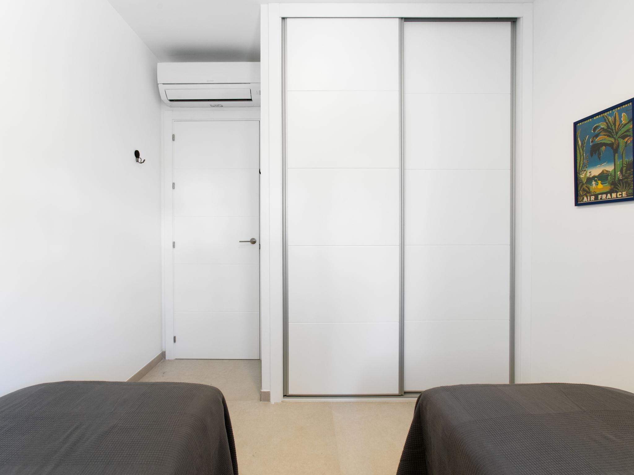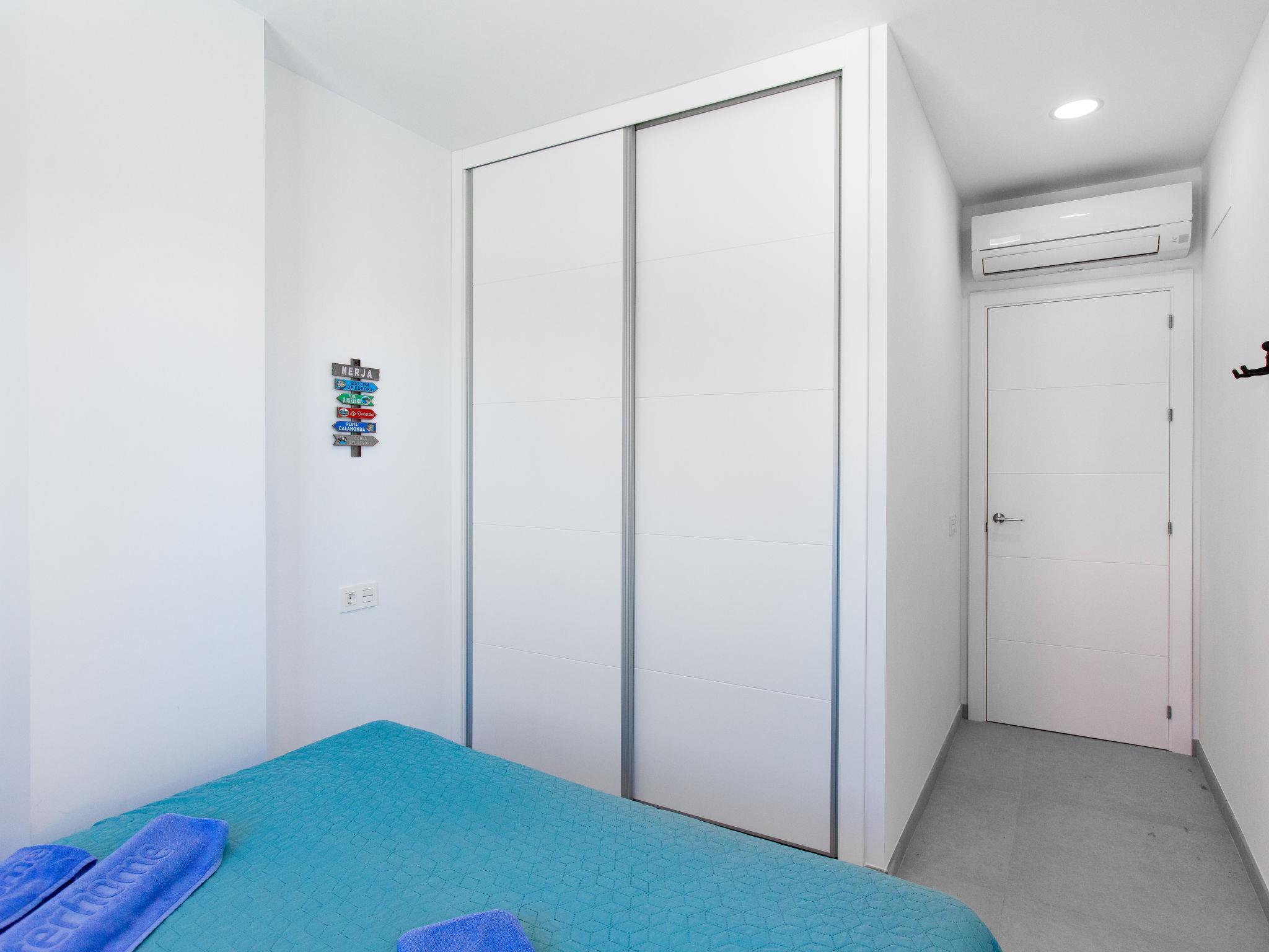 "Colina Alta", 3-room apartment 56 m2, south facing position. Bright, very practical and comfortable furnishings: living/dining room with dining table, digital TV, international TV channels, flat screen, air conditioning and forced-air heating. Exit to the terrace. 1 room with 1 french bed (160 cm, length 190 cm), air conditioning and forced-air heating. Exit to the terrace. 1 room with 2 beds (75 cm, length 190 cm), air conditioning and forced-air heating. Open kitchen (dishwasher, 3 ceramic glass hob hotplates, toaster, kettle, microwave, freezer, electric coffee machine). Shower/WC. Large terrace 12 m2. Terrace furniture, deck chairs. Marvellous view of the sea, the mountains and the swimming pool. Facilities: washing machine, iron, children's high chair, baby cot for up to 2 year olds, hair dryer. Internet (WiFi, free). Please note: smoke alarm, fire extinguisher. Smart TV, Bluetooth speaker. VUT/MA/76304 // Reg. Nr.: ESFCTU0000290130011126530000000000000000VUT/MA/763047