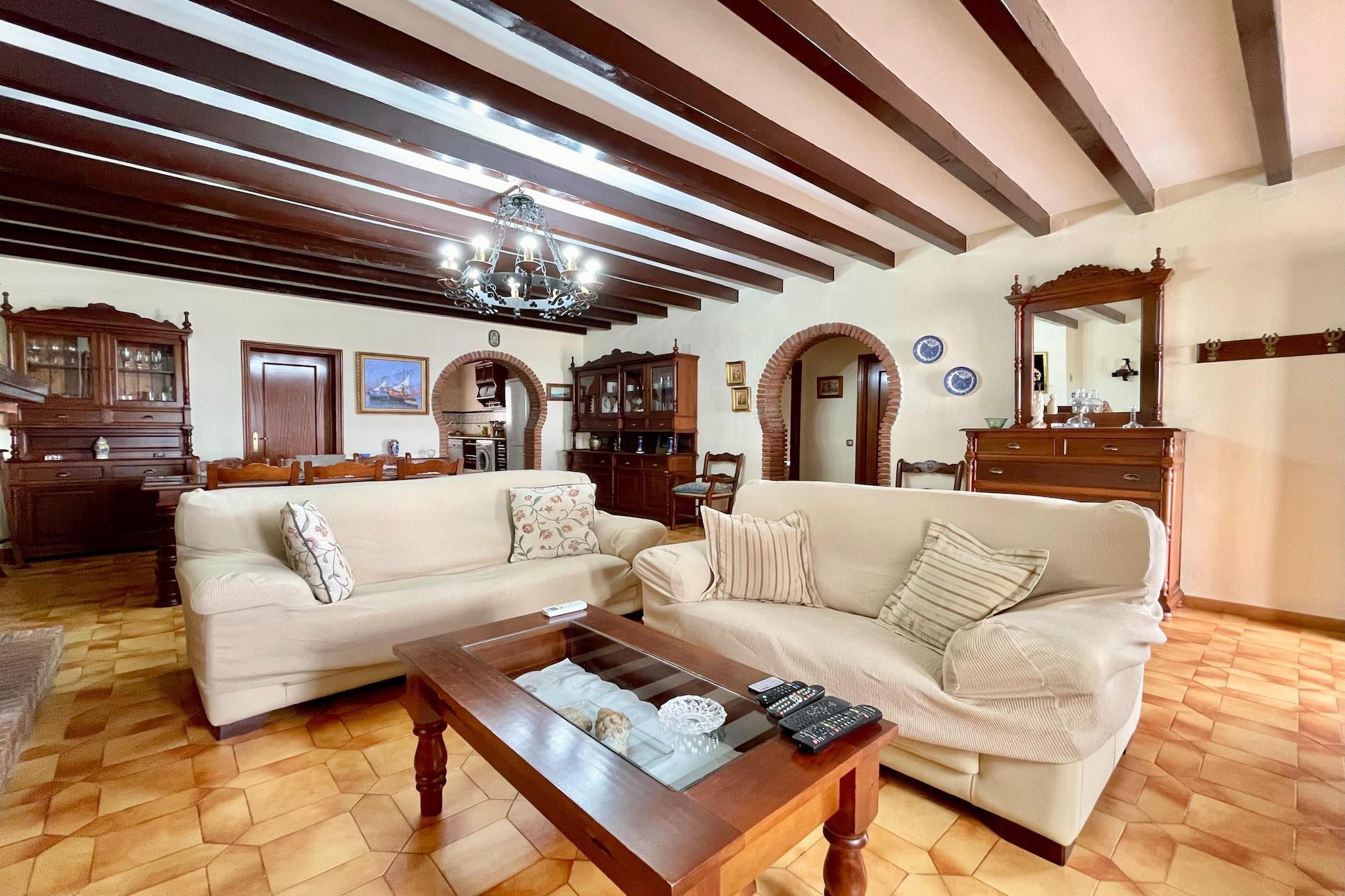 Enkelt etagers landhus, beliggende mellem havet og bjergene kun 3 km fra Maro og 7 km fra Nerja. Molino de Papel strand er 700m væk fra huset og kan nås til fods. Der er gå muligheder langs Rio de la Miel stien; også i nærområdet. Landstedet ligger i toppen af en avocado og mango gård med skønne terrasser med udsigt over havet og bjergene. Hele terrassen er omgivet af haver, med rosenbusker og mediarræer, jasmin, dama de noche og stilleben. Ejendommen er kun et stenkast væk fra de naturlige strande Cantarrijan, El Cañuelo, La Alberquilla osv. Området er ekstremt fredeligt.
