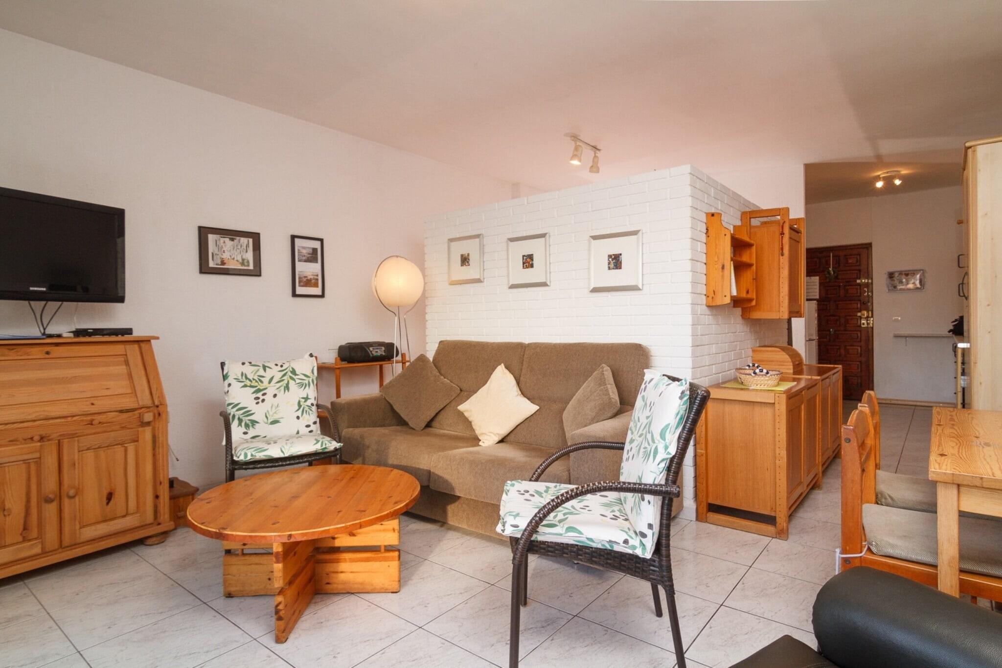 Denne charmerende studiolejlighed i Carabeo-bygningen tilbyder et hyggeligt og bekvemt tilflugtssted i hjertet af Nerja, kun 100 meter fra stranden. Studiolejligheden har plads til op til to personer og har en komfortabel dobbeltseng, et badeværelse med bruser, et fuldt udstyret køkken og en møbleret terrasse med udsigt over havet og palmerne. Klassiske træmøbler skaber en varm og hjemlig atmosfære, perfekt til et afslappende ophold. Lejligheden ligger nær Carabeillo-stranden og Balcón de Europa og er en del af et velholdt kompleks med en fælles swimmingpool og sikker, lukket parkering (afhængigt af tilgængelighed). Bygningen ligger også i et livligt, gåvenligt område tæt på restauranter, butikker og bymidten. Gæsterne kan benytte sig af aircondition, Wi-Fi, sengelinned, håndklæder og personlig indtjekningsservice. Ekstraudstyr såsom en barneseng, højstol, champagne, velkomstpakke eller lufthavnstransport kan arrangeres. Særlige rabatter på 20% ved længere ophold er tilgængelige i udvalgte perioder.