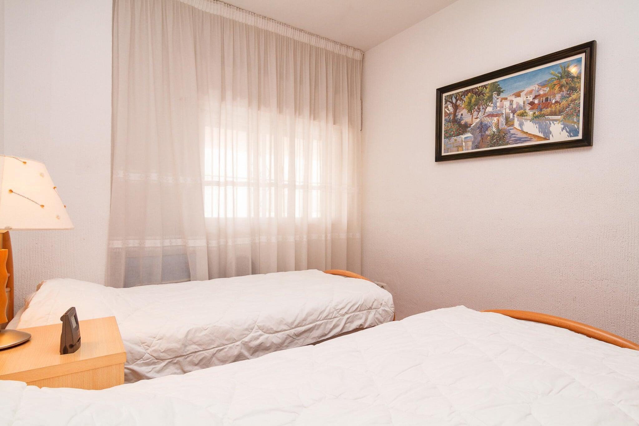 Denne lyse og fuldt udstyrede lejlighed tilbyder komfortabel indkvartering for op til fire gæster med to soveværelser - et med en dobbeltseng og det andet med to enkeltsenge. Den ligger på en øverste etage med elevatoradgang og har en privat balkon med udsigt over havet og haven. Gæsterne kan slappe af i den fælles swimmingpool eller slappe af indendørs med Wi-Fi, satellit-tv og aircondition. Lejligheden er ikke kæledyrsvenlig, men er ideel for familier eller par, der søger et roligt og afslappende ophold. Lejligheden ligger i et hyggeligt kvarter i Nerja, kun 300 meter fra sandstranden Carabeillo og en kort gåtur på 500 meter til byens centrum ved Balcón de Europa. Daglige fornødenheder klares nemt med et supermarked kun 100 meter væk. Nærliggende attraktioner omfatter lokale restauranter, butikker og kulturelle seværdigheder, med golf på Bavaria Golf kun 25 km væk. Málaga Lufthavn ligger 65 km fra ejendommen, hvilket giver god adgang for regionale og internationale rejsende. Lejligheden har et separat køkken med glaskeramisk kogeplade og er fuldt udstyret med køleskab, mikrobølgeovn, ovn, fryser, opvaskemaskine, kaffemaskine, brødrister og elkedel. To badeværelser med bruser og hårtørrer giver bekvemmelighed ved længere ophold. Der er en vaskemaskine til rådighed for gæsterne, hvilket gør dette til en praktisk mulighed for dem, der leder efter en fuldt udstyret ferielejlighed nær stranden.