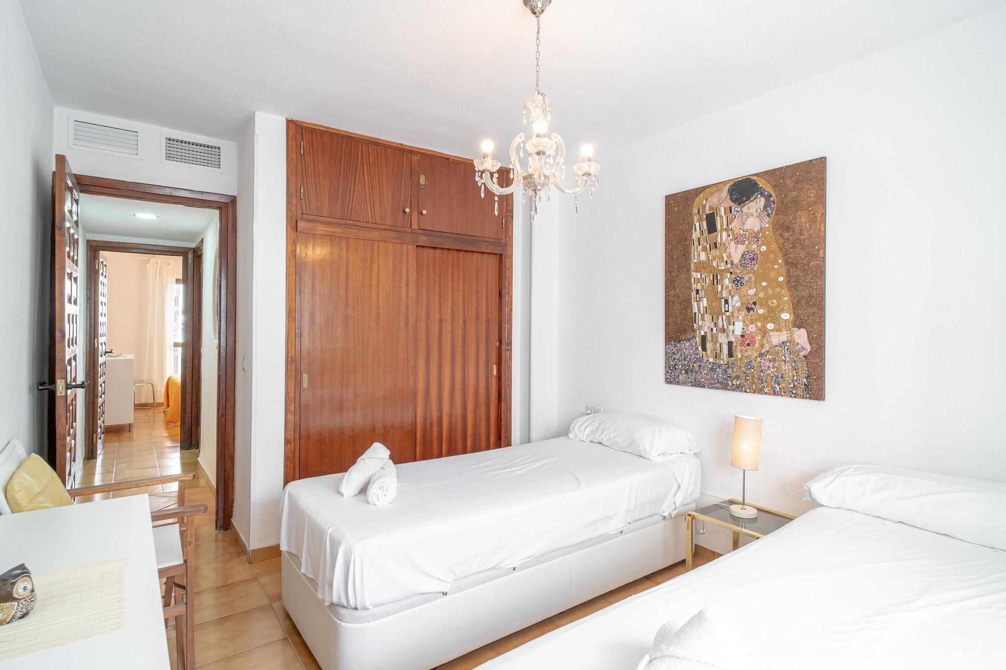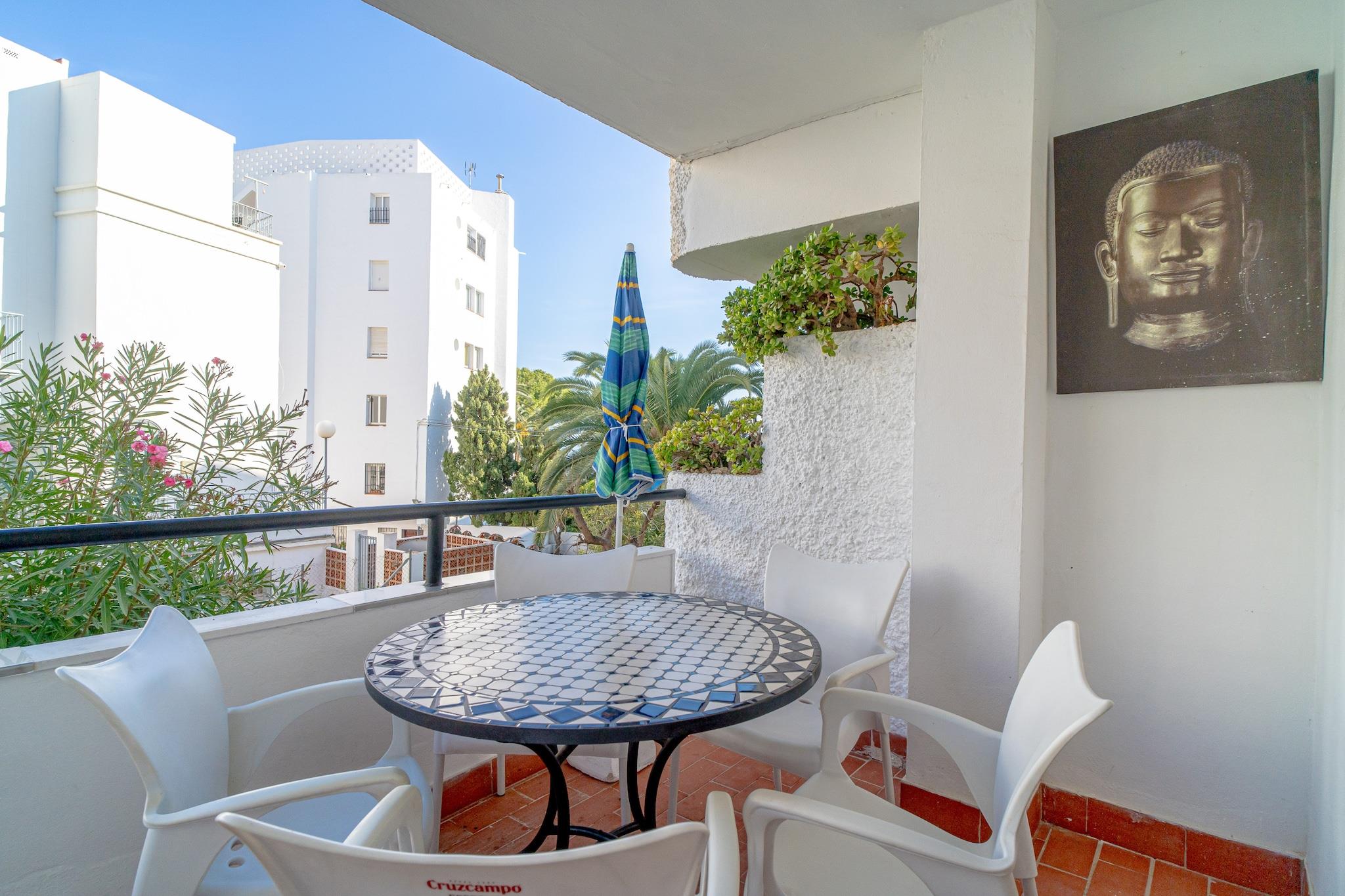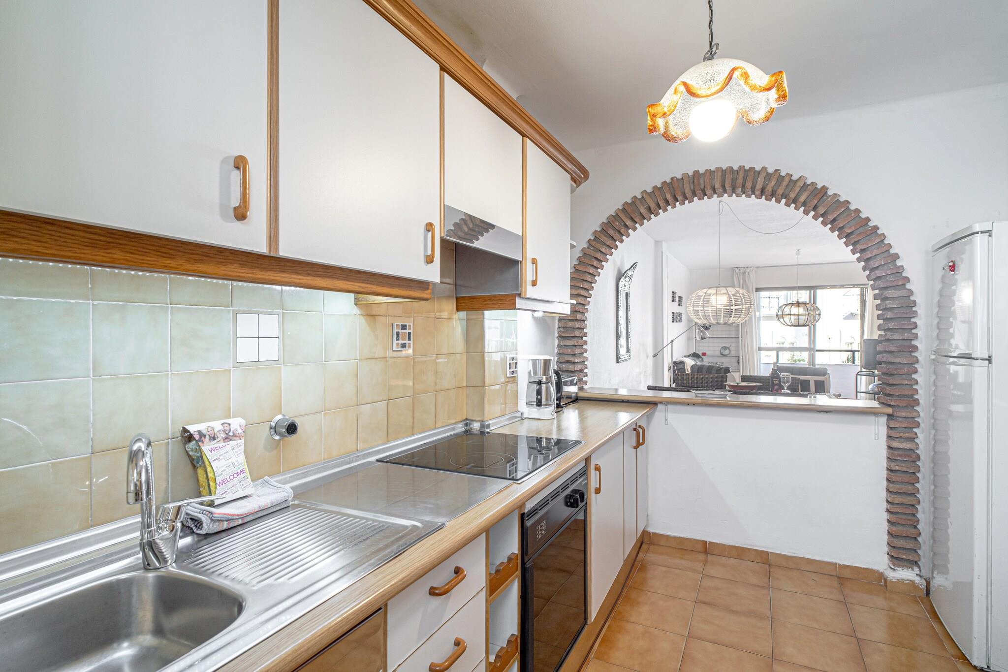 Denne smagfuldt møblerede lejlighed, lyse og komfortable, har to soveværelser – et med en dobbeltseng og det andet med to enkeltsenge – og kan komfortabelt rumme op til fire gæster. Den har en hyggelig opholdsstue med direkte adgang til en privat terrasse på 10 m² og en balkon med udsigt over haven og den fælles swimmingpool. Denne kæledyrsvenlige lejlighed byder velkommen til dyr, undtagen farlige racer, og er et fremragende valg for familier eller små grupper. Ekstraudstyr såsom en vugge, højstol eller champagneflaske kan lejes, og gratis faciliteter som aircondition, internet og sengelinned sikrer et behageligt ophold. Centralt beliggende i Nerja ligger denne lejlighed kun 200 meter fra sandstranden Torrecilla og 400 meter fra det naturskønne udsigtspunkt Balcón de Europa. En kort gåtur fører til lokale butikker, herunder Coviran-supermarkedet kun 100 meter væk, og nærliggende restauranter såsom Rincón de Encarni. Området er både familievenligt og levende med nem adgang til offentlig transport. Malaga Lufthavn, cirka 65 kilometer væk, fungerer som det nærmeste større rejseknudepunkt, hvilket gør ankomster og afgange effektive for internationale gæster. Lejligheden har også et fuldt udstyret elektrisk åbent køkken udstyret med moderne apparater, herunder køleskab, ovn, mikrobølgeovn, fryser, kaffemaskine, brødrister og elkedel. Enheden har et badeværelse med bruseniche, hårtørrer og vaskemaskine for ekstra bekvemmelighed. Gæsterne kan benytte sig af satellit-tv, elevator med trinfri adgang, varmesystem og strygejern, hvilket gør lejligheden ideel til både korte og længere ophold.