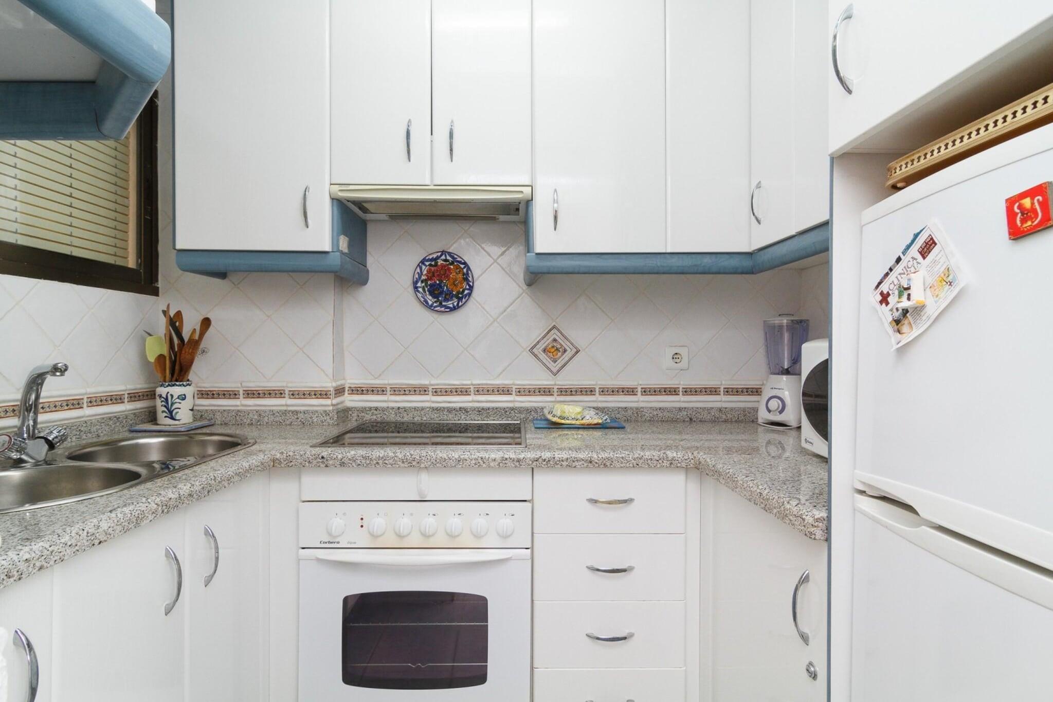 Dette unikke feriehus på øverste etage har plads til op til fire gæster med to soveværelser – det ene med en dobbeltseng adskilt fra opholdsstuen med en skærmvæg, og det andet med to enkeltsenge. Lejligheden er ikke kæledyrsvenlig, men tilbyder højhastighedsinternet, internationale tv-kanaler, aircondition og en fantastisk havudsigt fra flere udsigtspunkter. Selvom der ikke er organiserede fritidsaktiviteter inkluderet, giver nærheden til stranden og de naturskønne omgivelser rigelig mulighed for afslapning og nydelse. Lejligheden er perfekt beliggende kun 50 meter fra Carabeillo-stranden og har udsigt over den populære Burriana-strand. Kun en kort gåtur væk ligger Balcón de Europa, et centralt udsigtspunkt i Nerja kendt for sine charmerende gader og pulserende spisesteder. En række restauranter, caféer og lokale butikker ligger inden for rækkevidde, og transportforbindelser såsom den lokale busforbindelse og nærliggende lufthavnstransport gør beliggenheden bekvem til både korte og længere ophold. Indenfor har lejligheden et fuldt udstyret separat køkken med gaskomfur, ovn, køleskab, mikrobølgeovn, fryser og essentielle redskaber. Yderligere bekvemmeligheder inkluderer kaffemaskine, brødrister, elkedel og vaskemaskine. Badeværelset har badekar og hårtørrer, mens en privat terrasse og elevatoradgang yderligere forbedrer komforten i dette 90 m² store kystnære tilflugtssted.