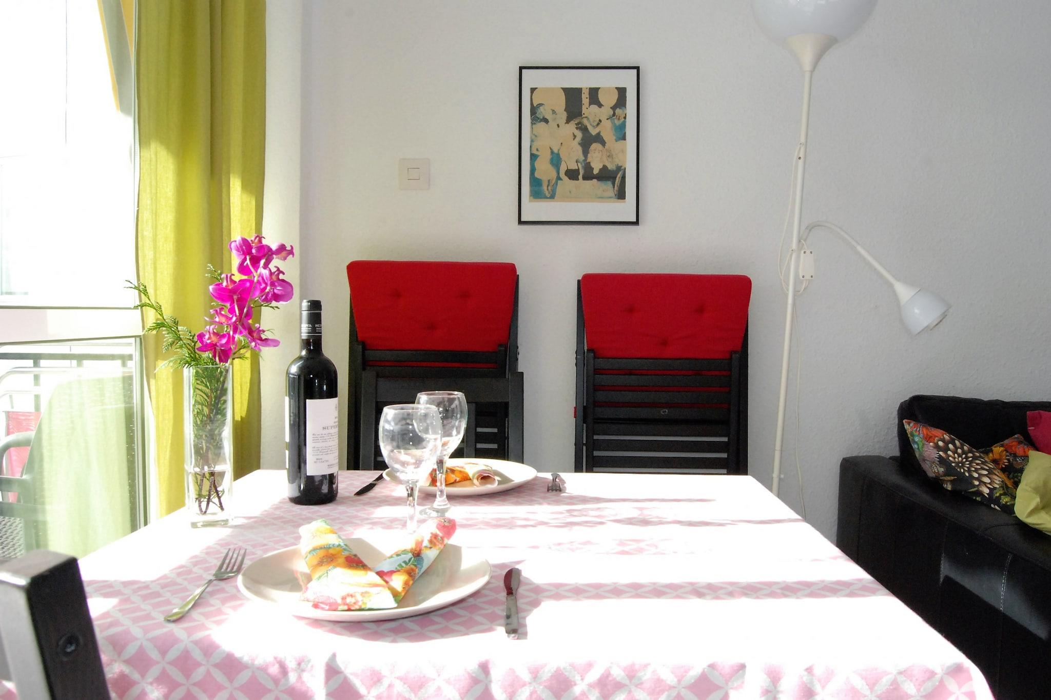På 3. etage: (Køkken(elkedel, brødrister, kaffemaskine, ovn, mikrobølgeovn, køleskab, fryser, ), stue / spisestue(enkeltsovesofa, enkeltsovesofa, Fjernsyn, spisebord, sofahjørne), soveværelse(dobbeltseng), badeværelse(bruser), Internetadgang) , Børne swimmingpool, vaskemaskine, balkon, klimaanlæg, swimmingpool(deles med andre gæster), føntørrer