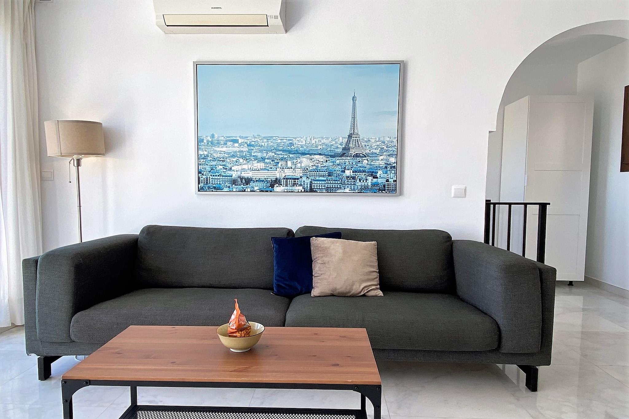 Dette smukke, delvist fritliggende feriehus tilbyder to komfortable soveværelser med plads til op til fire gæster, fordelt på en dobbeltseng og to enkeltsenge. Det er ikke kæledyrsvenligt, hvilket sikrer et rent og allergenfrit miljø. Gæsterne kan nyde et roligt ophold med adgang til en fælles swimmingpool, begrænset til i alt tre enheder. Villaen har en privat terrasse med smuk udsigt over havet og poolen og inkluderer et 55-tommer Smart-tv med internationale kanaler, et pengeskab, aircondition og madrasser af høj kvalitet. Valgfrie ting som en barneseng eller højstol kan lejes for ekstra bekvemmelighed. Denne ejendom er ideelt beliggende kun 500 meter fra Burriana-stranden, den mest populære og livlige strand i Nerja. Området er kendt for sine restauranter ved stranden, caféer og pulserende atmosfære, alt sammen inden for gåafstand. Nerjas centrum med sine charmerende gader, lokale markeder og den berømte Balcón de Europa ligger også i nærheden. Offentlig transport og taxaer er let tilgængelige, og Malaga Lufthavn kan nås på under en time i bil, hvilket gør dette til en fremragende base for at udforske Costa del Sol. Villaens fuldt udstyrede køkken har opvaskemaskine, ovn, Nespresso-kaffemaskine og et komplet udvalg af køkkenredskaber. Gæsterne kan også drage fordel af et moderne badeværelse med bruser samt vaskemaskine og hårtørrer for ekstra komfort. Med højhastighedsinternet, sikker parkering i nærheden og en imødekommende vært til personlig indtjekning tilbyder ejendommen alt, hvad der er nødvendigt for et stressfrit og behageligt ophold.