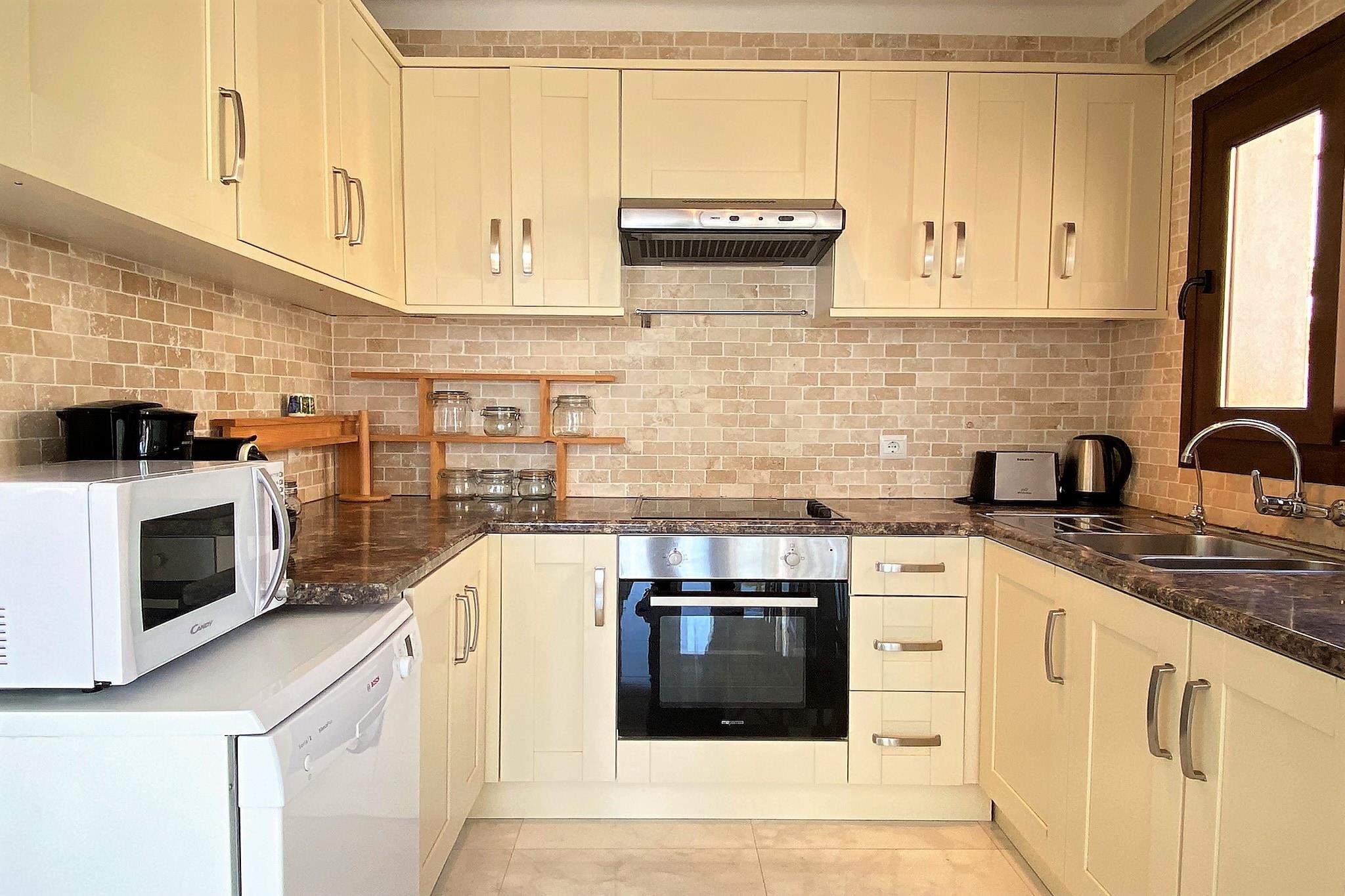 Stue(Fjernsyn), Køkken(elkedel, brødrister, kaffemaskine, ovn, mikrobølgeovn, opvaskemaskine , køleskab, fryser, ()), soveværelse(enkeltseng, enkeltseng), soveværelse(dobbeltseng), badeværelse(bruser), Internetadgang, Havemøbler, vaskemaskine, balkon, terrasse, have, grill, swimmingpool(deles med andre gæster), strygejern, føntørrer