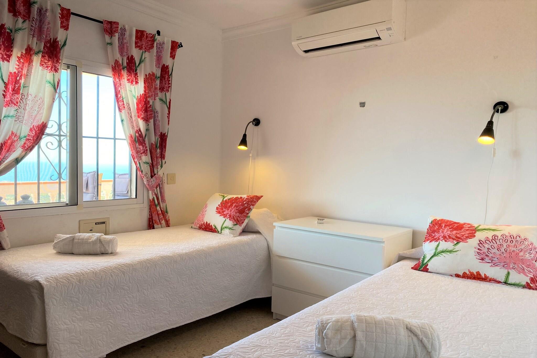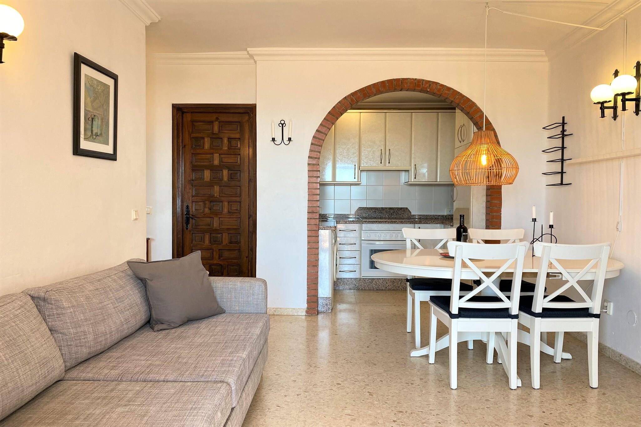 Denne charmerende ferielejlighed med betagende udsigt er ideel til op til fire gæster. Den har en dobbeltseng og to enkeltsenge, perfekt til familier eller små grupper. Den sydvendte terrasse tilbyder panoramaudsigt over havet og bjergene. Lejligheden er ikke-ryger og kæledyrsvenlig. Gæsterne har adgang til en stor fælles pool med børneområde, og valgfrie ekstrafunktioner såsom en barneseng, højstol og en velkomstpakke kan arrangeres for ekstra bekvemmelighed. Denne ejendom ligger i den naturskønne urbanisering San Juan de Capistrano i Nerja og tilbyder et roligt tilflugtssted, samtidig med at den er tæt på vigtige attraktioner. Burriana-stranden ligger kun 1,8 km væk, og byens centrum ligger omkring 4 km væk. En nærliggende buslinje forbinder området med stranden og det centrale Nerja, hvilket gør det nemt at udforske. Inden for 200 meter fra lejligheden finder gæsterne et lokalt supermarked samt et udvalg af restauranter og caféer, der tilbyder alt fra tapas til komplette måltider med havudsigt. Lejligheden har også et fuldt udstyret køkken med opvaskemaskine, ovn og essentielle redskaber til hjemmelavede måltider. Et moderne badeværelse med bruser, højhastighedsinternet, internationale tv-kanaler og aircondition øger komforten. Der tilbydes personlig indtjekning ved ankomst, og lufthavnstransport kan arrangeres efter anmodning. Selvom lejligheden ikke er egnet til gæster med nedsat mobilitet, tilbyder den en fredelig og naturskøn ferieoplevelse.