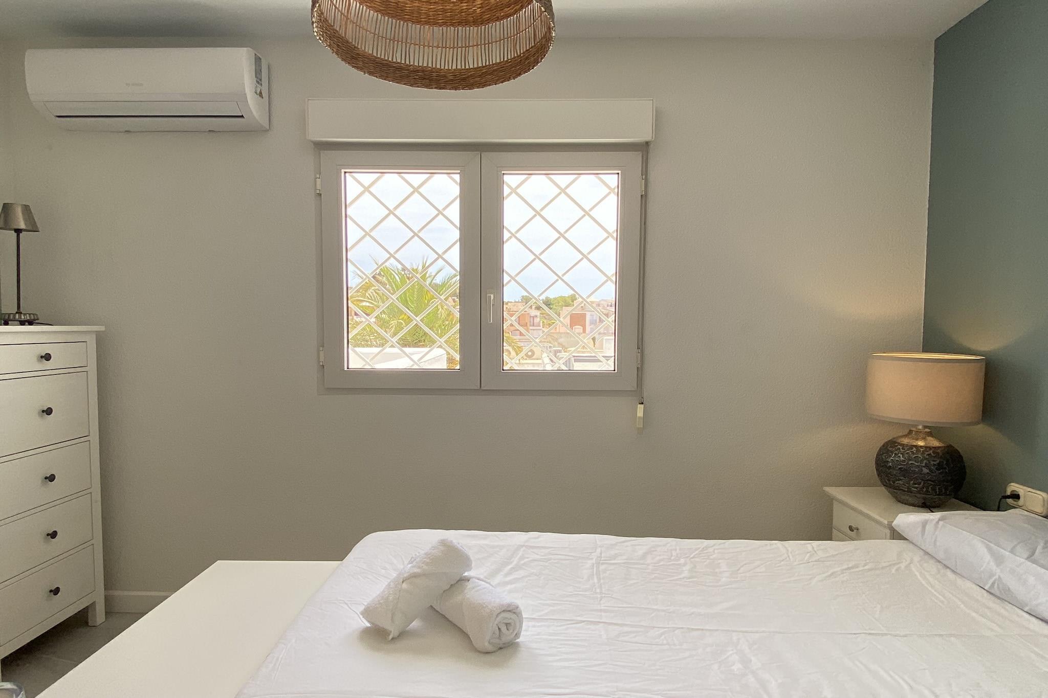 Denne rummelige og stilfulde villa med 3 soveværelser ligger i et fredeligt område af Nerja og tilbyder en fantastisk udsigt over havet og bjergene. Villaen er perfekt til familier eller små grupper og har to private terrasser udstyret med loungemøbler, liggestole og en grill, hvor man kan nyde den middelhavske livsstil. Med et moderne design og møbler af høj kvalitet kan ejendommen også prale af aircondition overalt, højhastighedsinternet og et fuldt udstyret køkken med opvaskemaskine. Gæsterne har adgang til en fælles pool, der kun bruges af seks andre boliger, hvilket sikrer en afslappet og rolig atmosfære. Burriana-stranden - Nerjas mest populære - ligger kun 900 meter væk, mens et stort Mercadona-supermarked ligger bekvemt placeret kun 200 meter fra ejendommen. Der er nem gadeparkering i området, og valgfri lufthavnstransport og velkomstpakker kan arrangeres for en problemfri ankomst. Villaen har to badeværelser med bruser og tre soveværelser - to med to enkeltsenge og et med en køjeseng - med plads til op til seks personer. Der tilbydes personlig indtjekningsservice, hvor en vært vil byde dig velkommen ved ejendommen og introducere dig til dens mange funktioner. Dette hjem er ideelt for familier, der søger komfort, ro og tæt på stranden og lokale faciliteter i Nerja.