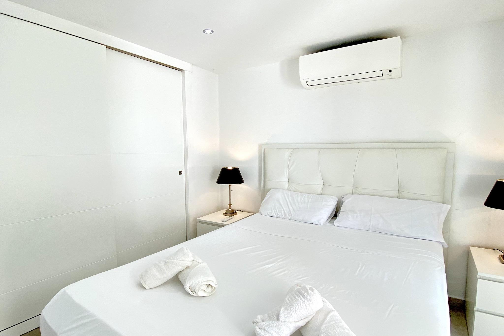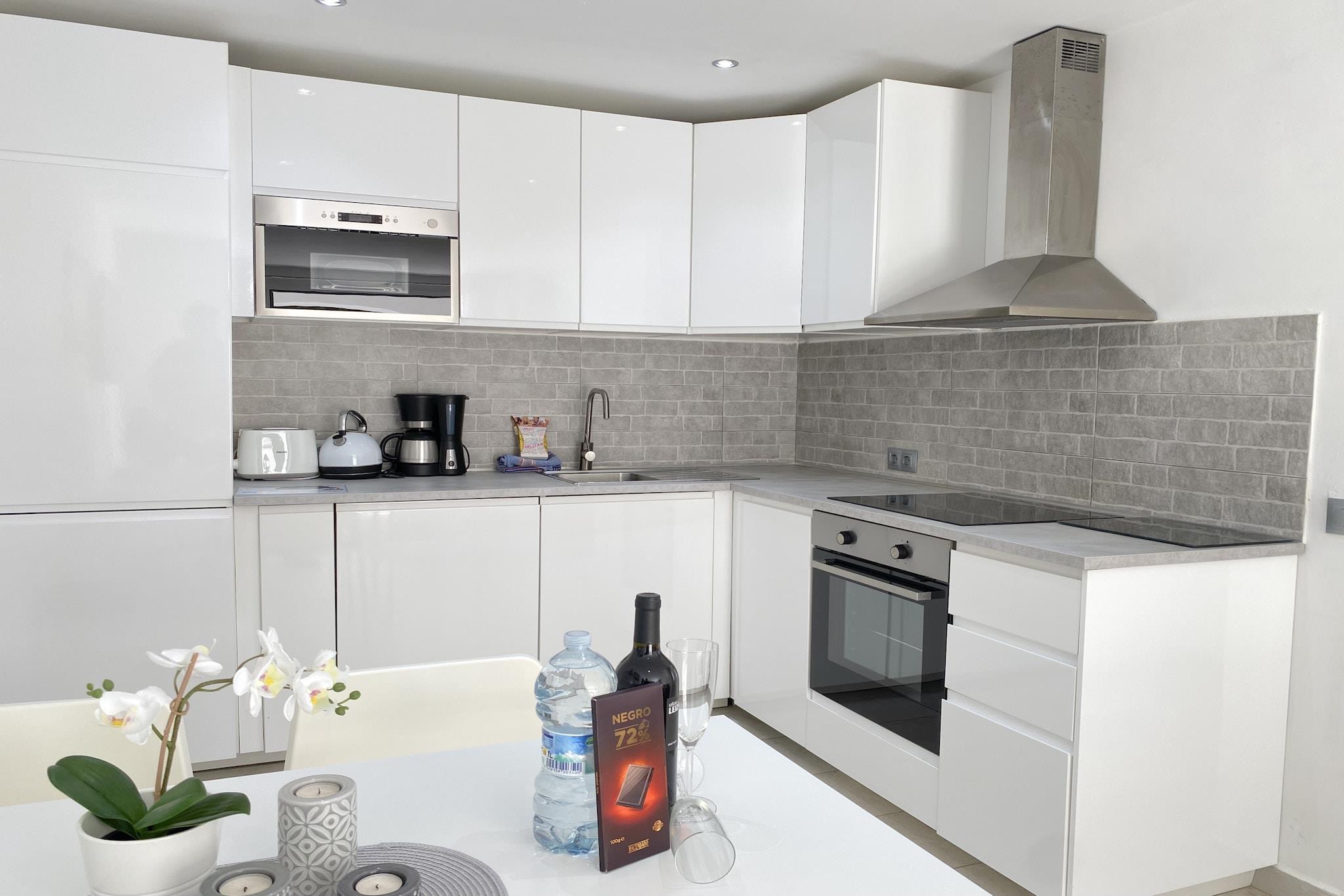 Åbent køkken(elkedel, brødrister, kaffemaskine, ovn, mikrobølgeovn, opvaskemaskine , køleskab, fryser), stue / spisestue(Fjernsyn, spisebord, sofahjørne), soveværelse(enkeltseng, enkeltseng), soveværelse(dobbeltseng), badeværelse(bruser), Internetadgang, Børne swimmingpool, vaskemaskine, klimaanlæg, strygejern, føntørrer, Wine glasses