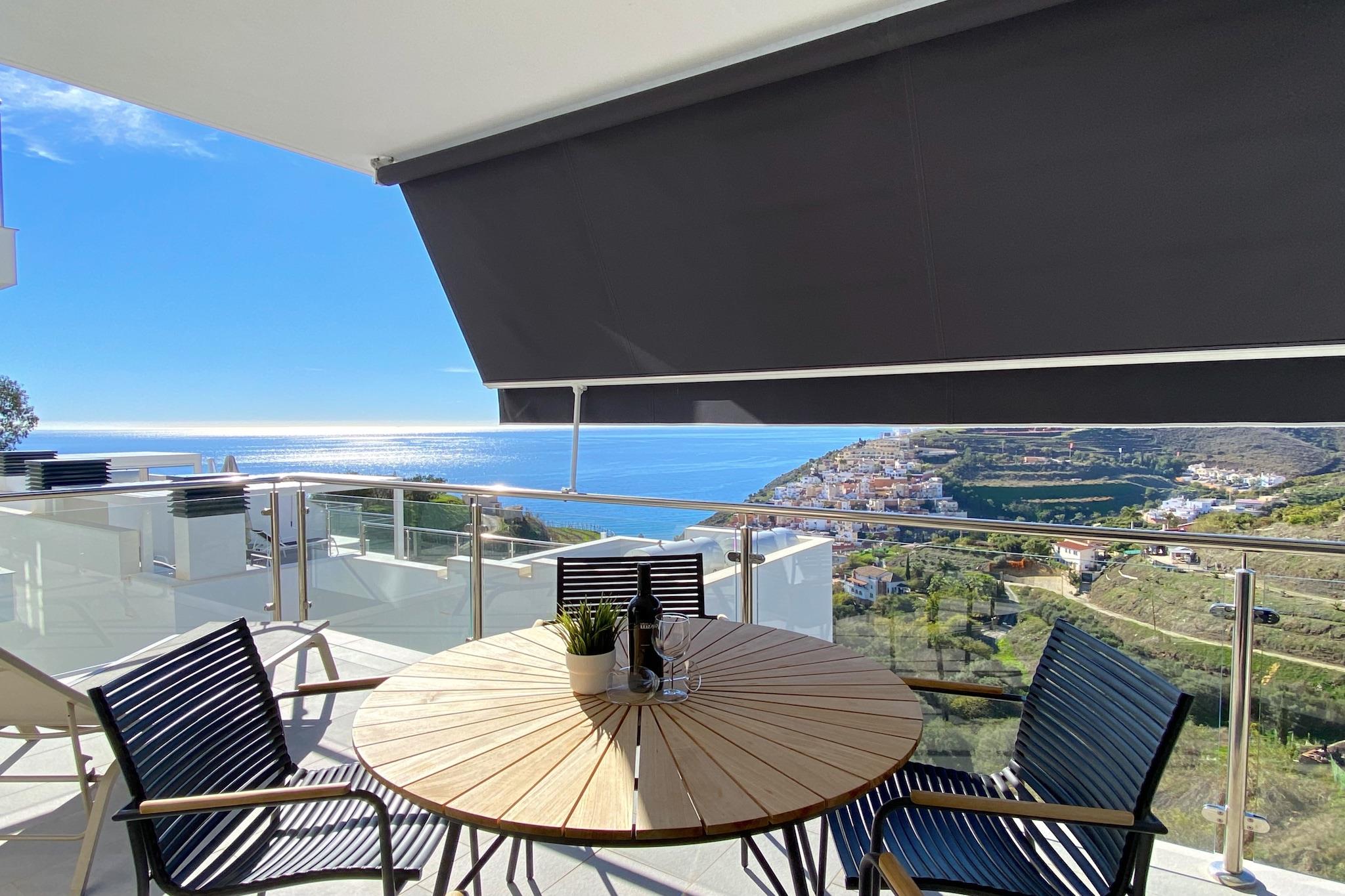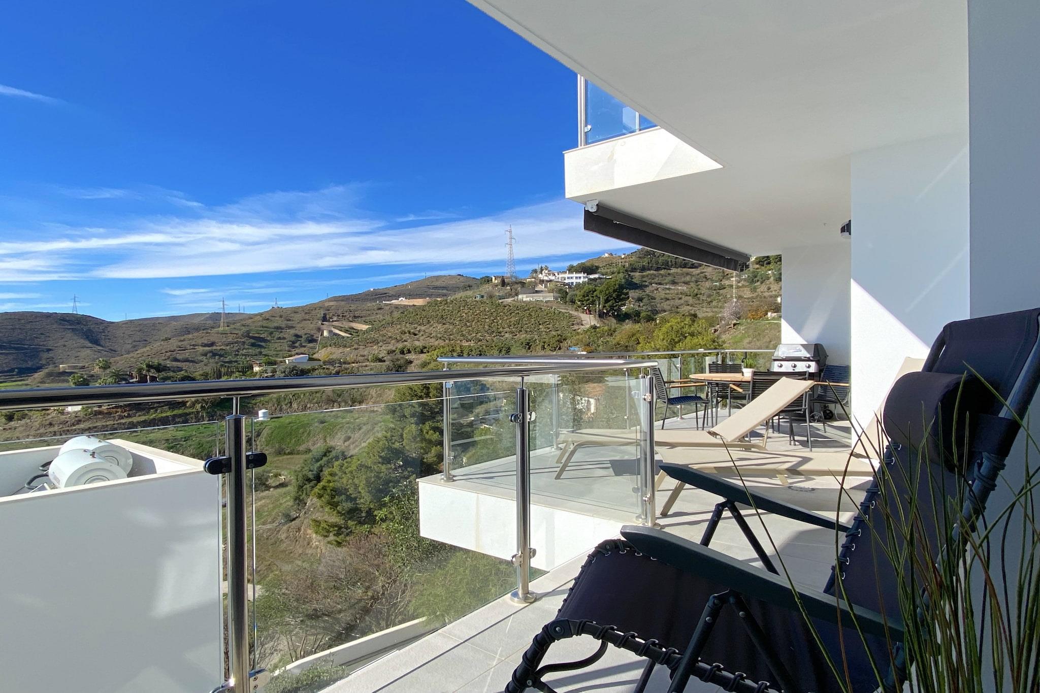 Dette moderne feriehus tilbyder et roligt kystnært tilflugtssted med to soveværelser med havudsigt, begge med en dobbeltseng, og plads til op til fire gæster. Det inkluderer to badeværelser med brusere og en rummelig privat terrasse udstyret med liggestole og en grill, perfekt til at nyde udsigten over Middelhavet. Ejendommen er ikke kæledyrsvenlig og har ikke en sovesofa. Gæster har også adgang til en luksuriøs fælles pool, et fitnesscenter, der er åbent året rundt, og overdækket privat parkering. Ingen gratis aktiviteter er eksplicit nævnt. Lejligheden ligger i det nyudviklede Balcón del Mar-kompleks og har en førsteklasses beliggenhed mellem Torrox Costa og Nerja på Málagas østkyst. Kun 1,2 km fra stranden tilbyder den nem adgang til begge byers strande, restauranter og butikker. Selvom offentlig transport er tilgængelig, anbefales en lejebil for fleksibel udforskning. Málaga Lufthavn er det nærmeste store rejseknudepunkt, ideelt for internationale og indenlandske ankomster. Lejligheden har et fuldt udstyret køkken med avancerede apparater såsom ovn, induktionskogeplade, opvaskemaskine og mikrobølgeovn. Yderligere bekvemmeligheder inkluderer højhastighedsinternet, aircondition og flersprogede tv-kanaler (engelsk, spansk, svensk). Gæsterne kan også drage fordel af personlig indtjekningsservice, valgfri lufthavnstransport og ekstra faciliteter som en velkomstpakke, leje af babyudstyr og premium-tilbehør for en skræddersyet ferieoplevelse.