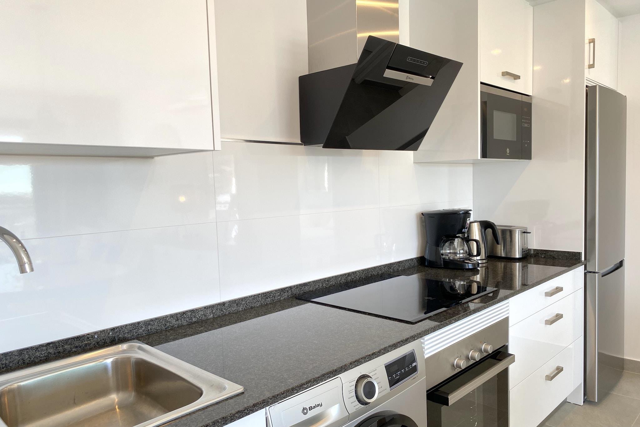 Åbent køkken(elkedel, brødrister, kaffemaskine, ovn, mikrobølgeovn, opvaskemaskine , køleskab, fryser, ), stue / spisestue(Fjernsyn, spisebord, sofahjørne), soveværelse(dobbeltseng), soveværelse(dobbeltseng), badeværelse(bruser), badeværelse(bruser), fitnessrum, garage, Internetadgang, vaskemaskine, balkon, klimaanlæg, terrasse, grill, swimmingpool(deles med andre gæster), strygejern, føntørrer, Alarm, Wine glasses