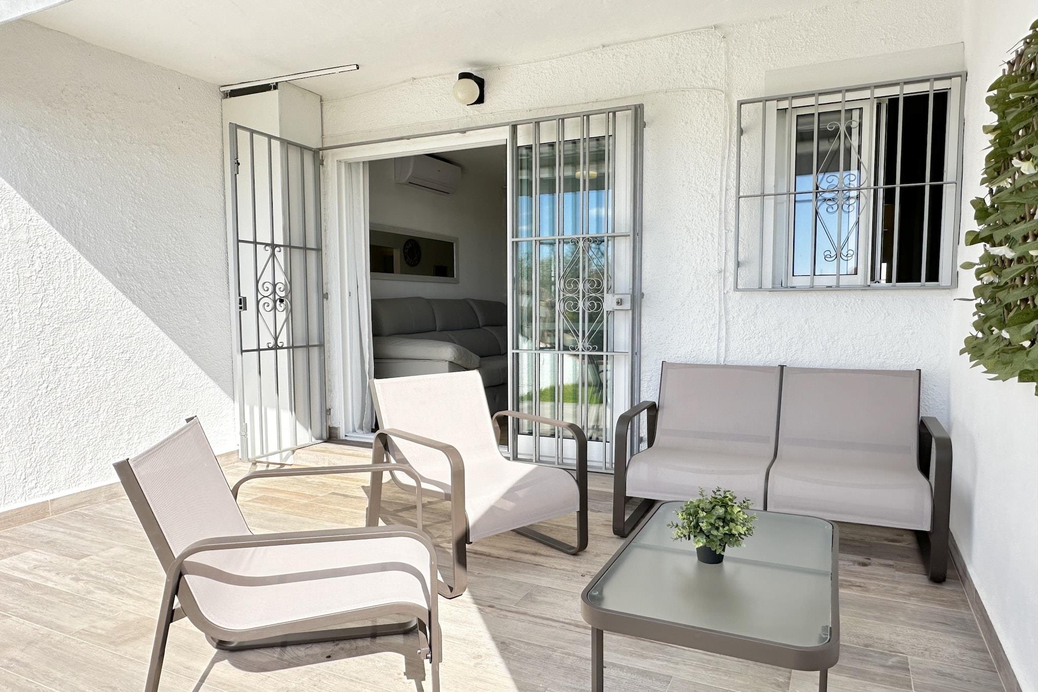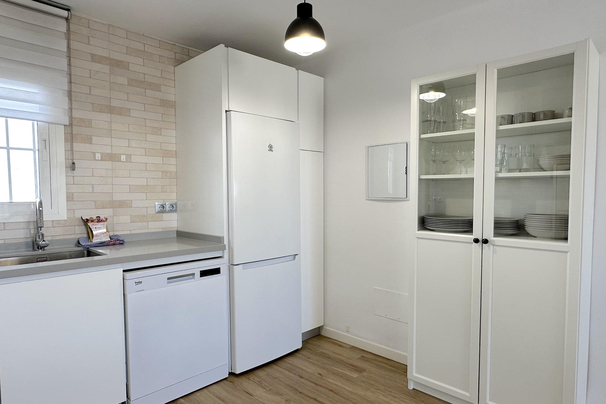 En rolig lejlighed tilbyder et afslappende ophold med to komfortable soveværelser - det ene med en queensize-seng og det andet med to enkeltsenge - egnet til op til fire gæster. Ejendommen er ideel til familier eller par og har aircondition, et stilfuldt badeværelse og en rummelig sydvendt privat have med liggestole. Selvom kæledyr ikke er tilladt, kan gæsterne vælge ekstra faciliteter som lufthavnstransport eller en velkomstpakke ved ankomst. Lejligheden har også adgang til en velholdt fælles pool og tennisbane, hvilket gør den til et fredeligt, men aktivt feriemiljø. Lejligheden ligger i det rolige boligområde La Noria, lige uden for Nerjas centrum, og er godt placeret til både afslapning og udforskning. Et nærliggende busstoppested giver adgang til det centrale Nerja, mens en kort køretur bringer dig til byens strande og attraktioner. Området er kendt for sin rolige charme og nemme adgang til lokale faciliteter. Rigelig gratis parkering gør denne beliggenhed særligt bekvem for gæster, der rejser i bil. Dette komfortable hjem er udstyret med et moderne, fuldt udstyret køkken, der inkluderer avancerede apparater, en opvaskemaskine og en vaskemaskine, der også fungerer som tørretumbler. Gæsterne kan nyde godt af højhastighedsinternet, et 65-tommer smart-tv til streaming af underholdning og essentielle husholdningsartikler såsom håndklæder, sengelinned og hårtørrer. En personlig indtjekningsservice sikrer en problemfri ankomstoplevelse.