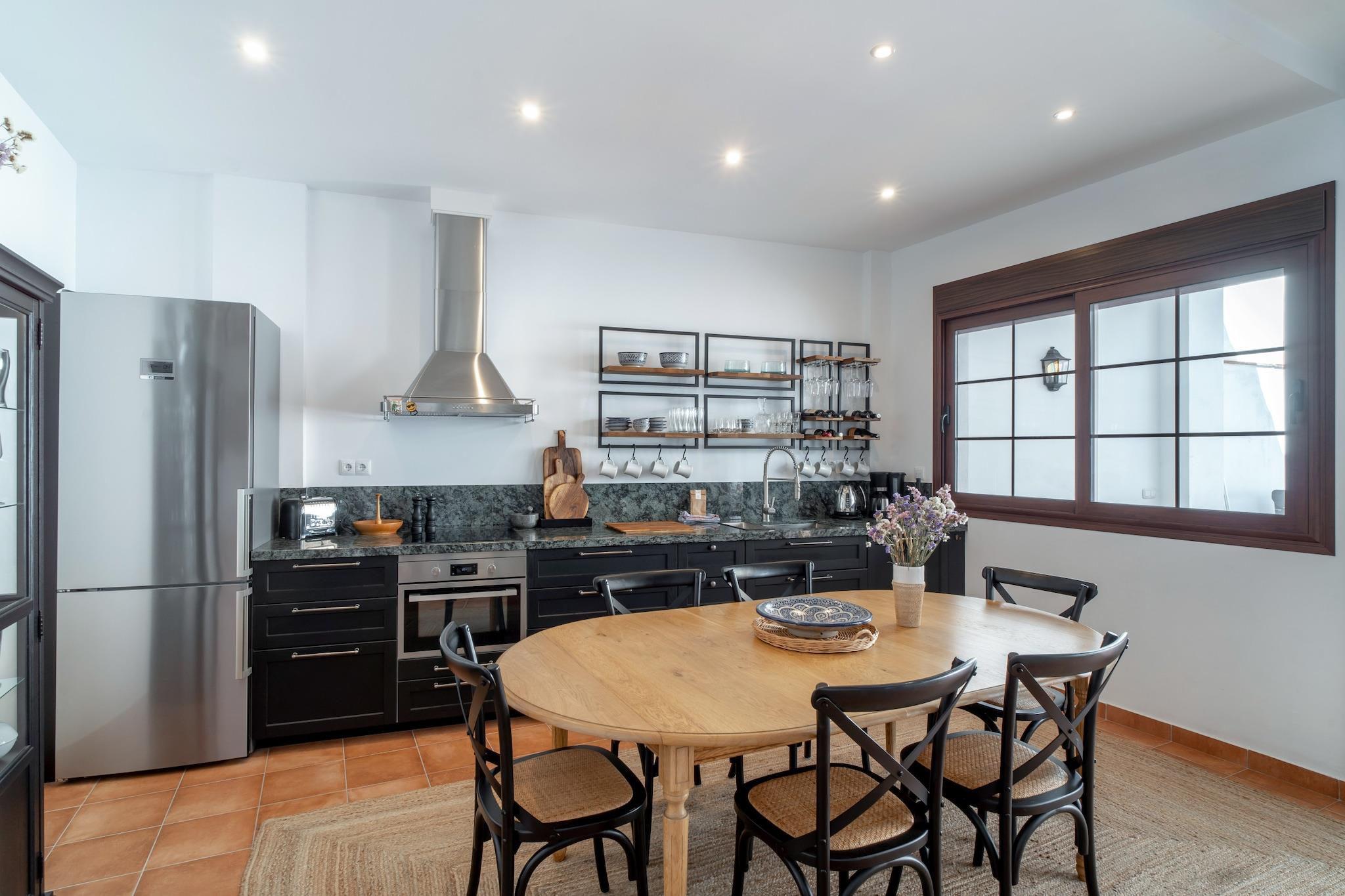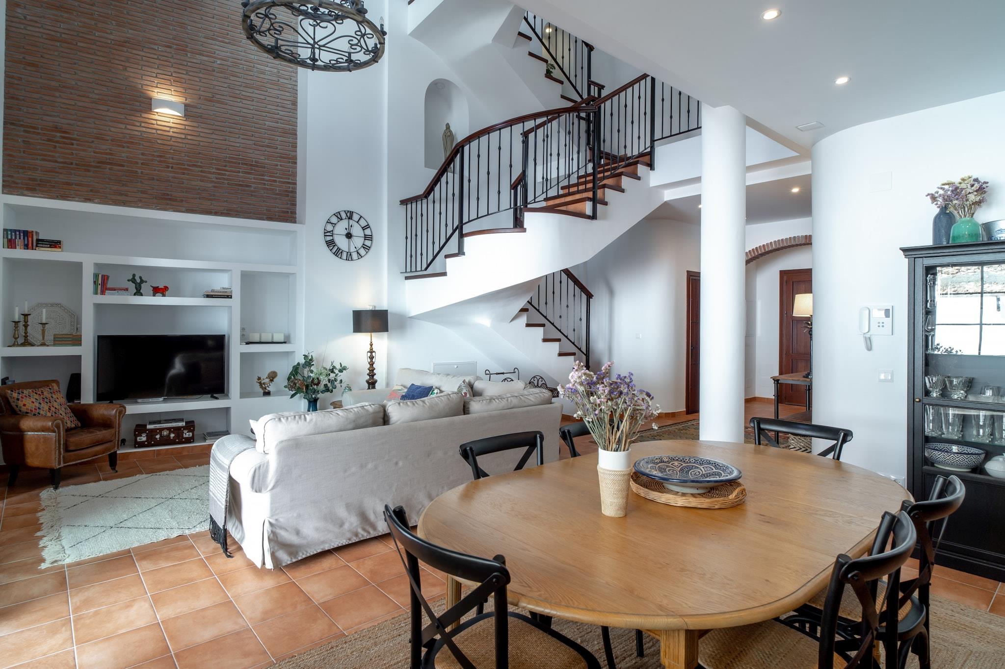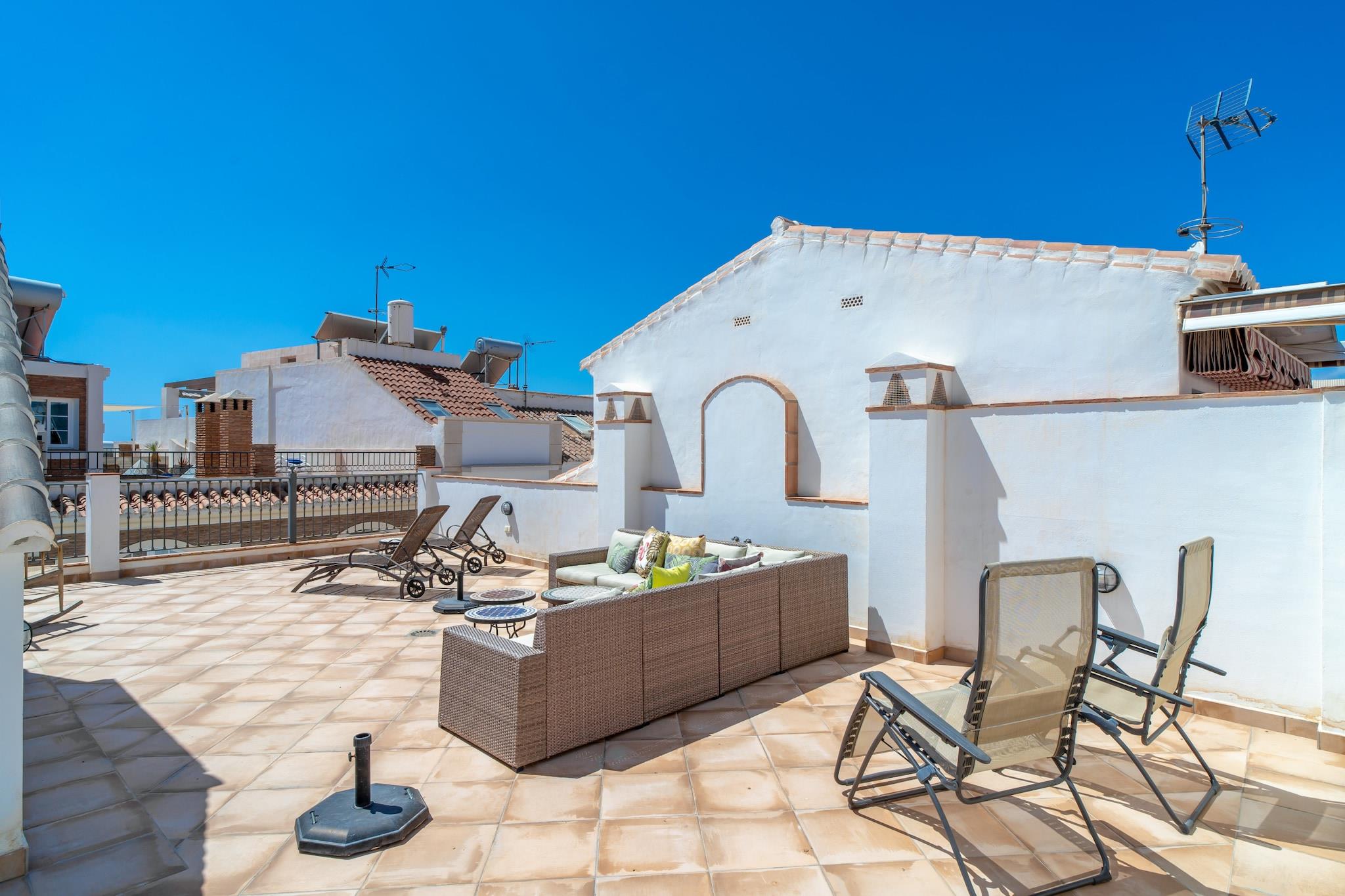 Dette smukt designede hus med 4 soveværelser tilbyder en perfekt blanding af moderne komfort og traditionel andalusisk charme. Ejendommen er rummelig og kan rumme op til 8 gæster, hvilket gør den ideel til store familier eller grupper. Den har en kingsize-seng, en dobbeltseng og to soveværelser med enkeltsenge, der kan kombineres til dobbeltsenge. Huset kan også prale af aircondition, højhastighedsinternet og et stort tv, der sikrer komfort under hele dit ophold. Nøglefaciliteterne inkluderer en privat pool, en privat garage og en tagterrasse med panoramaudsigt over havet og bjergene. Beliggende i hjertet af Nerja tilbyder ejendommen nem adgang til byens centrum, lokale strande, butikker, restauranter og supermarkeder. Det er en kort 450 meter gåtur til sandstranden, mens det travle centrum tilbyder en række spise- og shoppingmuligheder. Gæsterne kan også udforske byens ikoniske attraktioner, såsom Balcón de Europa. Offentlig transport er let tilgængelig, hvilket giver mulighed for bekvem transport rundt i området. For dem, der ankommer i bil, inkluderer ejendommen en garage til ét køretøj, med yderligere parkering i nærheden. Huset har adskillige eksklusive faciliteter for at forbedre dit ophold. Stueetagen indeholder en åben stue med et fuldt udstyret køkken og moderne apparater, herunder en mikrobølgeovn og varmluftovn. Ejendommen tilbyder også et vaskerum, en afslappende terrasse med en privat pool og et grillområde.