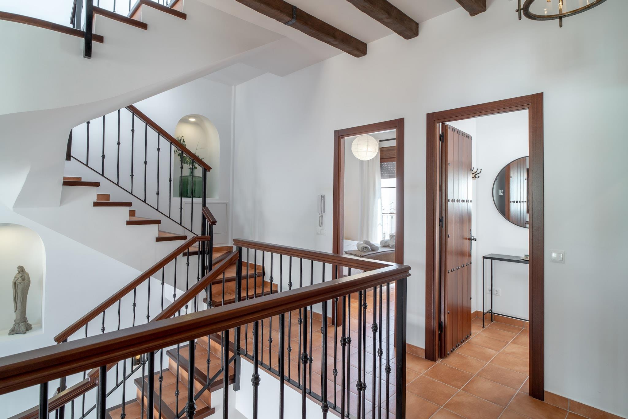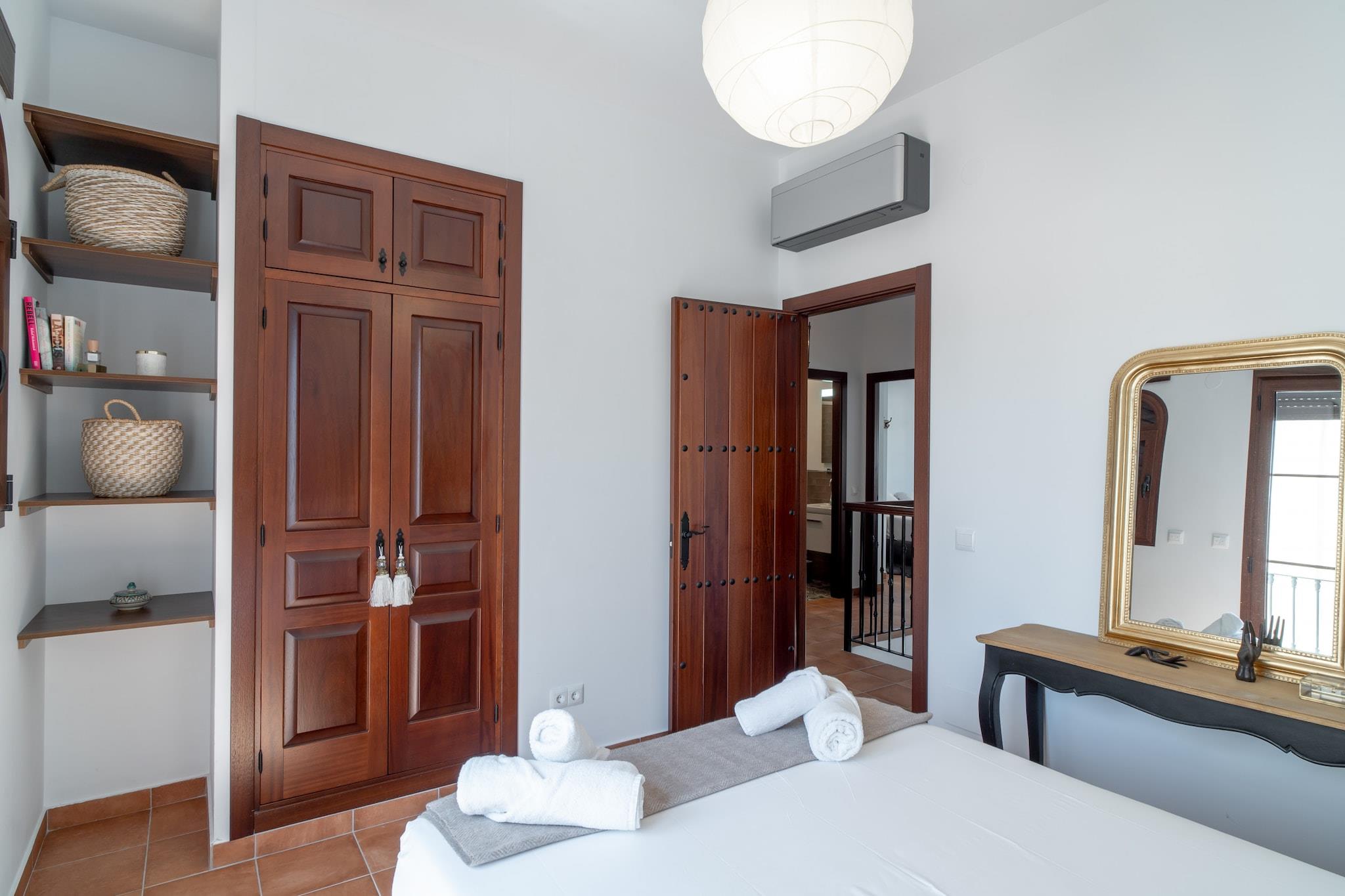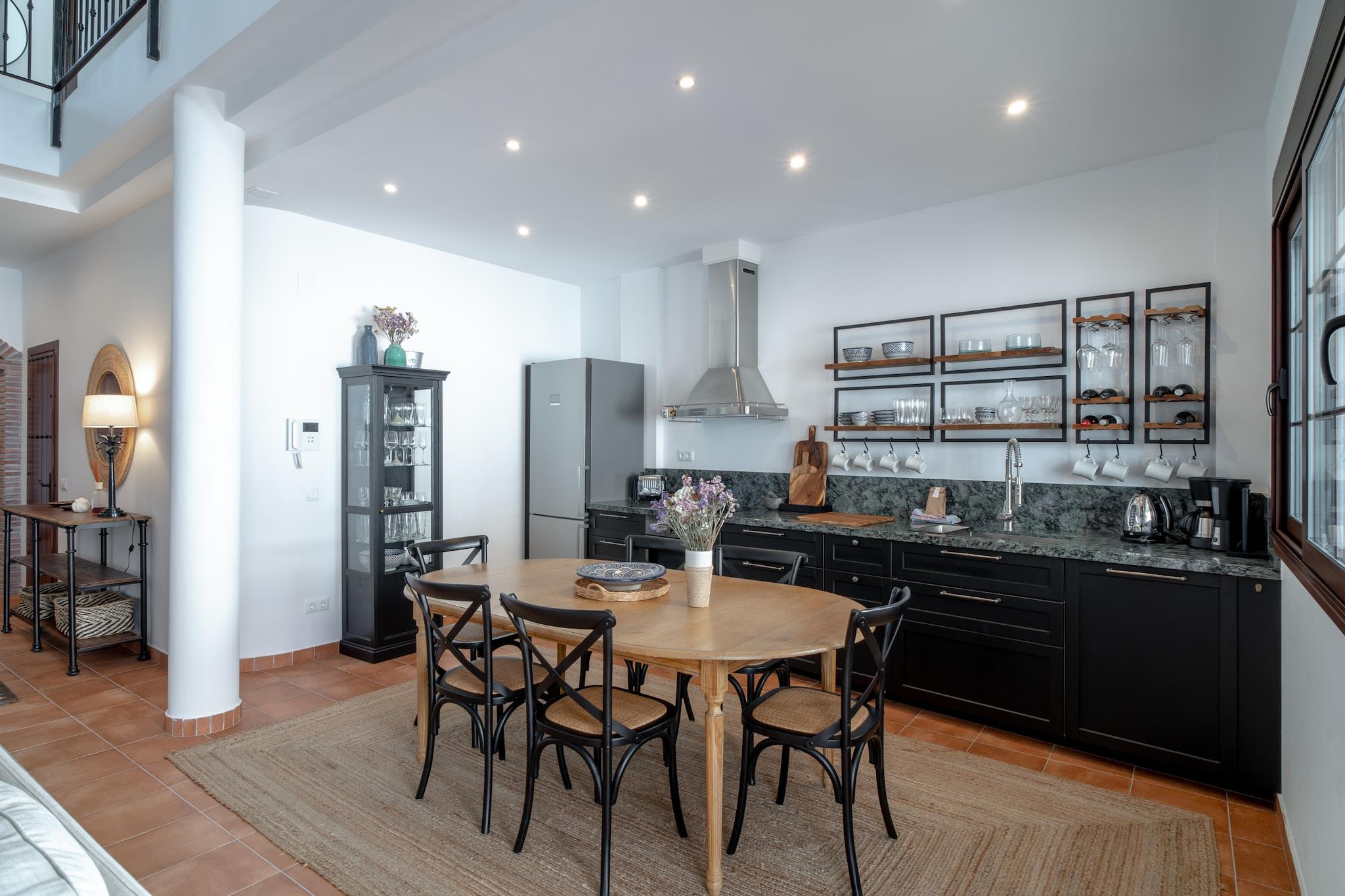 Dette smukt designede hus med 4 soveværelser tilbyder en perfekt blanding af moderne komfort og traditionel andalusisk charme. Ejendommen er rummelig og kan rumme op til 8 gæster, hvilket gør den ideel til store familier eller grupper. Den har en kingsize-seng, en dobbeltseng og to soveværelser med enkeltsenge, der kan kombineres til dobbeltsenge. Huset kan også prale af aircondition, højhastighedsinternet og et stort tv, der sikrer komfort under hele dit ophold. Nøglefaciliteterne inkluderer en privat pool, en privat garage og en tagterrasse med panoramaudsigt over havet og bjergene. Beliggende i hjertet af Nerja tilbyder ejendommen nem adgang til byens centrum, lokale strande, butikker, restauranter og supermarkeder. Det er en kort 450 meter gåtur til sandstranden, mens det travle centrum tilbyder en række spise- og shoppingmuligheder. Gæsterne kan også udforske byens ikoniske attraktioner, såsom Balcón de Europa. Offentlig transport er let tilgængelig, hvilket giver mulighed for bekvem transport rundt i området. For dem, der ankommer i bil, inkluderer ejendommen en garage til ét køretøj, med yderligere parkering i nærheden. Huset har adskillige eksklusive faciliteter for at forbedre dit ophold. Stueetagen indeholder en åben stue med et fuldt udstyret køkken og moderne apparater, herunder en mikrobølgeovn og varmluftovn. Ejendommen tilbyder også et vaskerum, en afslappende terrasse med en privat pool og et grillområde.