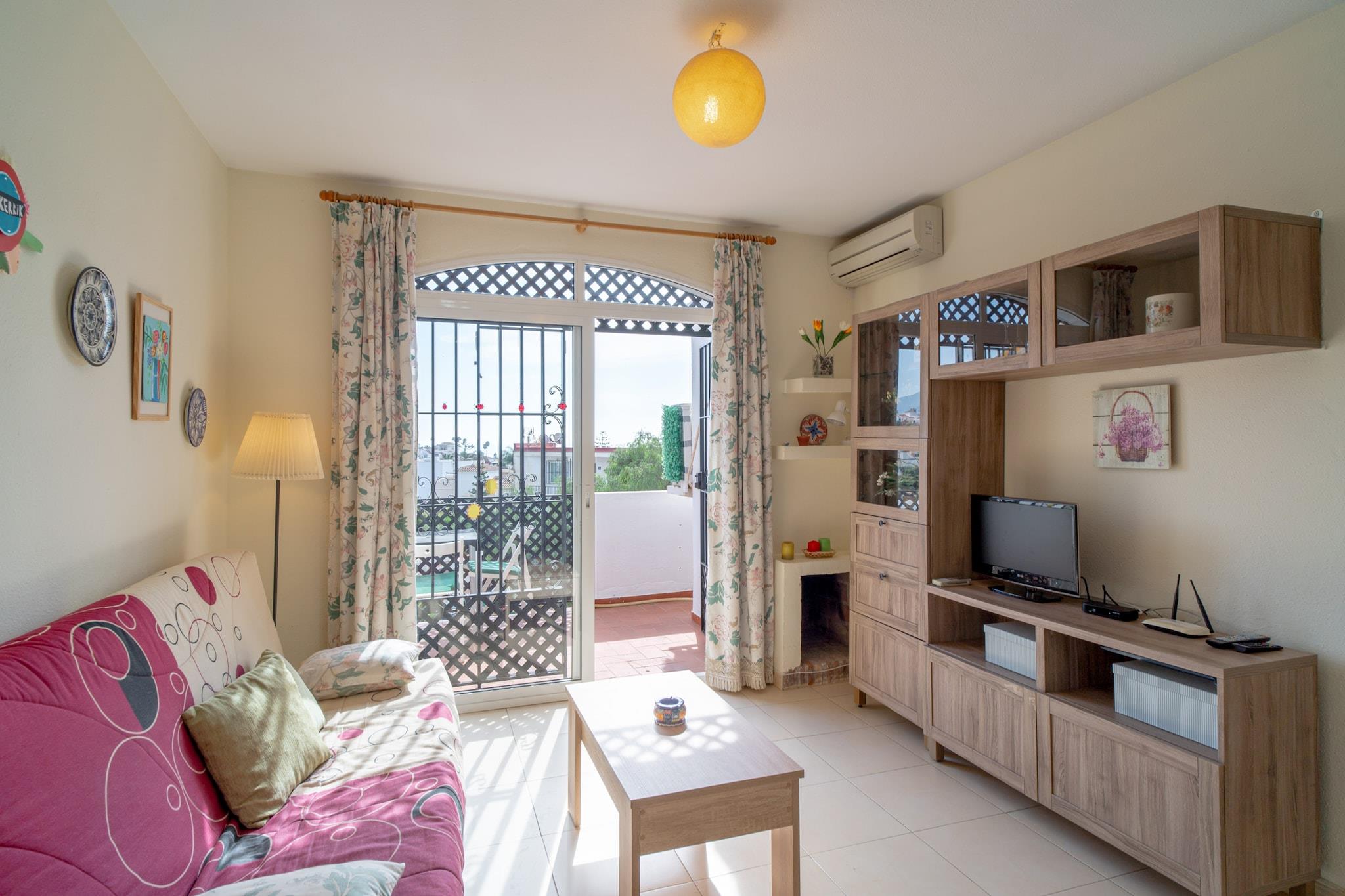 Los Aguacates Bellavista er et charmerende feriehus med en fantastisk udsigt over Middelhavet, beliggende i Nerjas fredelige Capistrano-område. Denne ejendom med to soveværelser tilbyder en rolig oase, kun 2 kilometer fra stranden. Nyd havudsigten fra både soveværelset og stuen, og vågn op til en malerisk start på dagen. Huset har to terrasser, hvoraf den ene er tilgængelig fra stuen og fører til den fælles swimmingpool, ideel til afslapning og nydelse af middelhavsklimaet. Det rummelige soveværelse tilbyder en dobbeltseng af høj kvalitet, der vender ud mod havet med en privat terrasse, der er perfekt til solbadning. Det andet soveværelse er møbleret med to komfortable enkeltsenge. Ejendommen inkluderer også et fuldt udstyret køkken, aircondition, højhastighedsinternet og internationale tv-kanaler. Et moderne badeværelse med bruser og et ekstra toilet i stueetagen øger bekvemmeligheden for gæsterne. Den smukt anlagte urbanisering Aguacates Bellavista tilbyder botaniske haver, avocadotræer og et velholdt poolområde. Parkering er let at finde, selv i højsæsonen. For ekstra bekvemmelighed kan du bestille en lufthavnstransport og anmode om en velkomstpakke med kolde drikkevarer og snacks. Personlig... Indtjekning er mulig fra kl. 16:00, med en værtschef til at tage imod dig og sikre en problemfri ankomst.