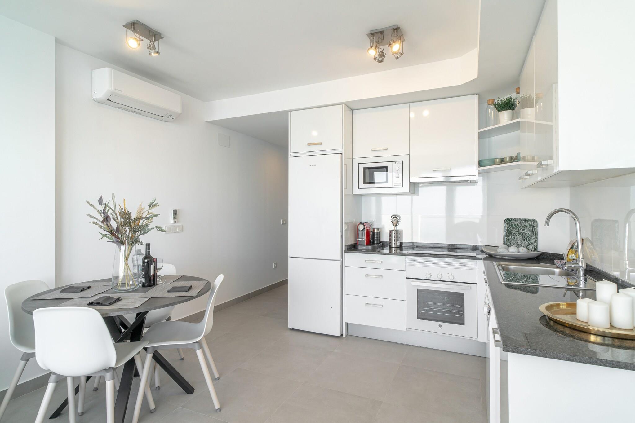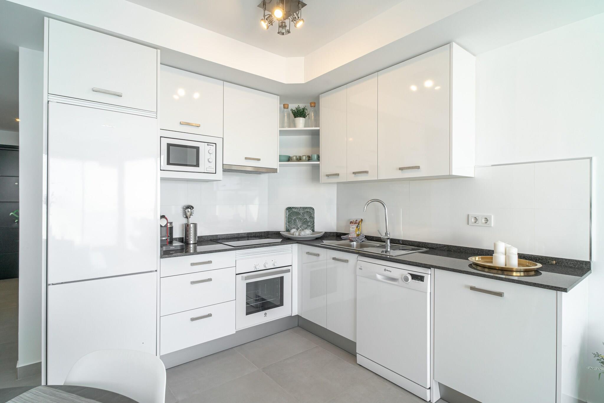 , åbent køkken(elkedel, brødrister, kaffemaskine, ovn, mikrobølgeovn, opvaskemaskine , køleskab, fryser, ), stue / spisestue(Fjernsyn, spisebord, sofahjørne), soveværelse(køjeseng), soveværelse(dobbeltseng), badeværelse(bruser), badeværelse(bruser), garage, Internetadgang, vaskemaskine, balkon, klimaanlæg, swimmingpool(deles med andre gæster), strygejern, føntørrer, Mountain view, Wine glasses