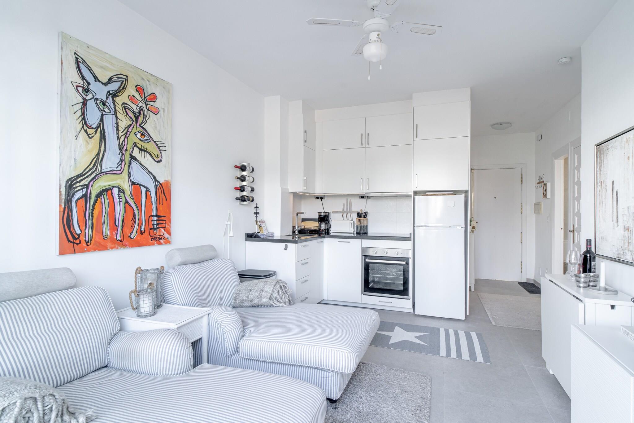 Åbent køkken(elkedel, brødrister, kaffemaskine, ovn, mikrobølgeovn, opvaskemaskine , køleskab, fryser, ), stue / spisestue(Fjernsyn, spisebord, sofahjørne), soveværelse(dobbeltseng), badeværelse(bruser), Internetadgang, vaskemaskine, balkon, klimaanlæg, terrasse, swimmingpool(deles med andre gæster), strygejern, føntørrer, Mountain view, Wine glasses