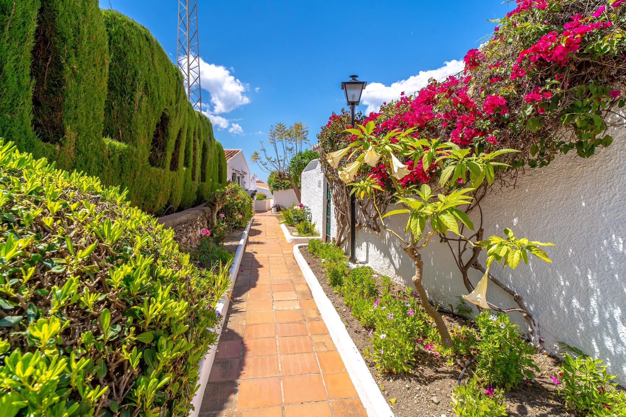 Los Aguacates Bellavista er et charmerende feriehus med en fantastisk udsigt over Middelhavet, beliggende i Nerjas fredelige Capistrano-område. Denne ejendom med to soveværelser tilbyder en rolig oase, kun 2 kilometer fra stranden. Nyd havudsigten fra både soveværelset og stuen, og vågn op til en malerisk start på dagen. Huset har to terrasser, hvoraf den ene er tilgængelig fra stuen og fører til den fælles swimmingpool, ideel til afslapning og nydelse af middelhavsklimaet. Det rummelige soveværelse tilbyder en dobbeltseng af høj kvalitet, der vender ud mod havet med en privat terrasse, der er perfekt til solbadning. Det andet soveværelse er møbleret med to komfortable enkeltsenge. Ejendommen inkluderer også et fuldt udstyret køkken, aircondition, højhastighedsinternet og internationale tv-kanaler. Et moderne badeværelse med bruser og et ekstra toilet i stueetagen øger bekvemmeligheden for gæsterne. Den smukt anlagte urbanisering Aguacates Bellavista tilbyder botaniske haver, avocadotræer og et velholdt poolområde. Parkering er let at finde, selv i højsæsonen. For ekstra bekvemmelighed kan du bestille en lufthavnstransport og anmode om en velkomstpakke med kolde drikkevarer og snacks. Personlig... Indtjekning er mulig fra kl. 16:00, med en værtschef til at tage imod dig og sikre en problemfri ankomst.