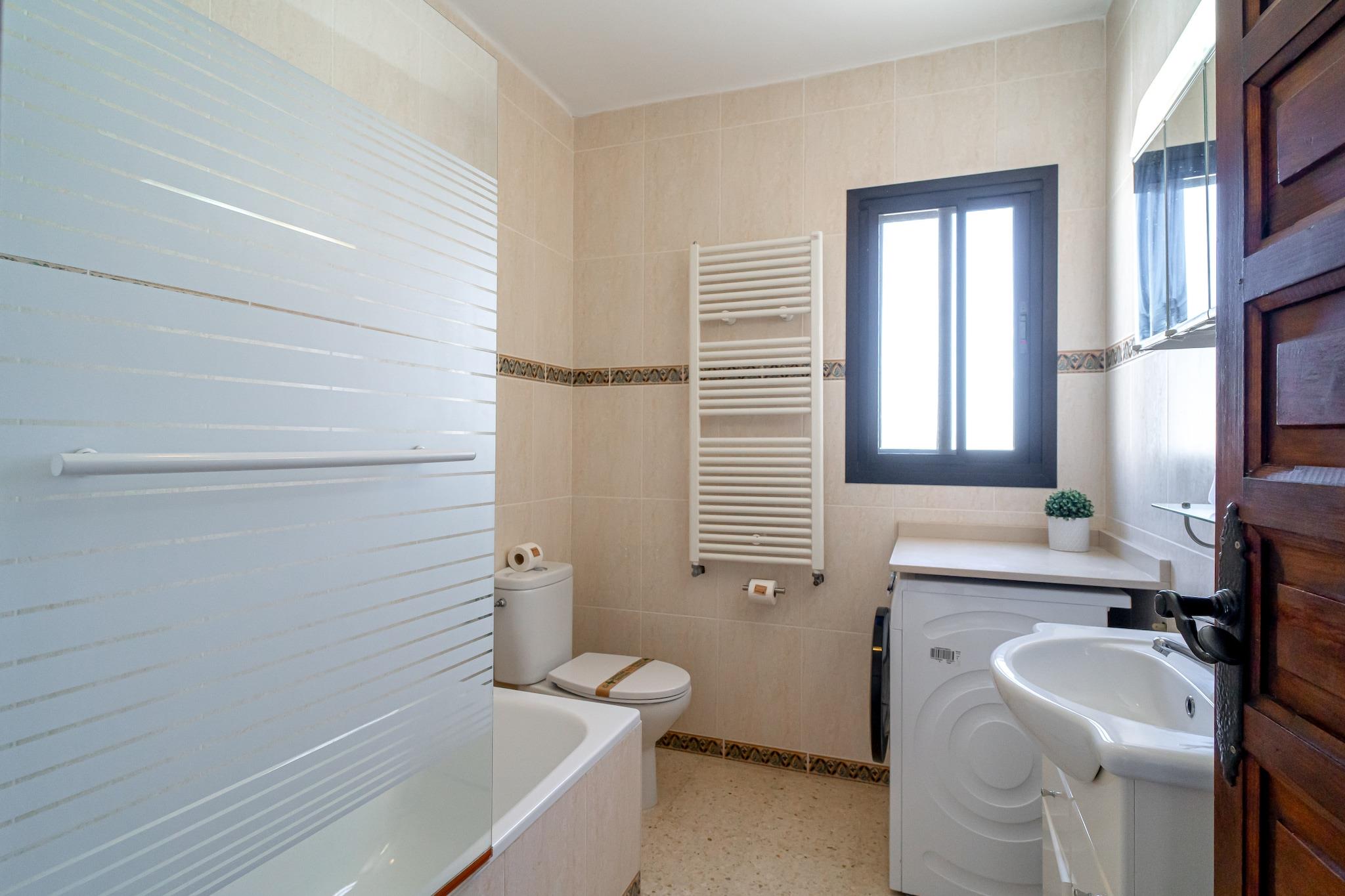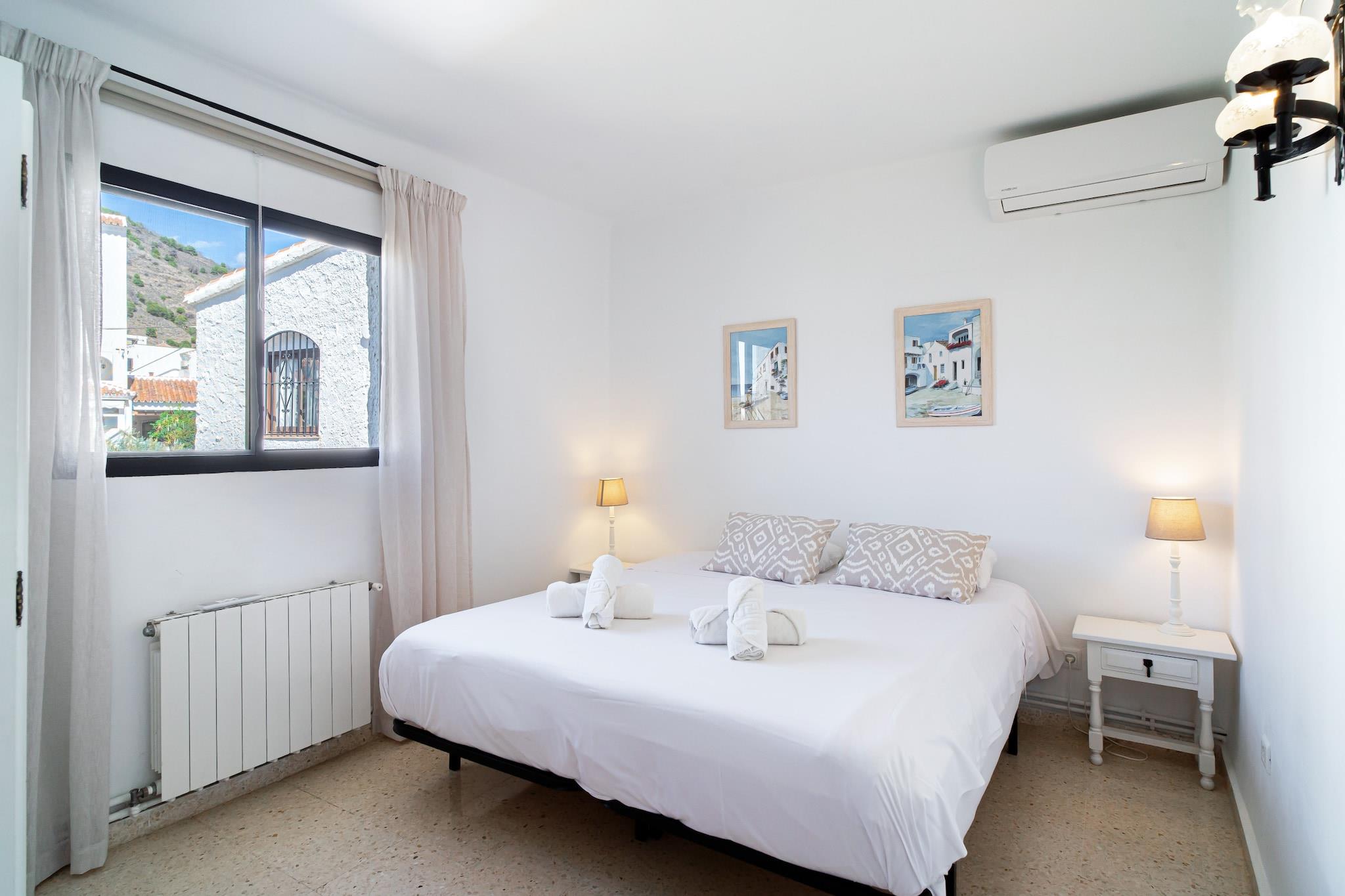 Los Aguacates Bellavista er et charmerende feriehus med en fantastisk udsigt over Middelhavet, beliggende i Nerjas fredelige Capistrano-område. Denne ejendom med to soveværelser tilbyder en rolig oase, kun 2 kilometer fra stranden. Nyd havudsigten fra både soveværelset og stuen, og vågn op til en malerisk start på dagen. Huset har to terrasser, hvoraf den ene er tilgængelig fra stuen og fører til den fælles swimmingpool, ideel til afslapning og nydelse af middelhavsklimaet. Det rummelige soveværelse tilbyder en dobbeltseng af høj kvalitet, der vender ud mod havet med en privat terrasse, der er perfekt til solbadning. Det andet soveværelse er møbleret med to komfortable enkeltsenge. Ejendommen inkluderer også et fuldt udstyret køkken, aircondition, højhastighedsinternet og internationale tv-kanaler. Et moderne badeværelse med bruser og et ekstra toilet i stueetagen øger bekvemmeligheden for gæsterne. Den smukt anlagte urbanisering Aguacates Bellavista tilbyder botaniske haver, avocadotræer og et velholdt poolområde. Parkering er let at finde, selv i højsæsonen. For ekstra bekvemmelighed kan du bestille en lufthavnstransport og anmode om en velkomstpakke med kolde drikkevarer og snacks. Personlig... Indtjekning er mulig fra kl. 16:00, med en værtschef til at tage imod dig og sikre en problemfri ankomst.
