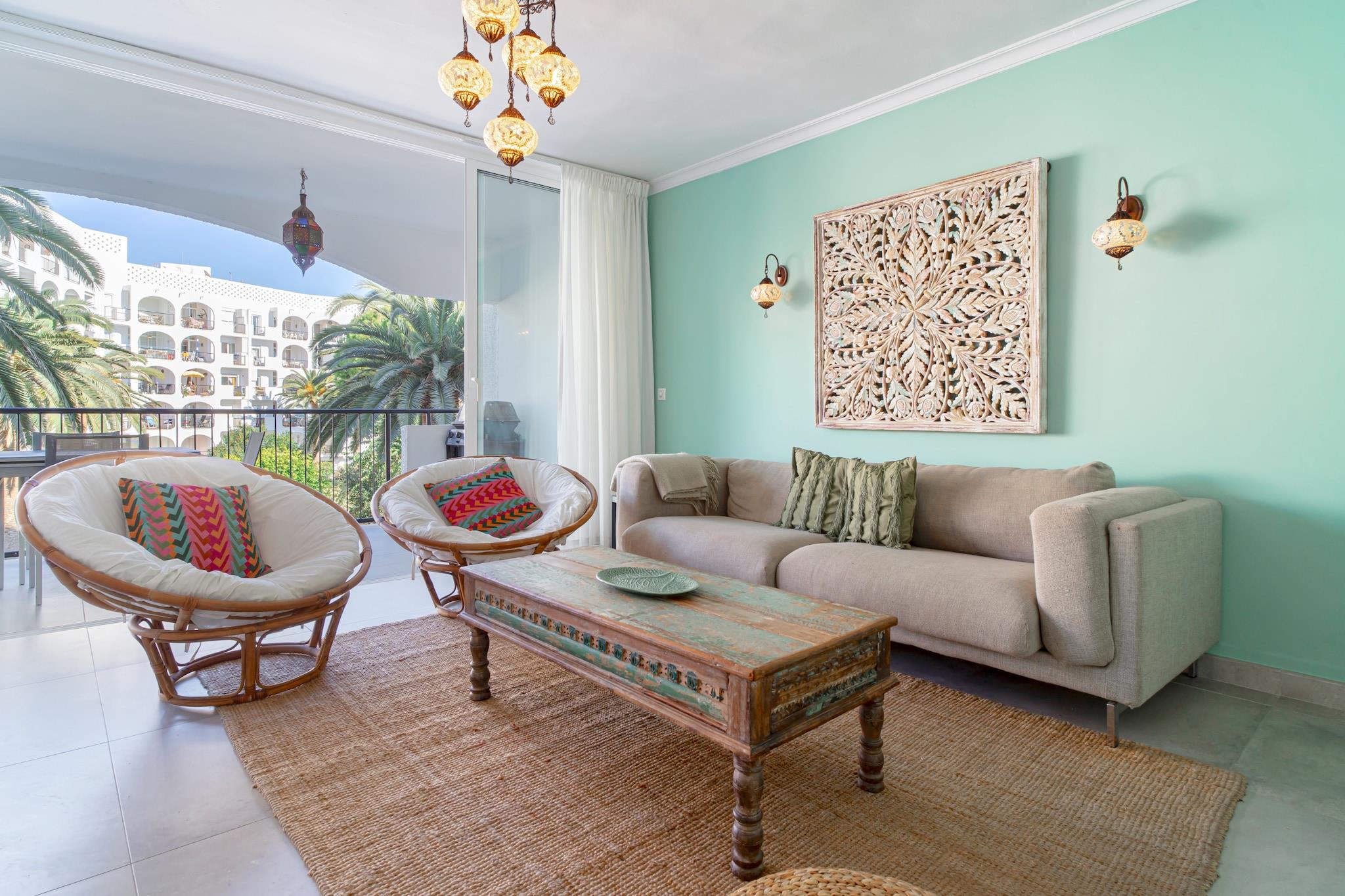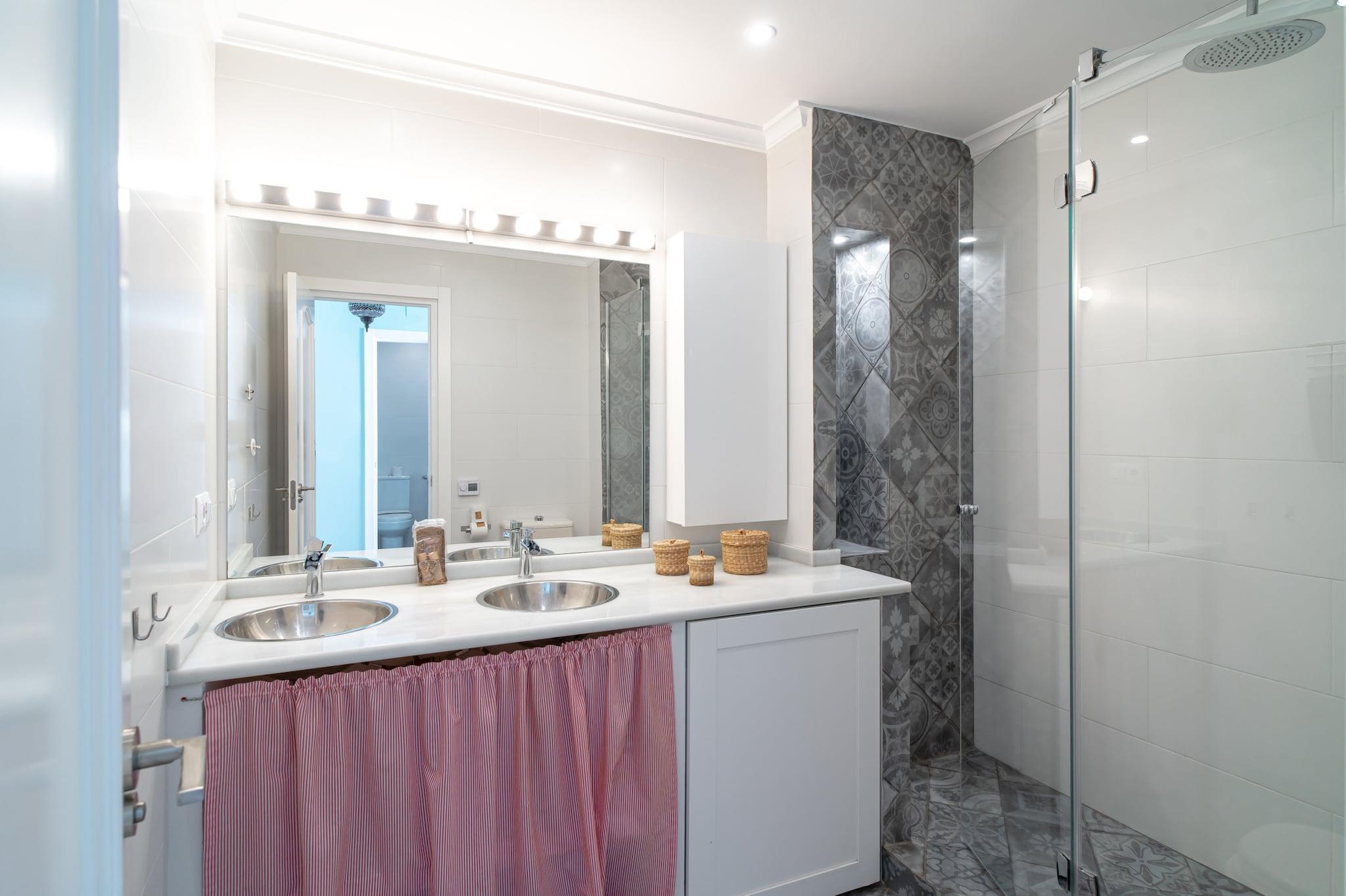 Oplev charme og luksus i denne elegante lejlighed med 2 soveværelser og 2 badeværelser, beliggende i hjertet af Nerja. Med en betagende udsigt over havet, haven og poolen tilbyder lejligheden et højt niveau af komfort og stil. En overdækket terrasse, der er problemfrit forbundet med den lyse stue via en skydedør i glas, skaber en åben og indbydende atmosfære, der er perfekt til afslapning eller underholdning. Lejligheden ligger kun 100 meter fra Carabeillo-stranden og i gåafstand fra Burriana-stranden og den berømte Balcón de Europa og har en uovertruffen beliggenhed. Omgivet af restauranter, caféer og supermarkeder er alt, hvad du behøver, lige ved hånden. Den fælles saltvandspool og de upåklageligt vedligeholdte haver skaber en fredelig oase året rundt. Indenfor finder du højhastighedsinternet, aircondition, et Smart TV med internationale kanaler og et fuldt udstyret køkken med en stor køkkenø og moderne apparater, herunder opvaskemaskine og induktionskogeplade. Soveværelset har en queensize-seng, mens det andet soveværelse har to enkeltsenge - begge designet med komfort og luksus i tankerne. Valgfri lufthavnstransport, velkomstpakker og personlig indtjekning sikrer en problemfri og bekymringsfri ankomst.