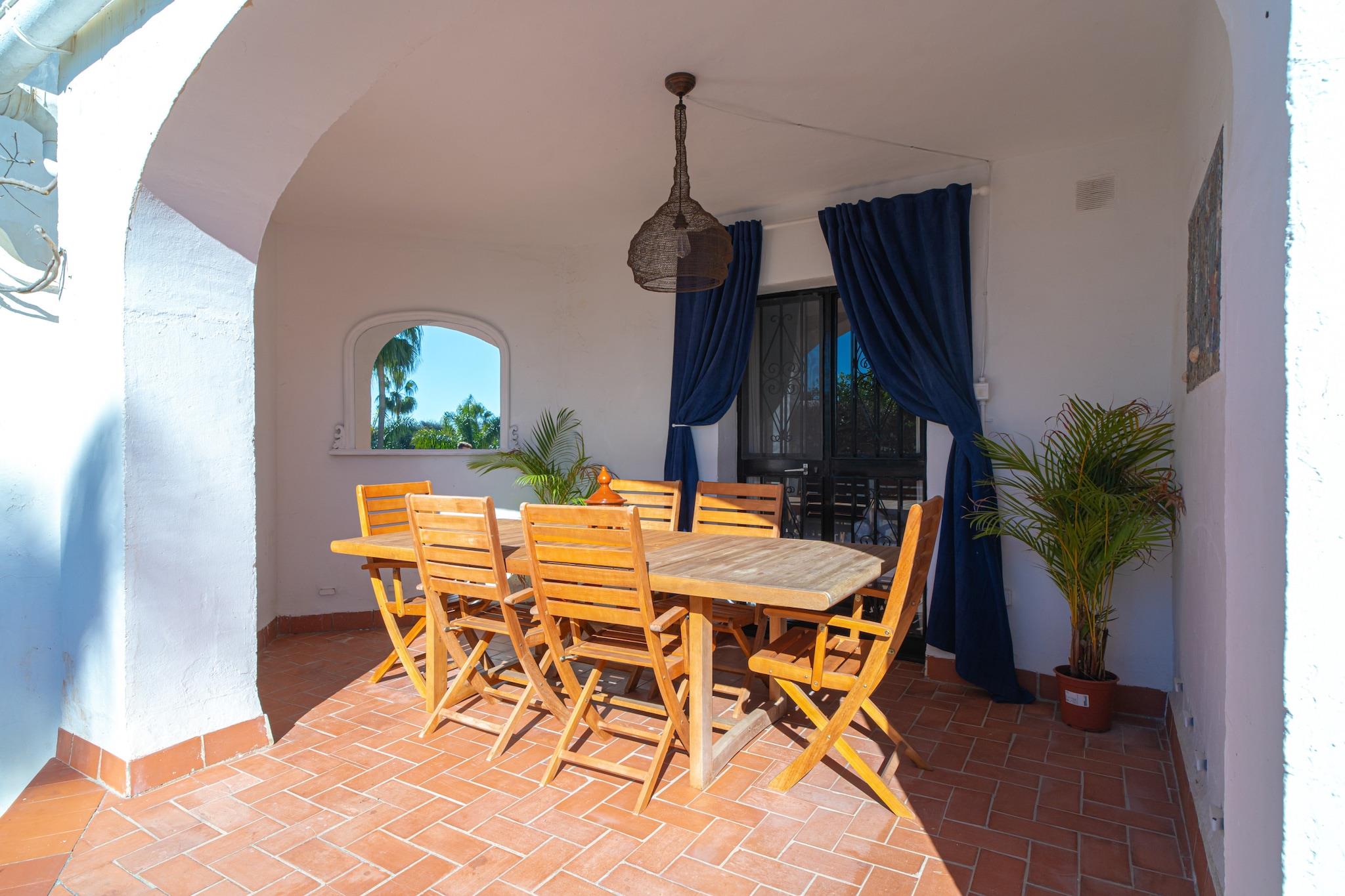 Køkken(elkedel, brødrister, kaffemaskine, ovn, mikrobølgeovn, køleskab, fryser, ), stue / spisestue(Fjernsyn(Smart-TV), spisebord, sofahjørne), soveværelse(dobbeltseng), soveværelse(dobbeltseng), badeværelse(bruser), Internetadgang, Børne swimmingpool, Havemøbler, vaskemaskine, klimaanlæg, terrasse, have, grill, swimmingpool(deles med andre gæster), strygejern, føntørrer, Wine glasses