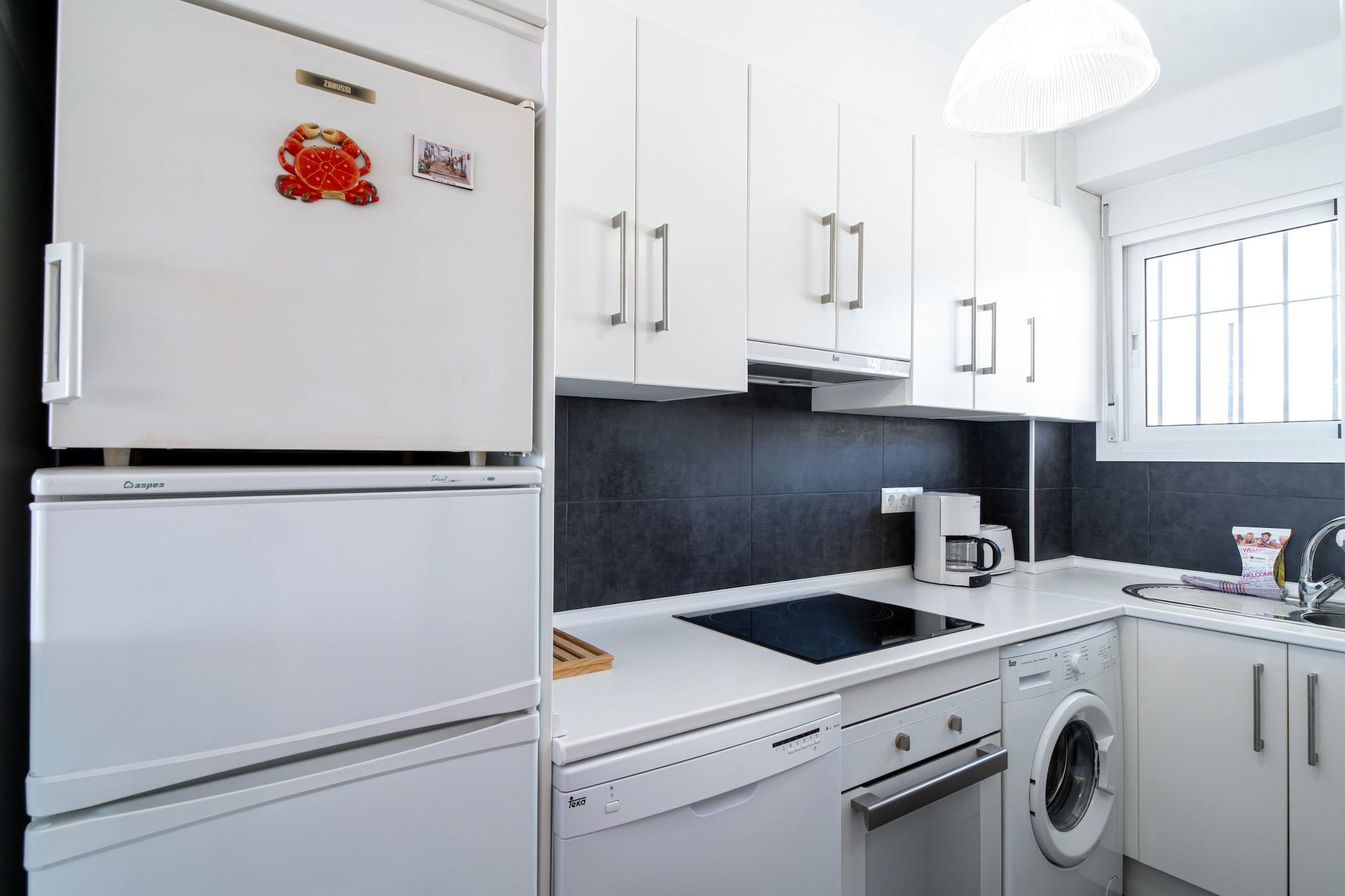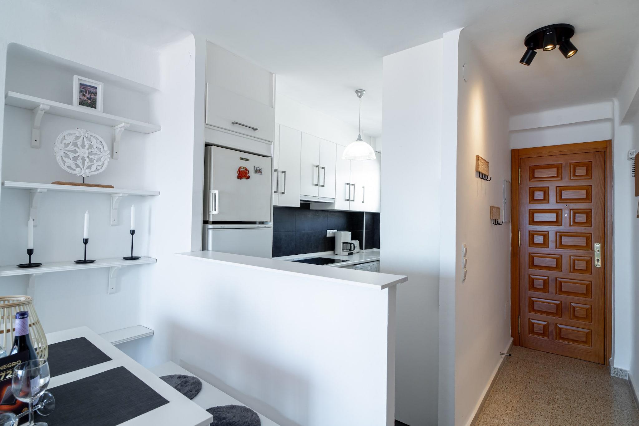 Denne lys og moderne lejlighed er designet til komfort og tilbyder et indbydende ophold for op til tre gæster med en storslået havudsigt fra en privat balkon. Den har et soveværelse med to 90 cm enkeltsenge placeret sammen og et andet soveværelse med en 150 cm seng, der er ideel til aleneovernatning. Lejligheden har aircondition overalt og tilbyder et fredeligt miljø for par eller små familier. Selvom kæledyr ikke er tilladt, er stedet ideelt til afslapning med kvalitetssengetøj, smagfuldt design og valgfrie tjenester såsom lufthavnstransport og velkomstmadpakke med kolde drikkevarer og snacks for ekstra bekvemmelighed. Lejligheden er ideelt beliggende kun 400 meter fra Burriana-stranden og giver hurtig adgang til et af Nerjas mest populære kystområder, der tilbyder strandrestauranter, vandsport som kajaksejlads og paddlesurfing samt en livlig promenade. Strandområdet byder også på restauranter, butikker og strandbarer, der bringer lokalt præg til dit ophold. Offentlig transport er i nærheden for nem adgang til byen, men parkering i området er begrænset og afhængig af tilgængelighed, især i højsæsonen. Lejligheden har et fuldt udstyret køkken med moderne apparater, herunder en opvaskemaskine, perfekt til at tilberede måltider i dit eget tempo. Højhastighedsinternet og en smart planløsning sikrer komfort, uanset om du arbejder eksternt eller bare slapper af. Et rent, veludstyret badeværelse og funktionelle rum fuldender denne lejlighed og tilbyder alt, hvad der er nødvendigt for et problemfrit og behageligt ophold ved havet.