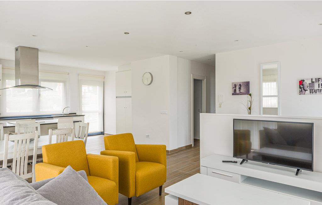 Nyd jeres ophold i dette rummelige og lyse feriehus nær den lille, historiske by Noia. Tre soveværelser, to badeværelser og en rummelig stue og spisestue giver plads nok til fem personer. Indretningen er moderne, behagelig og indbydende. Stranden er 800 m væk, og I kan beundre Atlanterhavet fra feriehuset.
