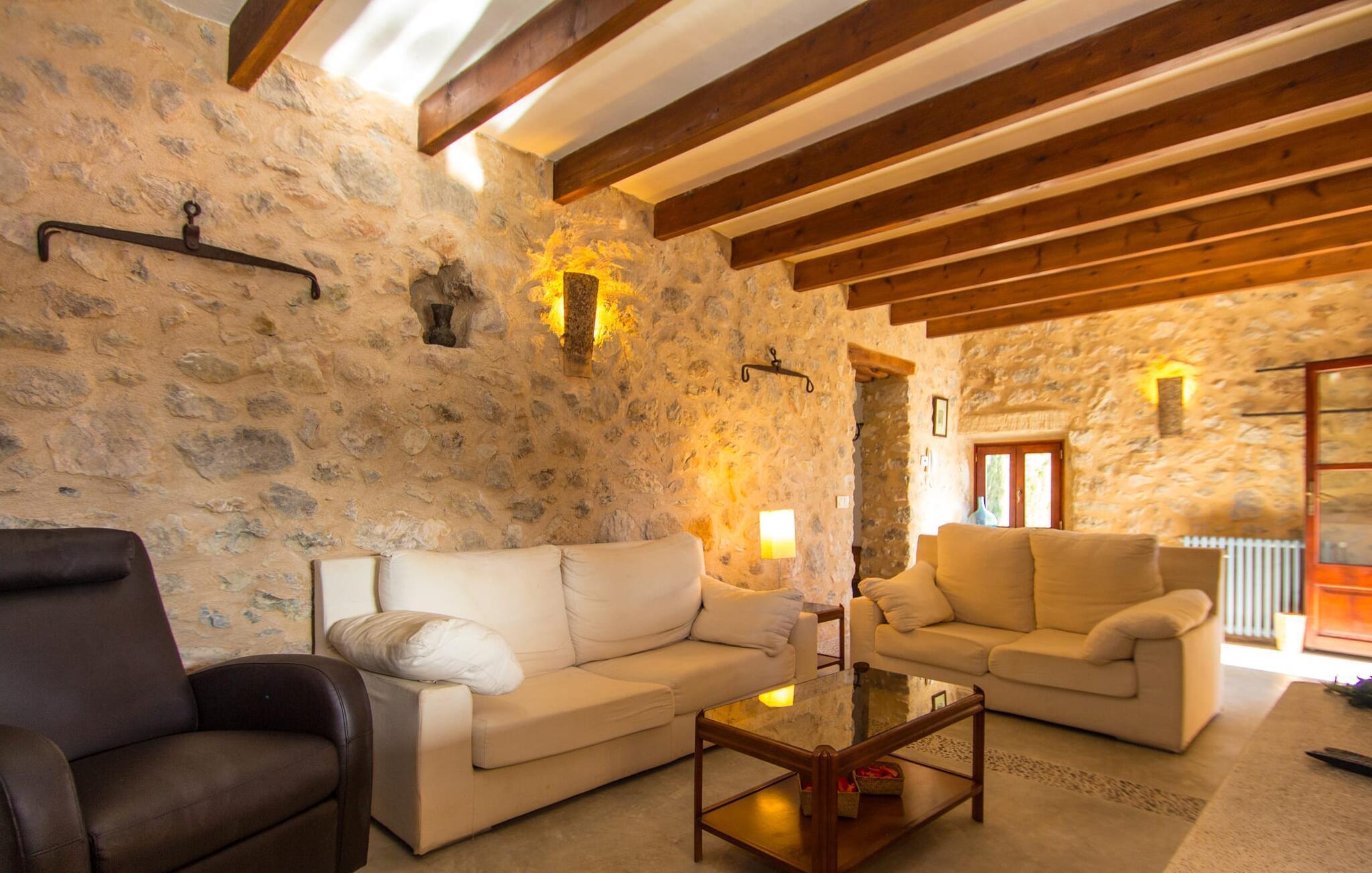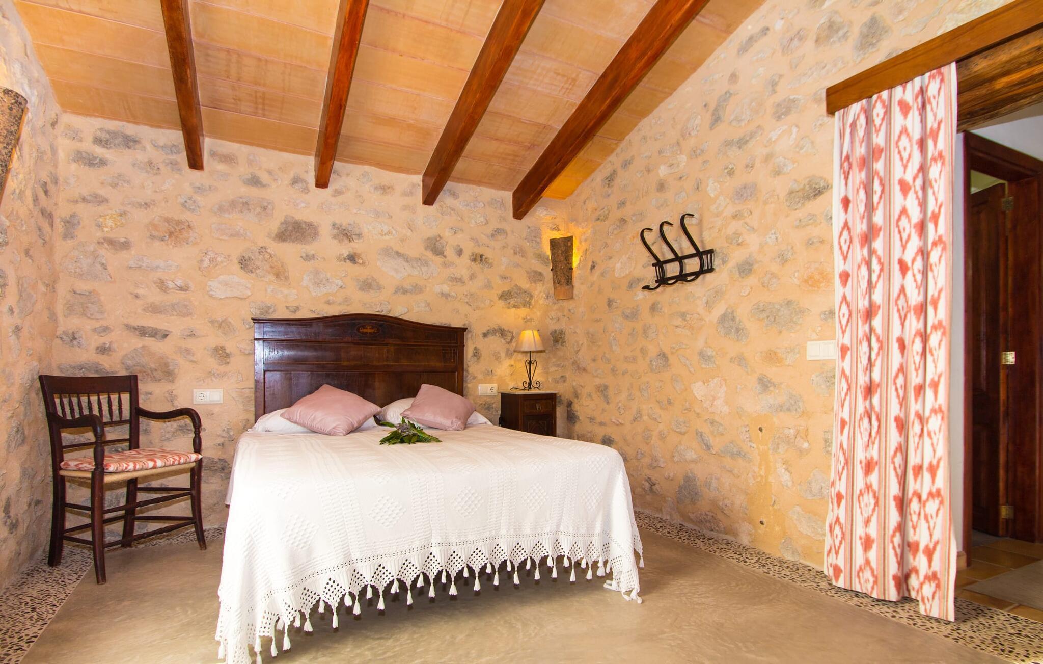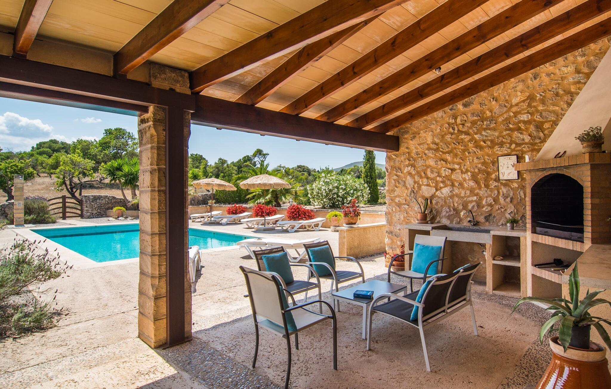 Den charmerende villa "Nonga" ligger mellem Artà (4 km) og San Llorenc (10 km) på en 42.000 kvadratmeter stor, smukt anlagt ejendom. Da der ikke er nogen direkte naboer, kan du føle dig helt privat under dit ophold. Så hvis du leder efter afslappende fred og ro, så er du kommet til det rette sted. Velholdte grus- og terrassearealer, dekorativt og løst opdelt af små stier, smukke planter, trapper og vægge, præger den smagfulde udendørsstemning og inviterer til afslapning og afslapning udendørs. Der er i alt 10 meget flotte udendørs siddepladser til rådighed. De suppleres af seks komfortable liggestole, der er placeret direkte ved poolen og inviterer dig til at slappe af. Den store swimmingpool er let tilgængelig via romerske trapper, er lavvandet og varierer i dybden mellem 0,80 m og 2,20 m. På varme dage kan du forfriske dig herligt. Fra den store overdækkede terrasse lige ved siden af huset har I en fantastisk udsigt over poolområdet, så der kan holdes godt opsyn med eventuelle børn, der leger i vandet. Du kan spise elegant i den luftige skygge på forskellige lænestole og stole, mens du nyder den fantastiske udsigt over havelandskabet. Til solide grillaftener står en grill til rådighed, hvormed du på lune aftener kan fremtrylle et kulinarisk måltid og afslutte dagen i godt selskab. Når du træder ind i villaens indre, bliver du mødt af en hyggelig kombination af originalitet og moderne faciliteter. Det unikke opholdsrum er et unikt højdepunkt med sine rustikke naturstensvægge, synlige loftsbjælker og et perfekt harmoniserende stengulv. Dette område har lyse, moderne sofaer, hvor du kan slappe af når som helst på dagen. Original belysning og udsmykning runder den individuelle atmosfære af, hvor du som gæst med garanti kan lide at blive hængende. For dem, der ønsker det, giver dette værelse mulighed for at underholde sig selv med en god film takket være det store fladskærms-tv med satellitforbindelse installeret her. Udover spisepladsen byder det rummelige køkken, indrettet i typisk mallorcansk stil, på alt hvad du behøver til dine daglige behov, herunder en kaffemaskine, en kedel og mange andre funktioner. Soveværelser designet på en helt speciel måde giver det ideelle grundlag for en afslappende søvn. Der er en seng, der måler 1,60x2,00m og to senge, der måler 0,90x1,90 til rådighed. Her kan alle finde et sted at sove, der falder i deres smag. De to badeværelser er designet til at være både funktionelle og dekorative og giver masser af naturligt lys. Strygejern og hårtørrer findes i huset, så du ikke behøver at spilde bagageplads ved at medbringe din egen hjemmefra. Artà har omkring 6.500 indbyggere og er et særligt smukt sted, fri for store hoteller. Der er nogle fremragende restauranter og gode shoppingmuligheder for at opfylde dine daglige behov. Hver tirsdag er der et spektakulært ugentligt marked i byens centrum, som bestemt er et besøg værd. Her finder du kulinariske specialiteter fra regionen og kan også købe mallorcansk kunsthåndværk. Ikke langt væk er der nogle smukke, hvide sandstrande, hvoraf nogle stadig er rigtige insider-tips. De nærmeste strande kan findes i Cala Ratjada, Canyamel, Cala Bona, Costa de los Pinos og i bugten Cala Millor. Den stemningsfulde villa “Nonga” ligger helt tilbagetrukket i den smukke østlige del af øen, kun 4 km sydvest for Artà. Omgivet af en kæmpe ejendom, vil du finde fuldstændig ro her. For shopping og shopping kan du hurtigt og nemt komme til Artà. Du vil også finde en række fremragende restauranter der. Der er flere sandstrande i nærheden, hvoraf nogle er uforstyrrede og uberørte. Dette er et Fincallorca feriehus.