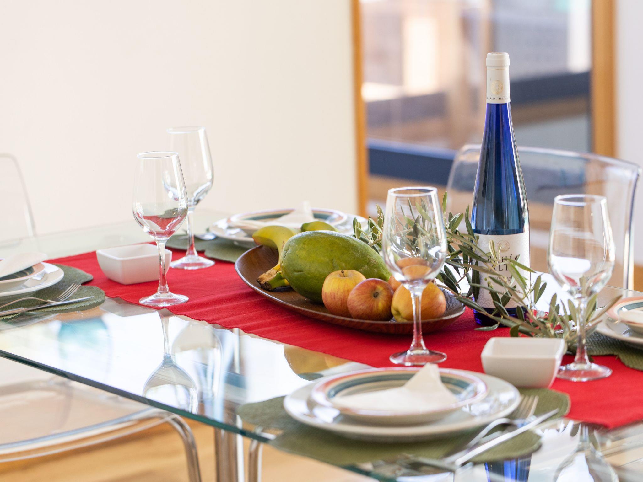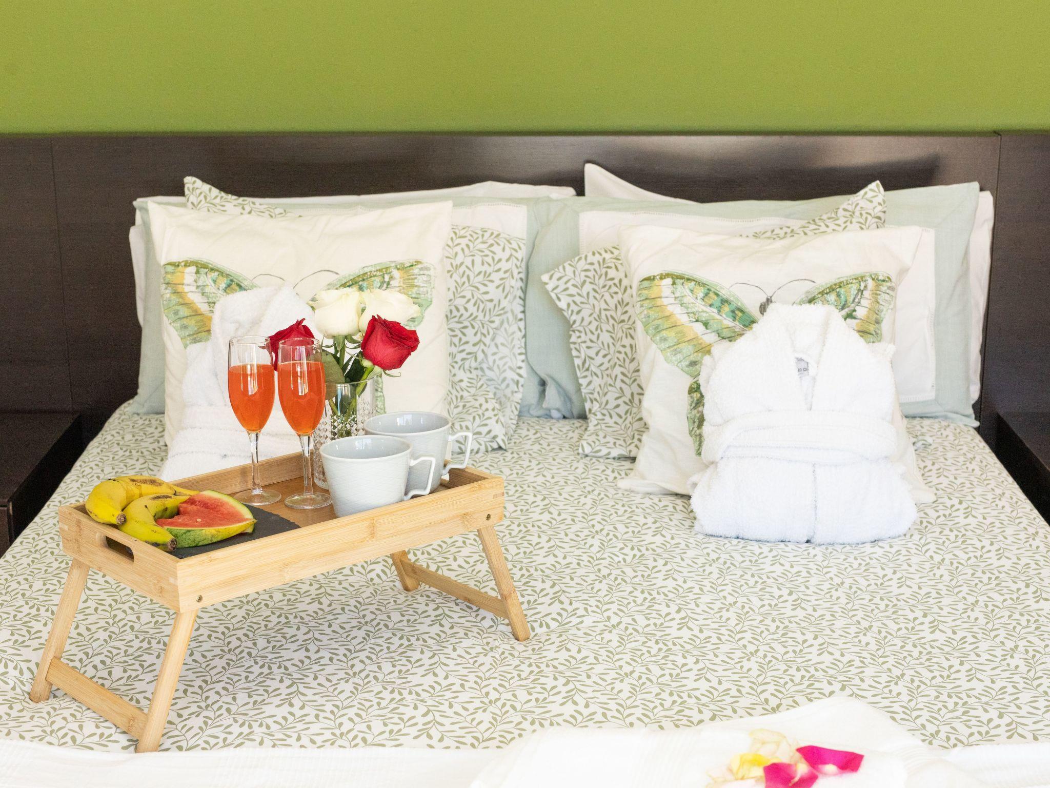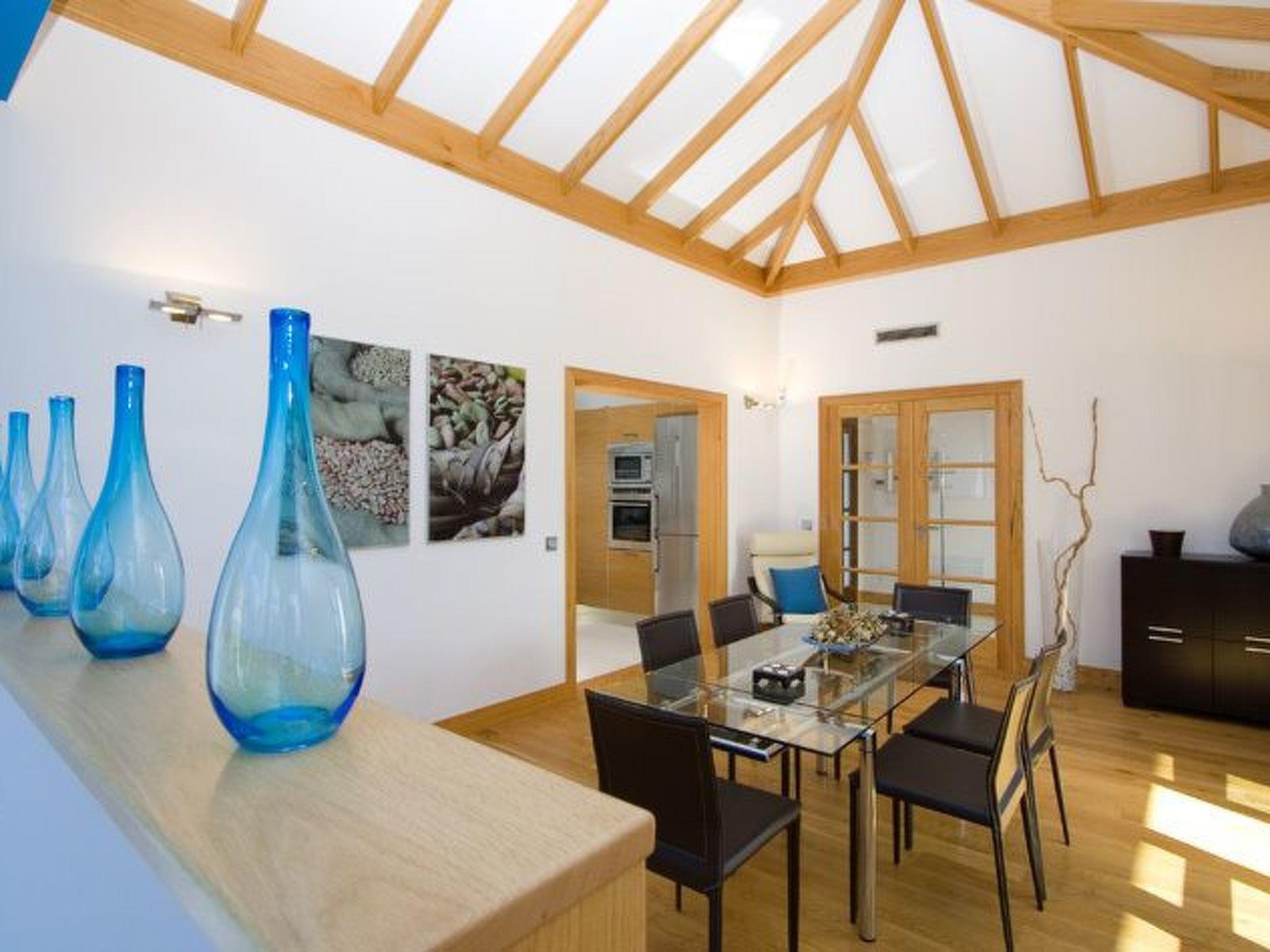 The interior of each villa features three cosy bedrooms; the master bedroom has an en-suite bathroom that includes a hydro-massage shower and Jacuzzi, offering an extra touch of indulgence to your stay. The separate kitchen is fully equipped with top of the line appliances and utensils, accompanied by a utility room with washing machine, tumble dryer, and other necessities for an extended stay. In addition, the living room offers modern conveniences such as a television with access to satellite channels and free wifi, ensuring both entertainment and comfort.
