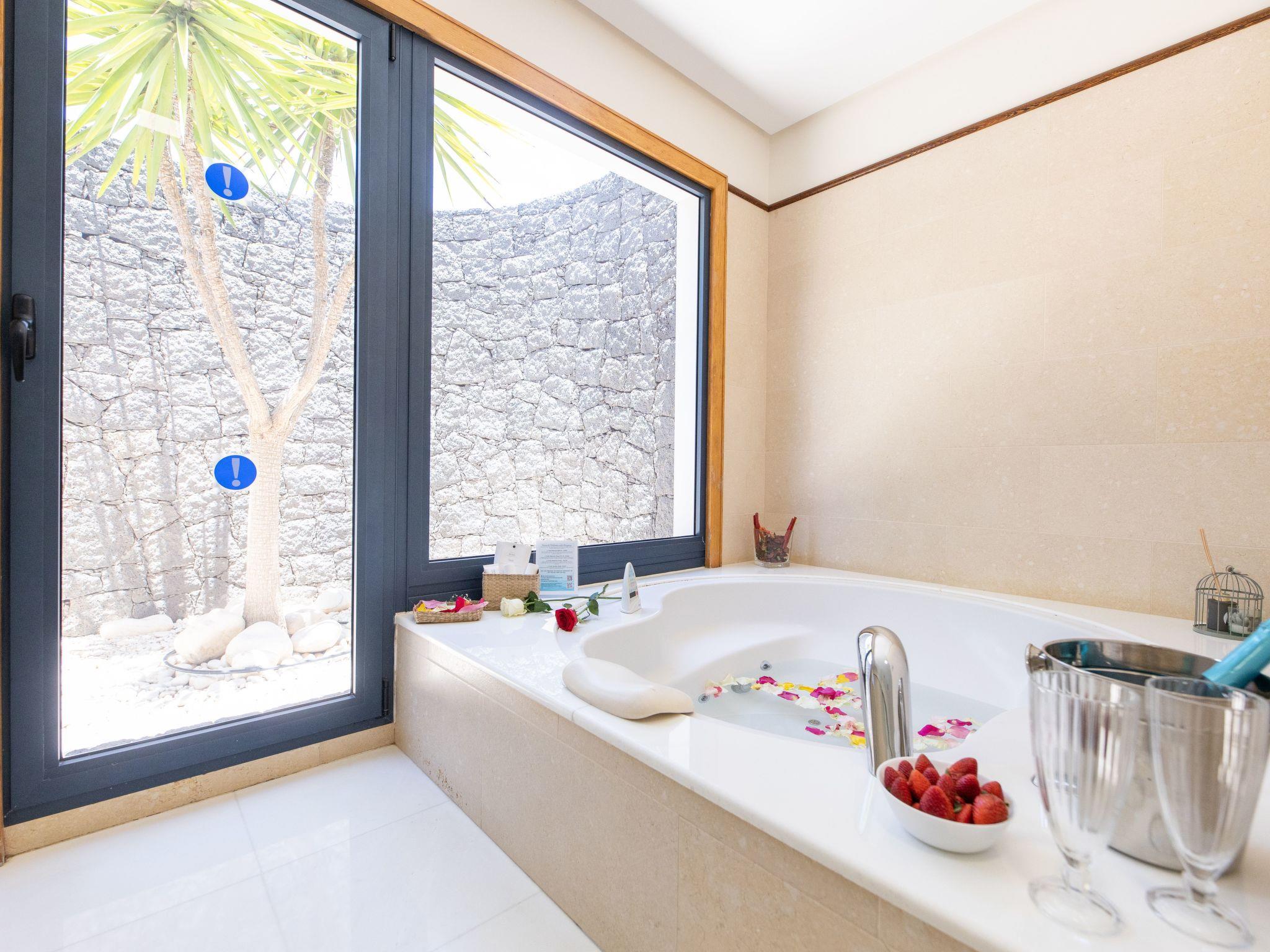 Exploring the outdoors, each villa boasts a spacious terrace that houses a heated, salted swimming pool, without the use of chlorine, to ensure maximum wellbeing during your swim. Surrounded by comfortable sun loungers and with a barbecue available for those lazy moments outdoors, the terrace is the ideal setting for enjoying the Canarian climate, whether sunbathing or delighting in an al fresco meal.